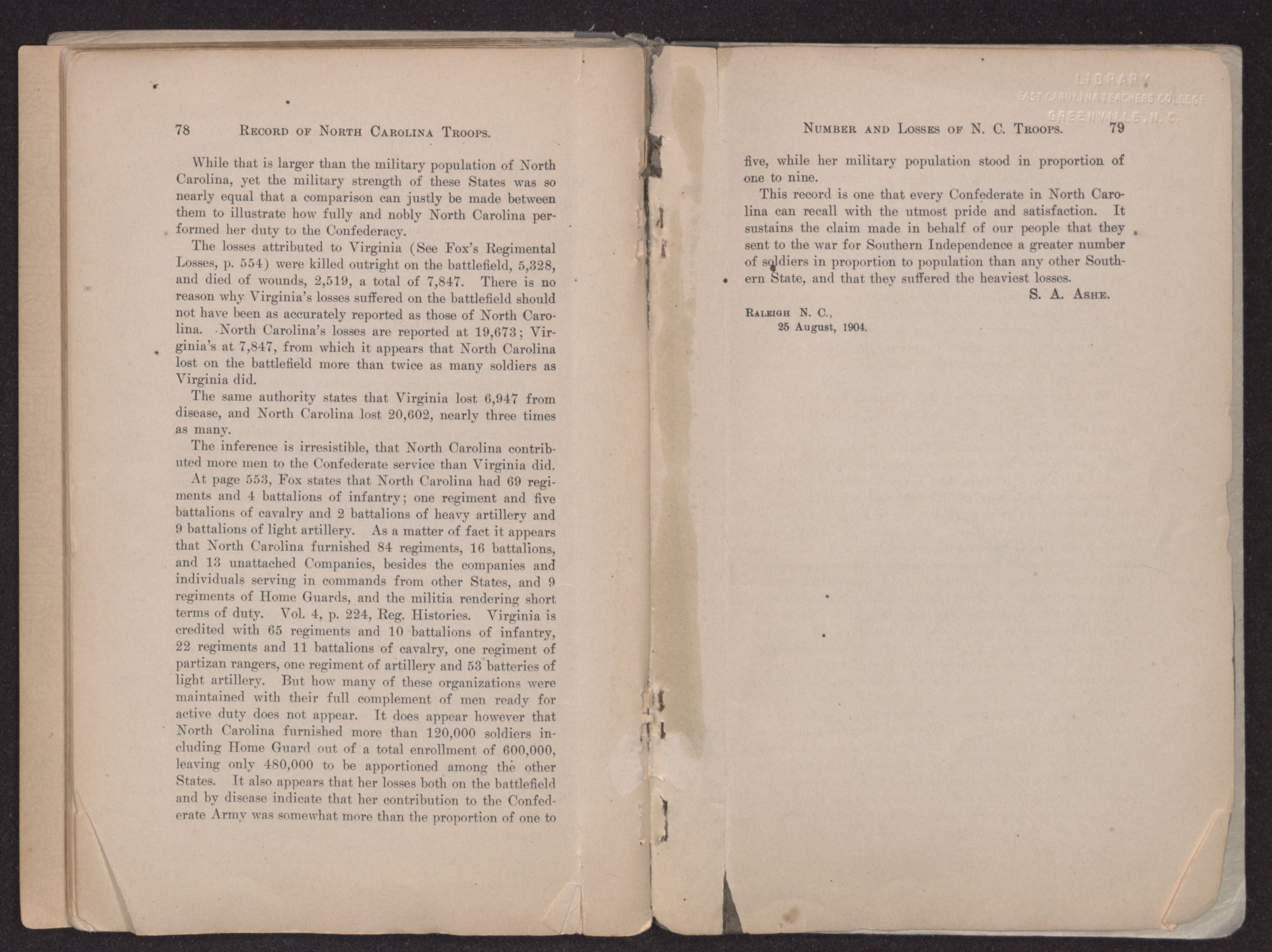“Number of Troops furnished by North Carolina and the number of killed and wounded,” Capt. S. A. Ashe.
