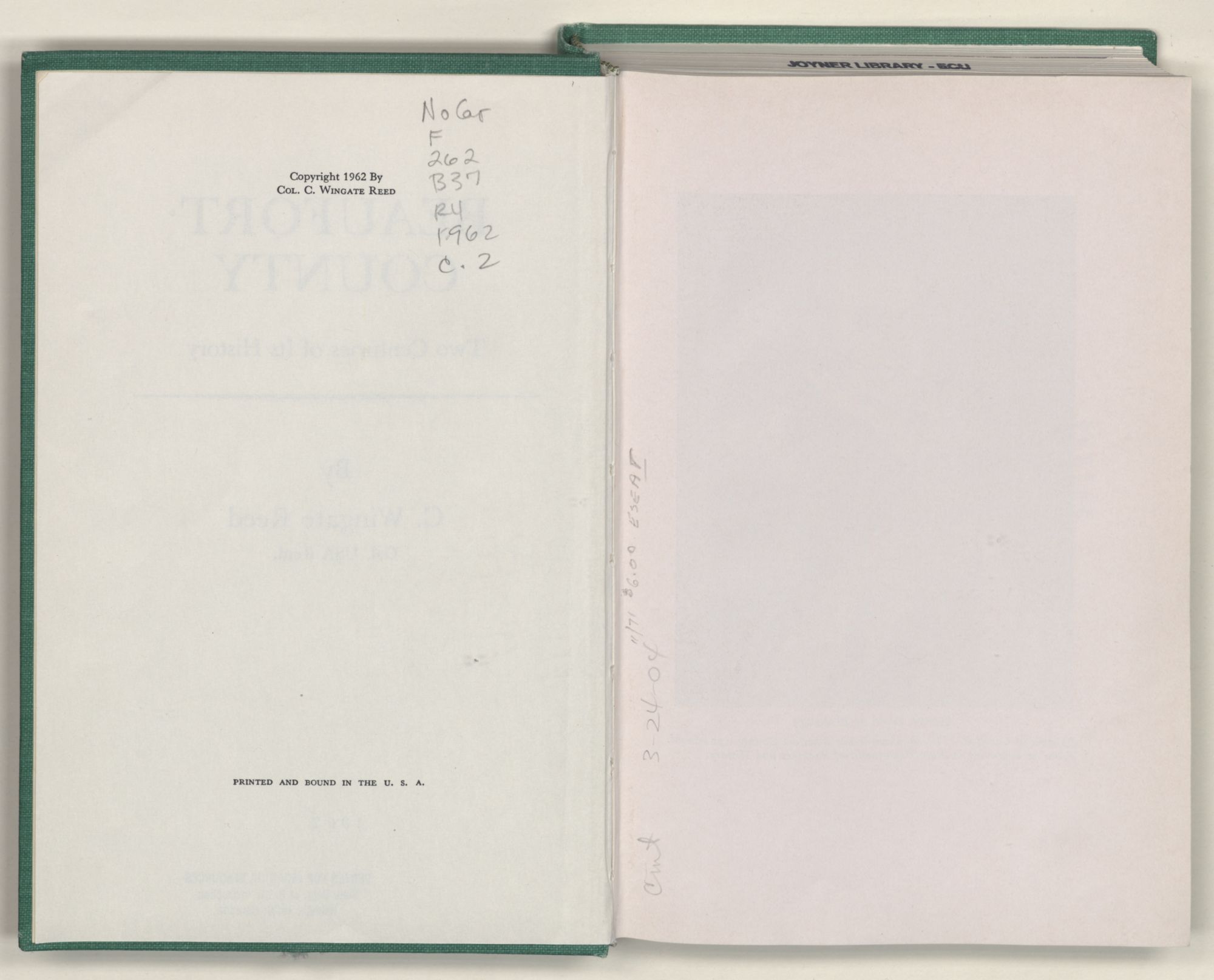 BEAUFORT COUNTYTwo Centuries of Its HistoryBy C. Wingate Reed Col. USA Retd.1962