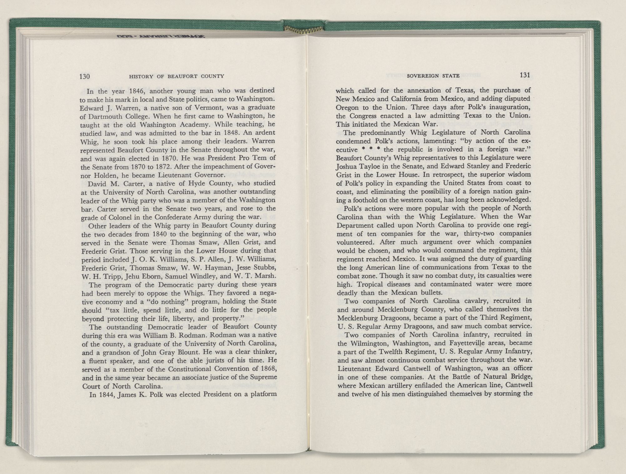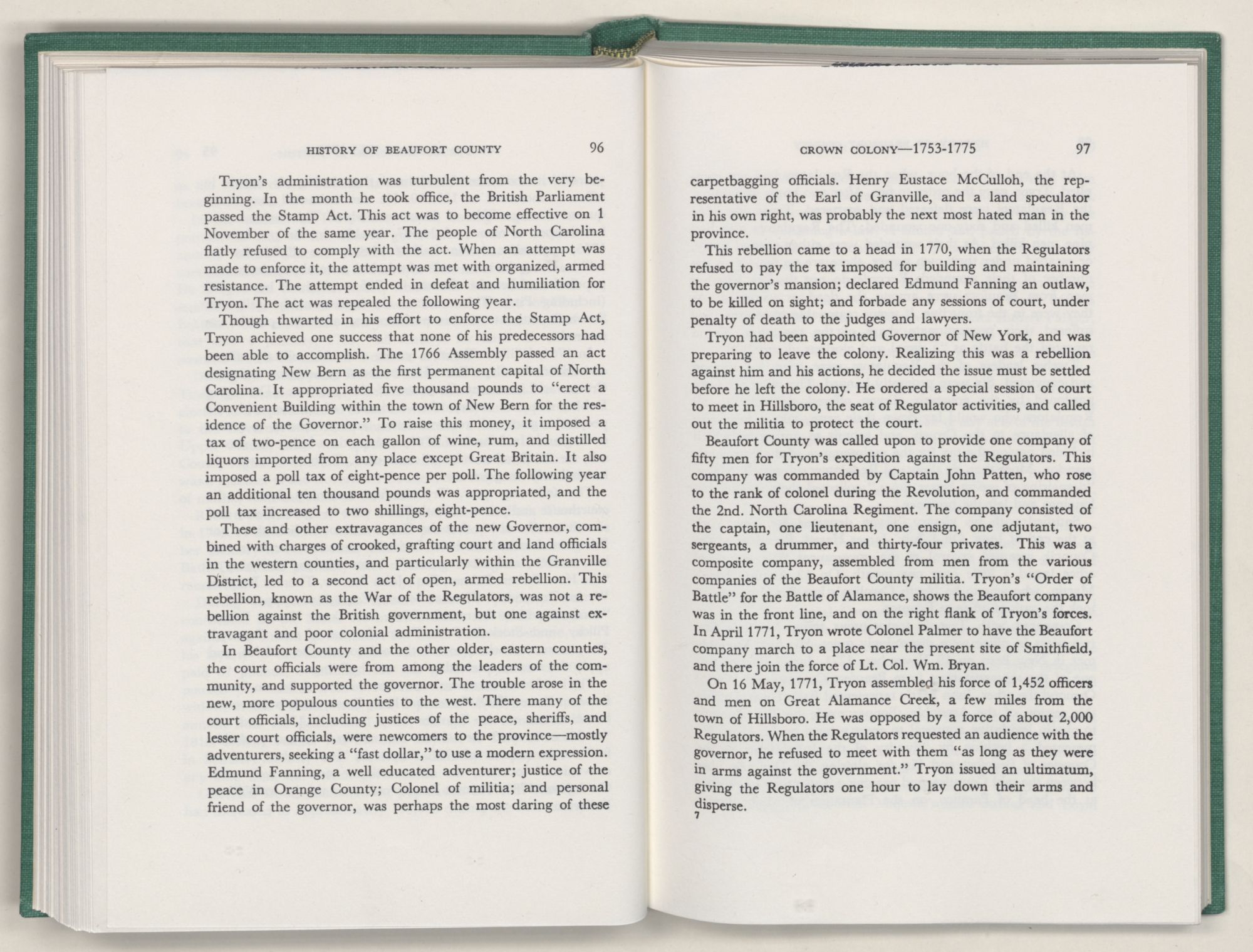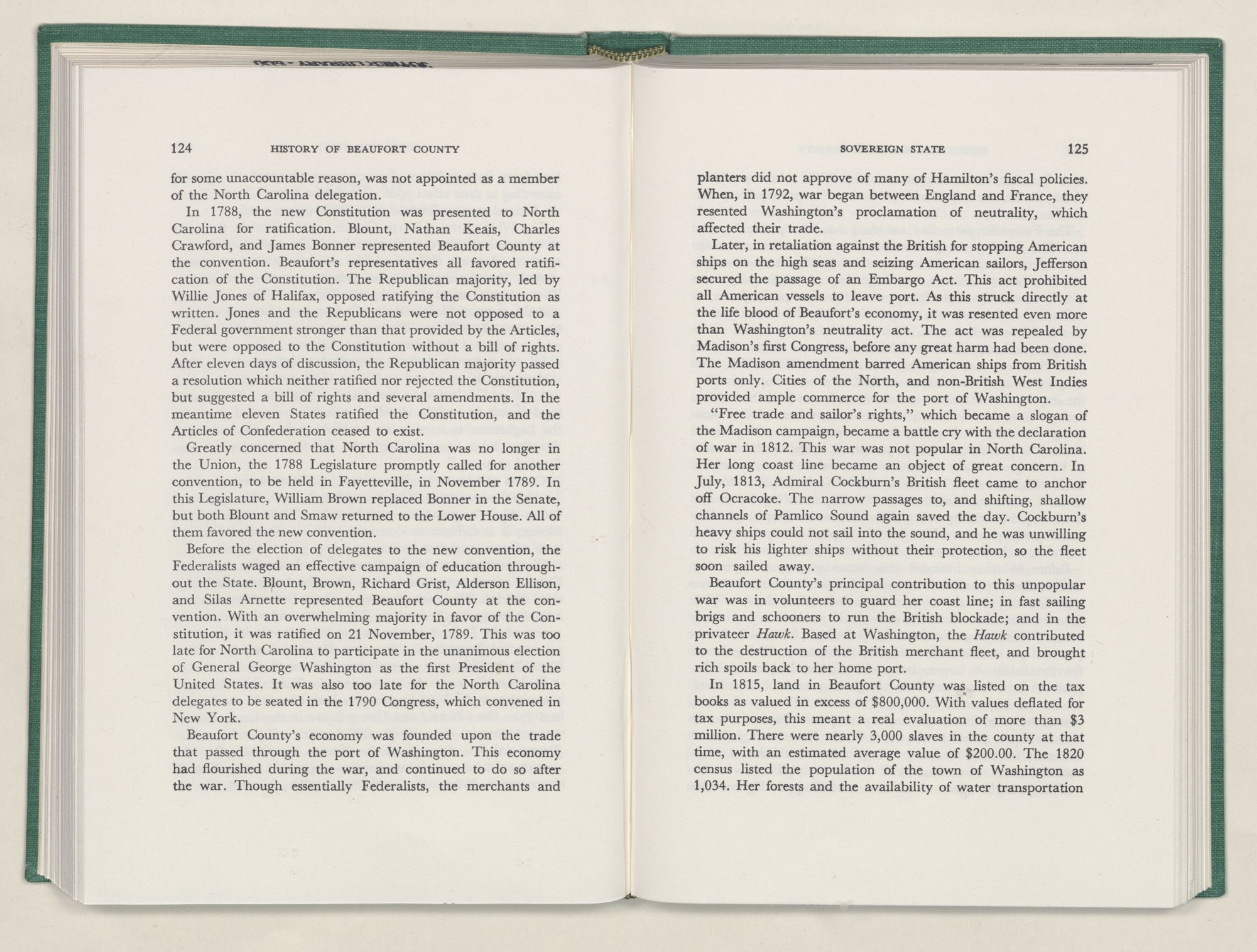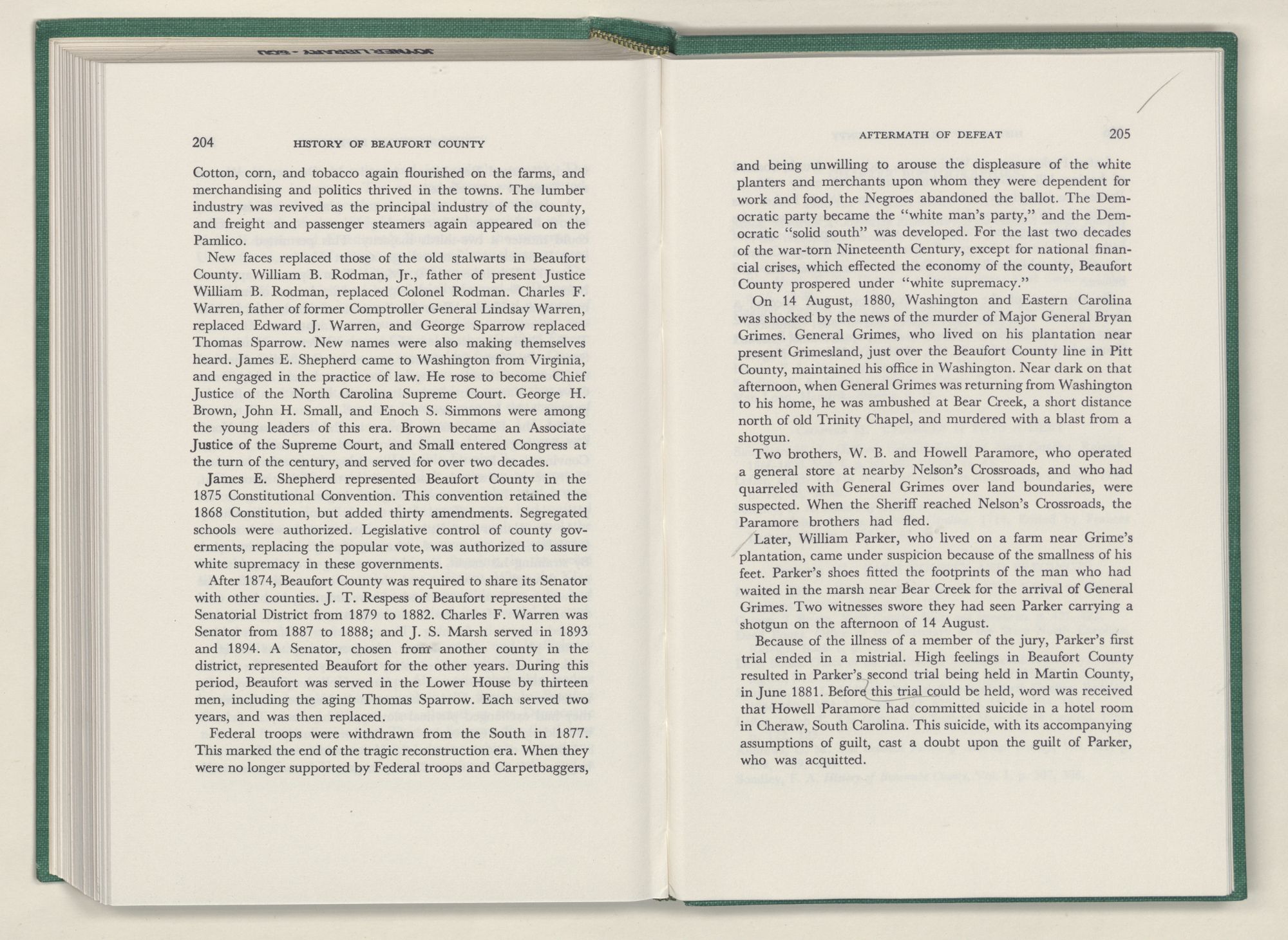 No political body is a separate entity. The smaller such political entity, the more necessary it becomes to refer to the larger, of which it is a part, if we are to explain the causes whose effects are exemplified by the actions of the people of the smaller entity. Beaufort County is an integral part of the the State and Nation. Hence it has at times been necessary to go beyond the bounds of the county to explain the actions of its people. When I have done so, I have leaned heavily upon Dr. Hugh T. Lefler's superior History of North Carolina. In the main, I have tried to restrict the actions and reactions, causes and effects, deeds and misdeeds recorded, to those within the bounds or direct interest of Beaufort County.