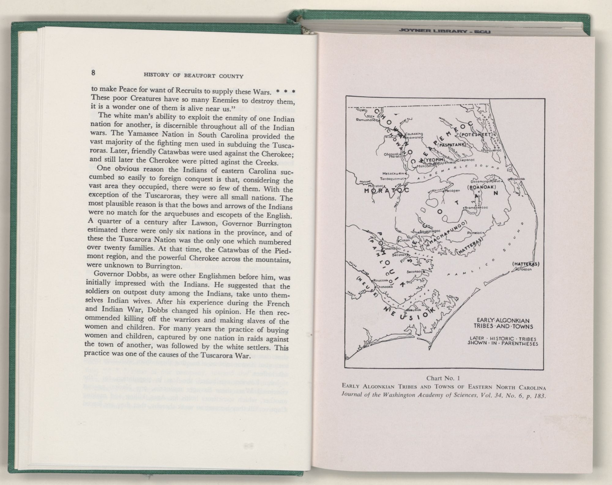 Acknowledgement is made to the Smithsonian Institution of the U. S. National Museum for the John White paintings reproduced herein; to the Journal of the Washington Academy of Science for the map showing the location of Indian nations and towns of Eastern Carolina; to the State Department of Archives and History for maps and other material provided; and to Dr. William S. Powell, Librarian of the North Carolina Collection of the University of North Carolina Library, and his staff for their assistance.