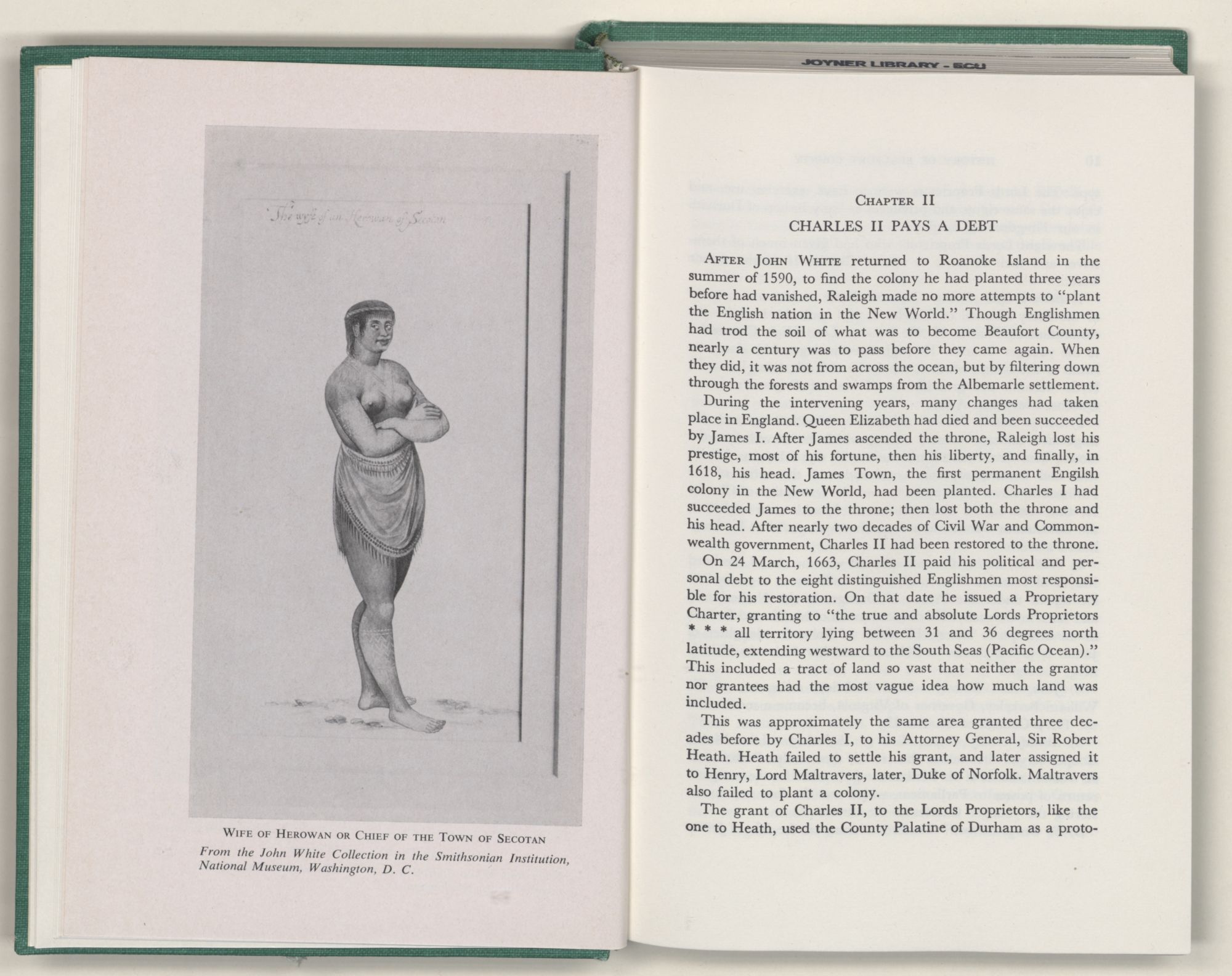 While on this trip, John White made sketches and paintings of the people and places they visited. Seventy-six of White's original paintings, depicting the Indians of coastal Carolina, their towns, and their customs, are preserved in the British Museum in London. Black and white reproductions of these pictures are in the Smithsonian Institution of the United States National Museum in Washington. These pictures tell us more fully than words how the first inhabitants of Beaufort County looked, dressed, and lived, when first seen by white men, more than three and three-quarter centuries ago.