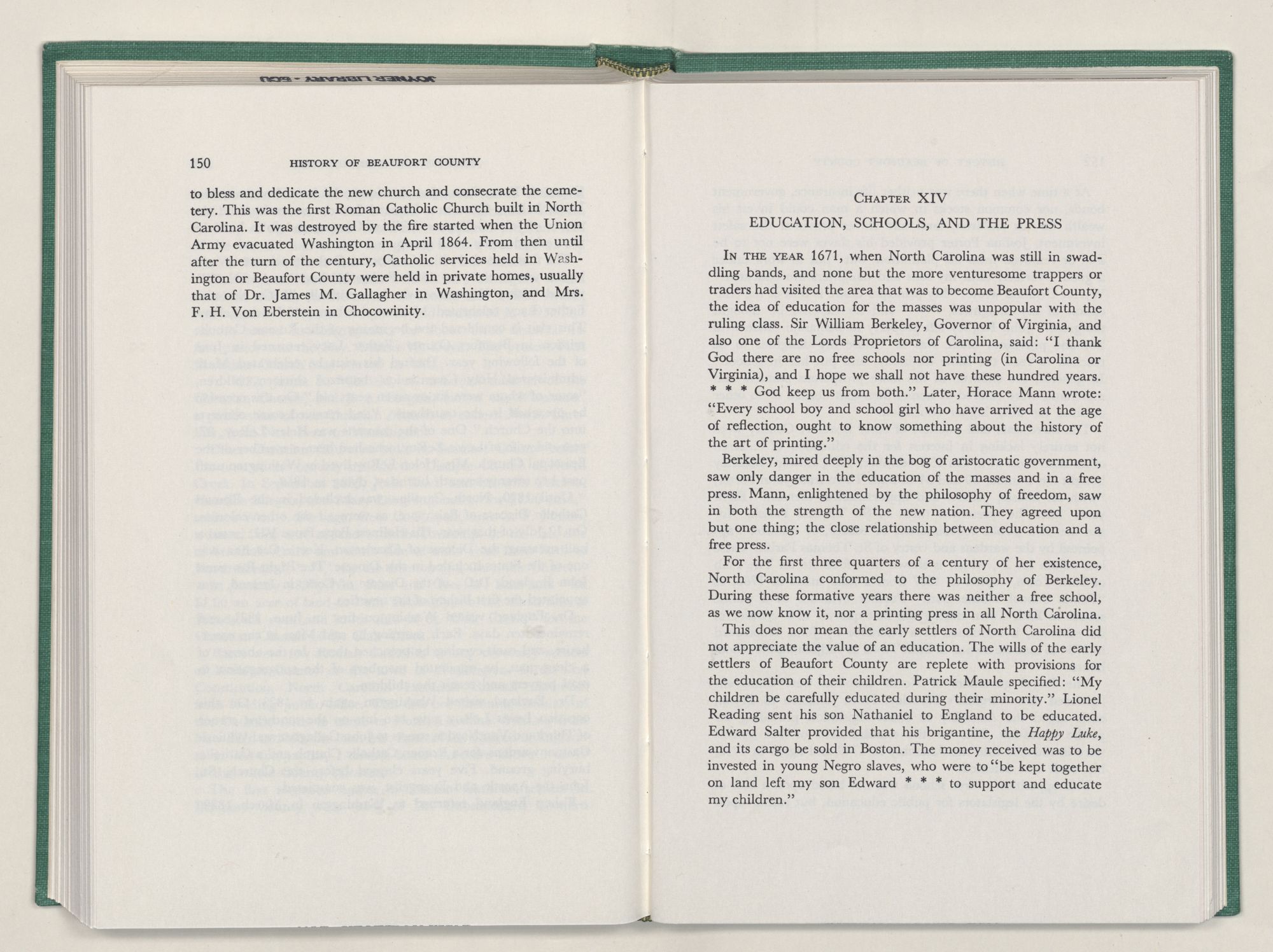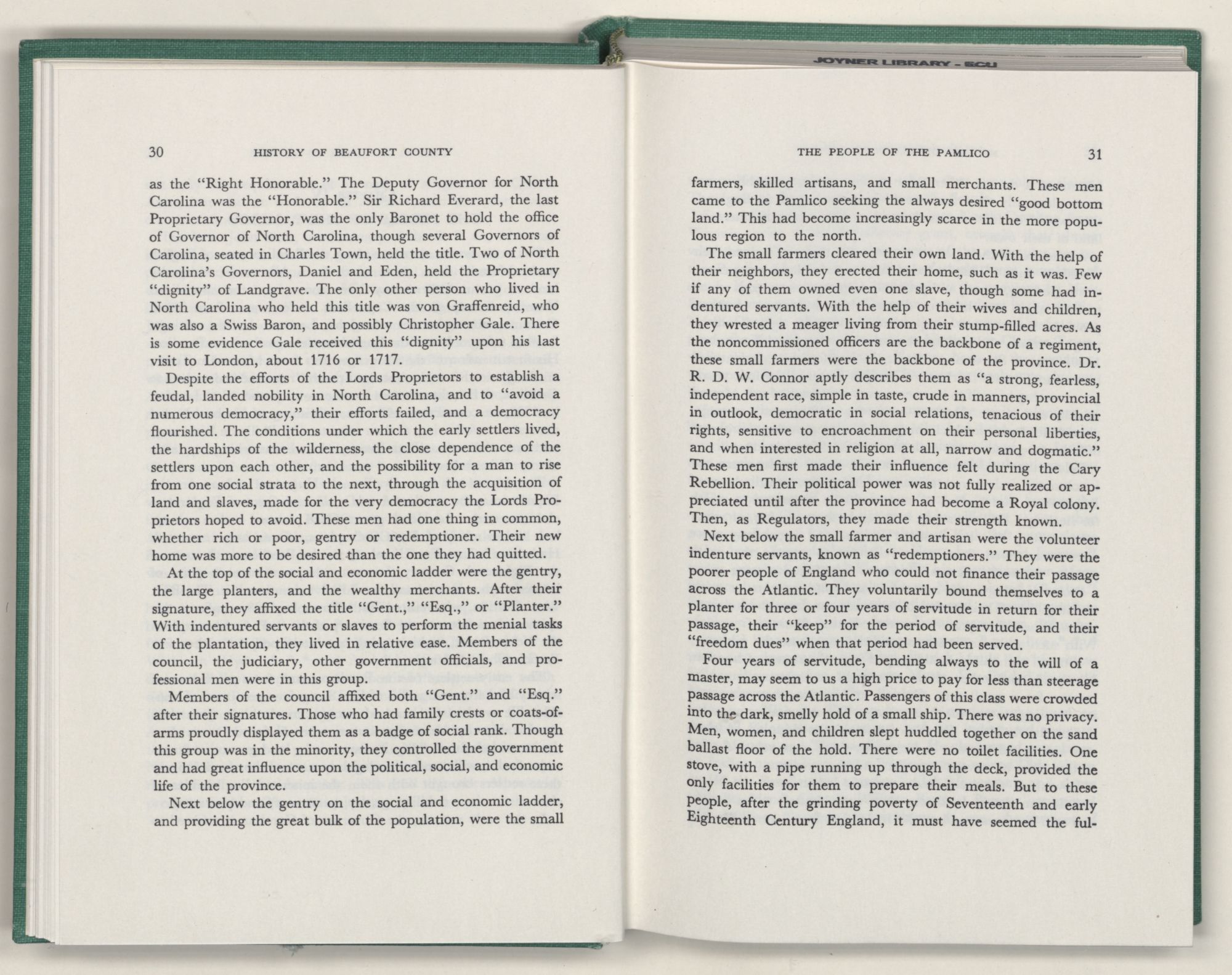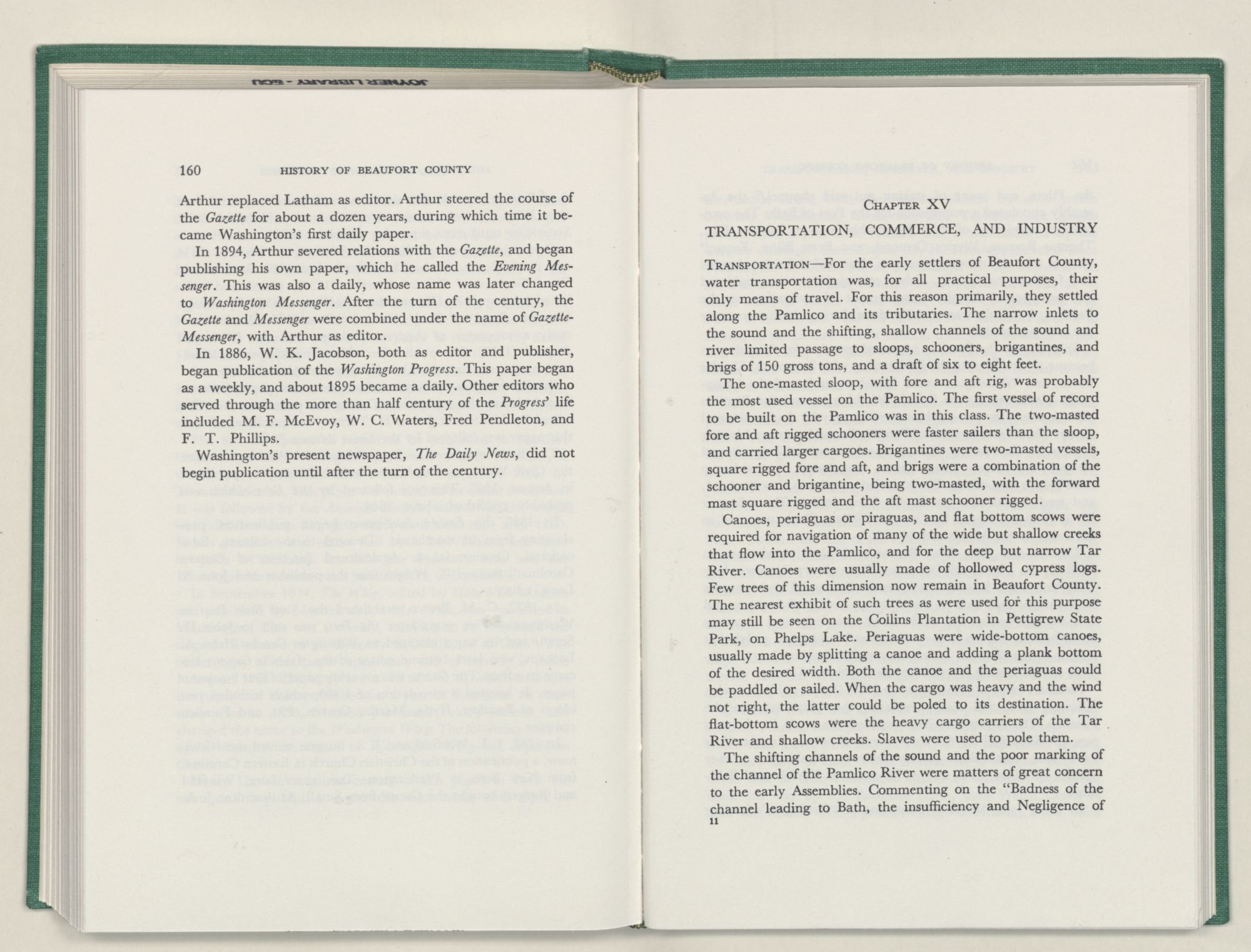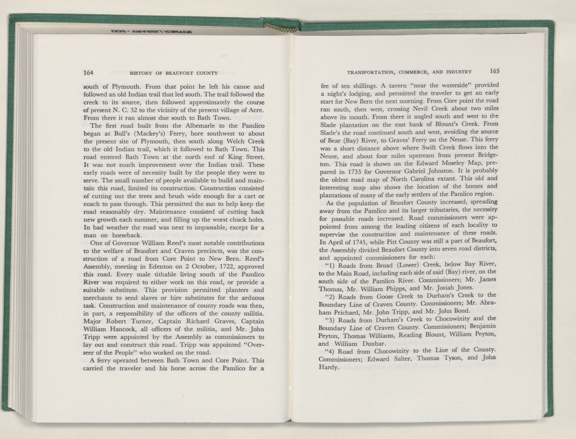 It was with this conviction firmly in mind, that I undertook the chronicling of the first two centuries of Beaufort County's history. In this work I have tried to depict the lives of the people of Beaufort County; where they settled and how they lived; their efforts to provide for their religion and education; and to develop transportation, commerce, and industry.