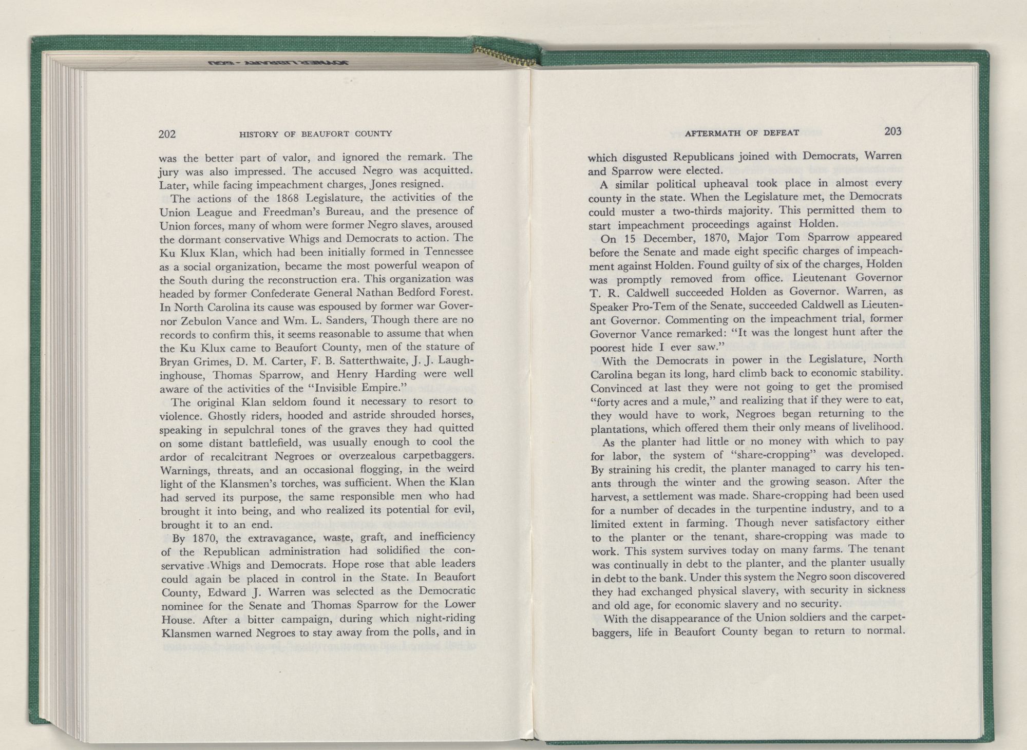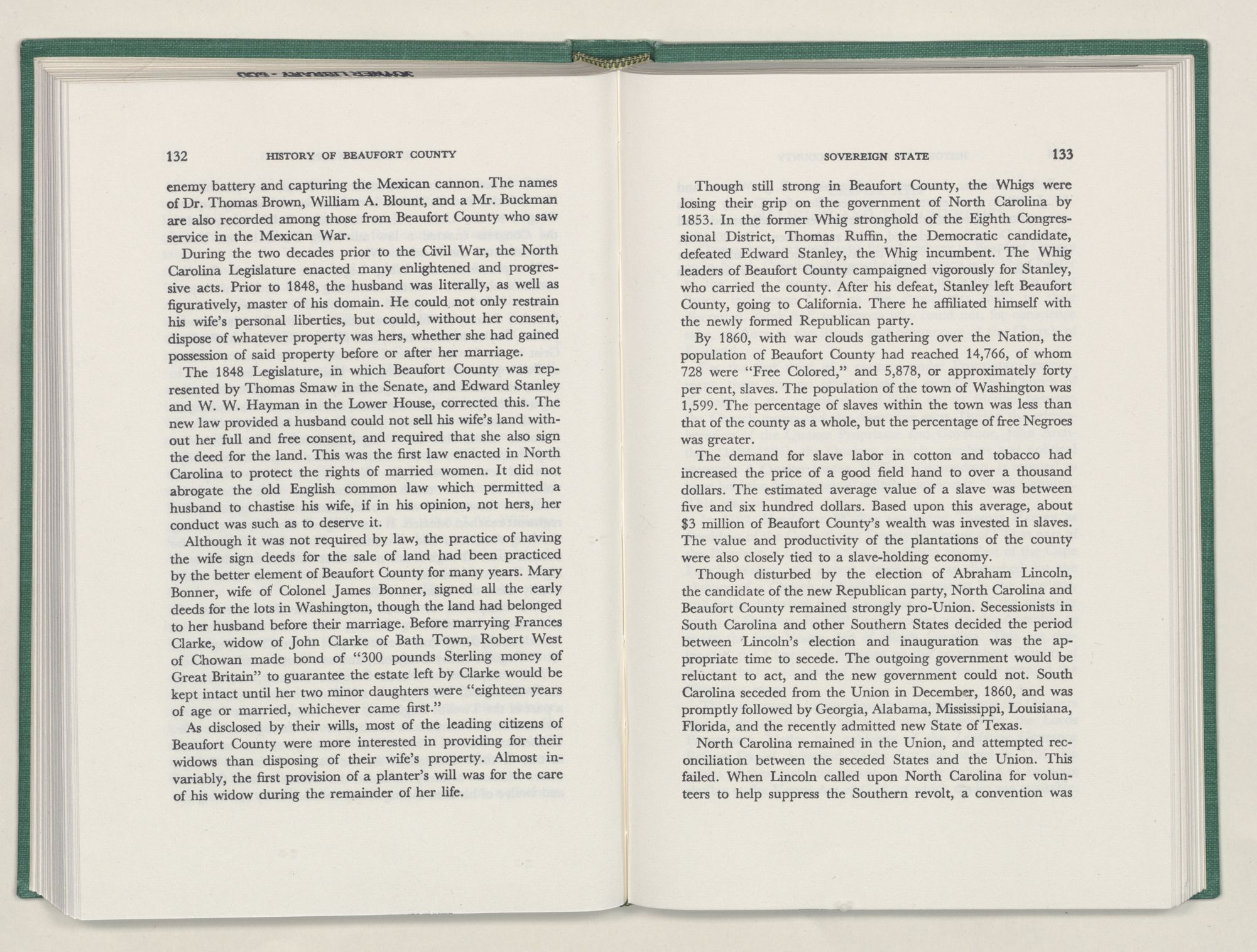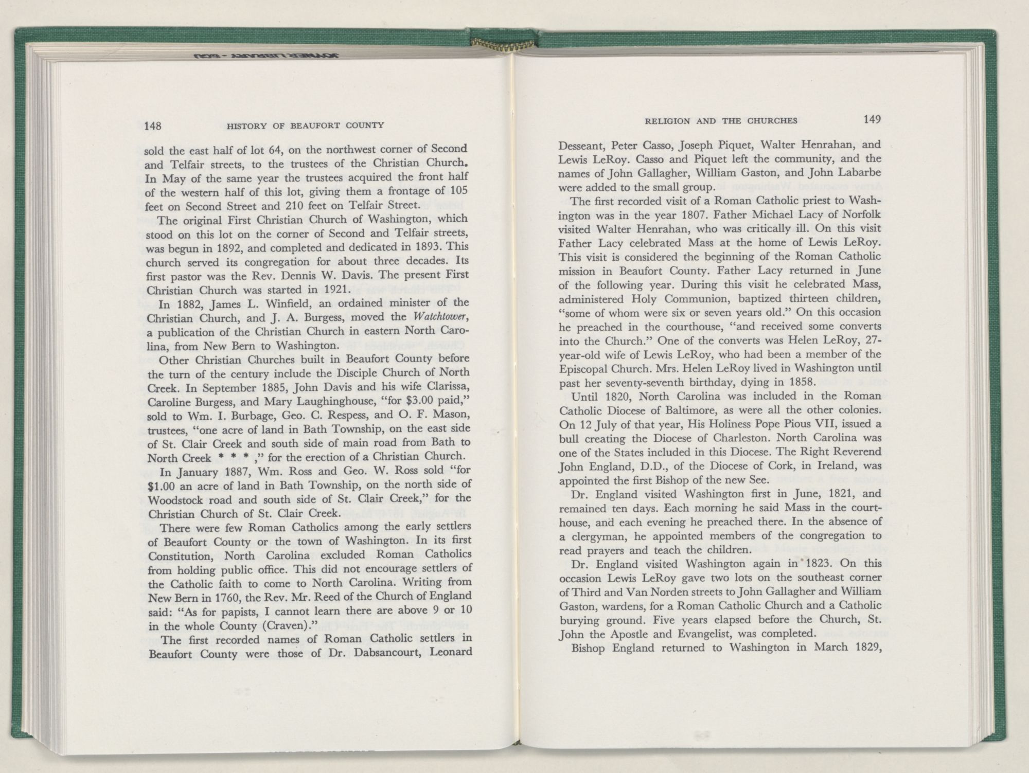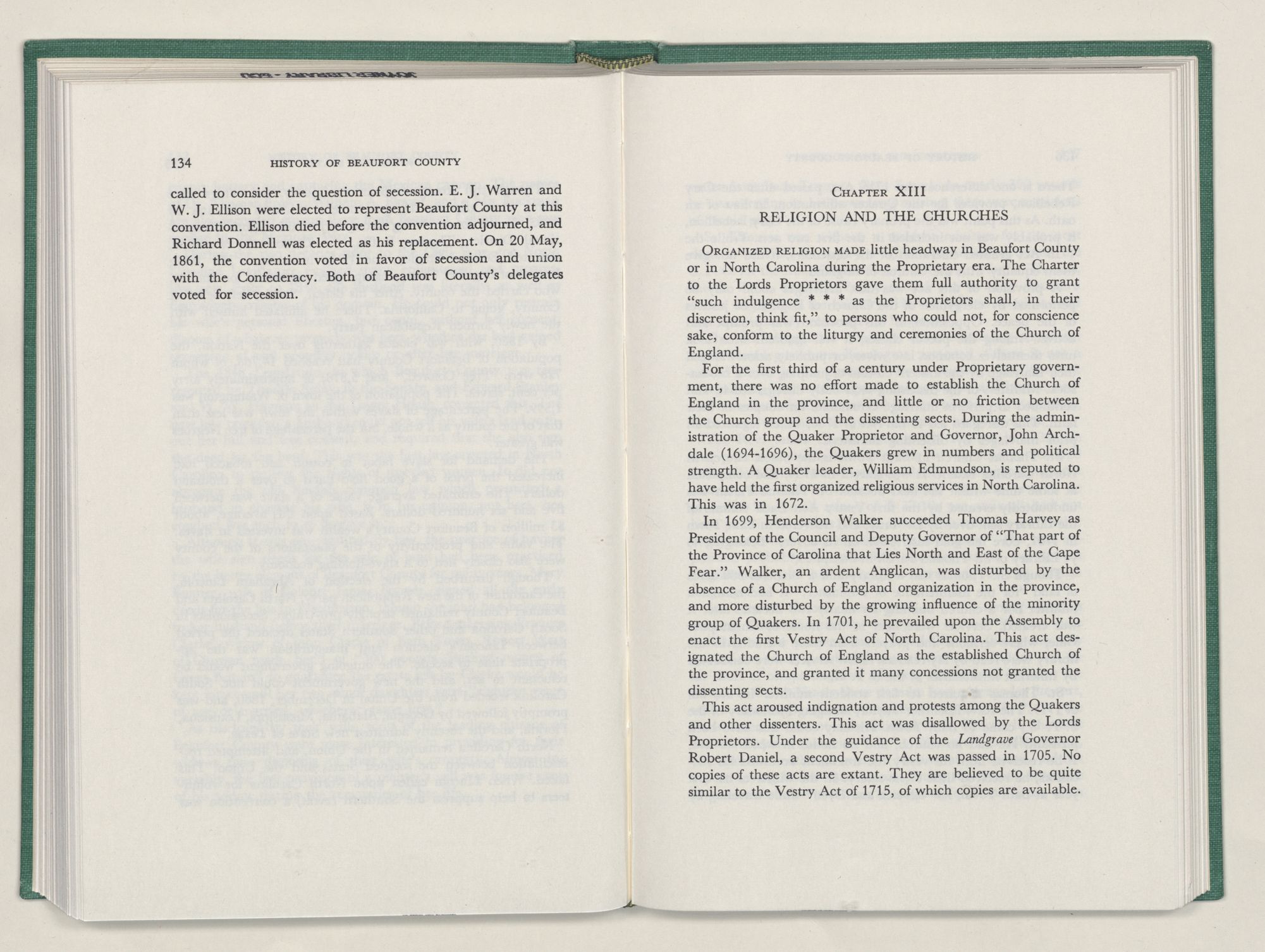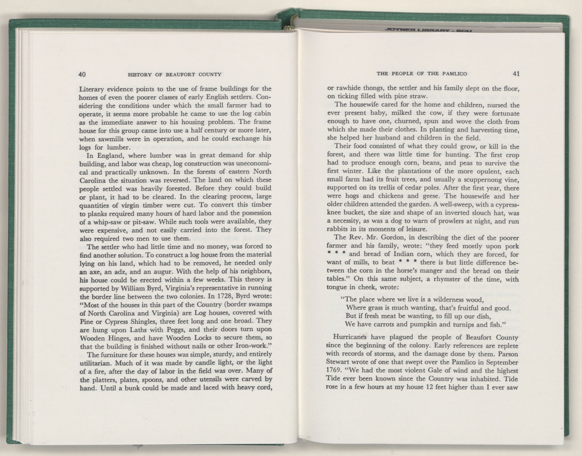 It was with this conviction firmly in mind, that I undertook the chronicling of the first two centuries of Beaufort County's history. In this work I have tried to depict the lives of the people of Beaufort County; where they settled and how they lived; their efforts to provide for their religion and education; and to develop transportation, commerce, and industry.