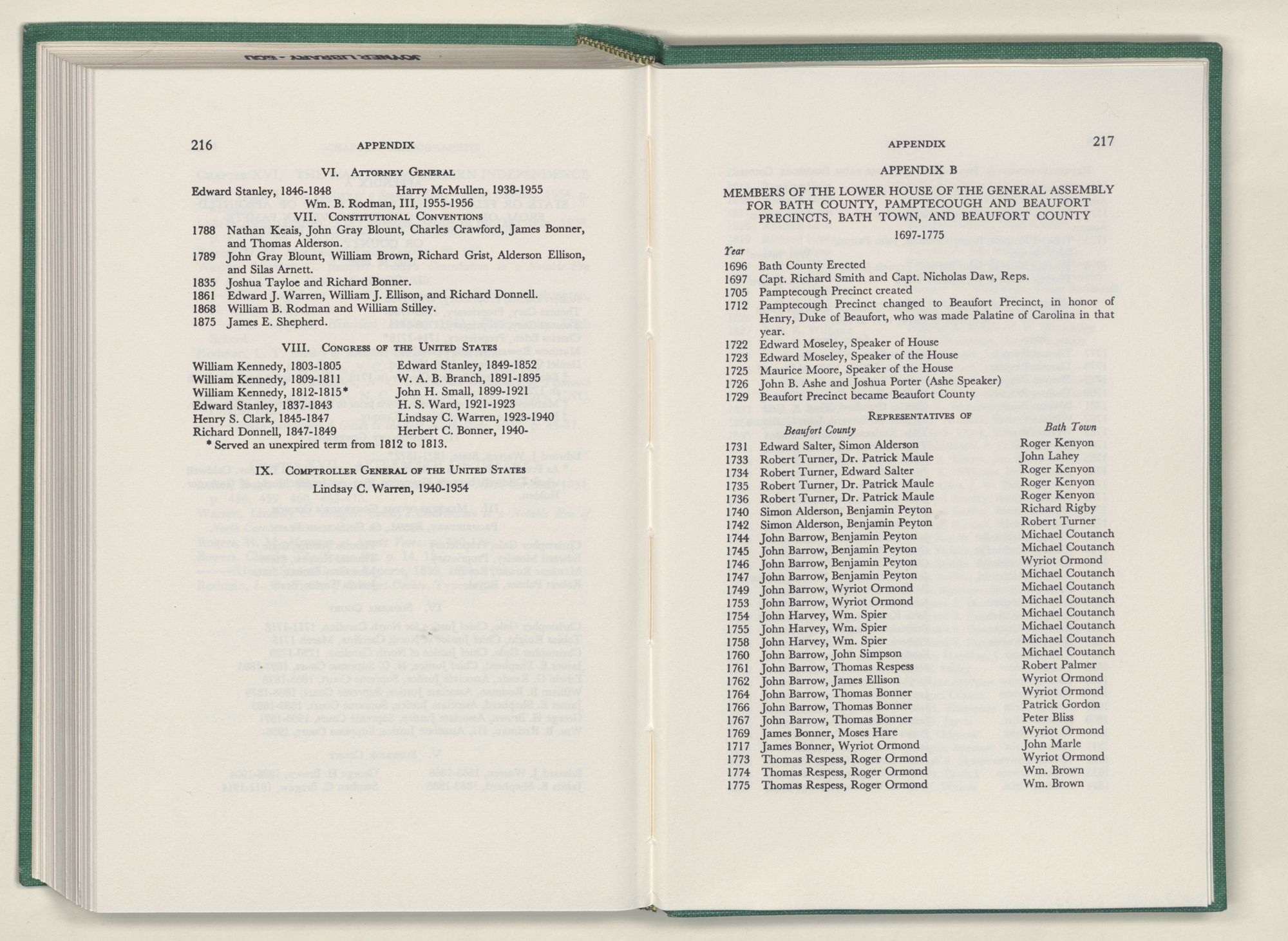 | A | State or Federal Officials from Beaufort County | 215-216 |