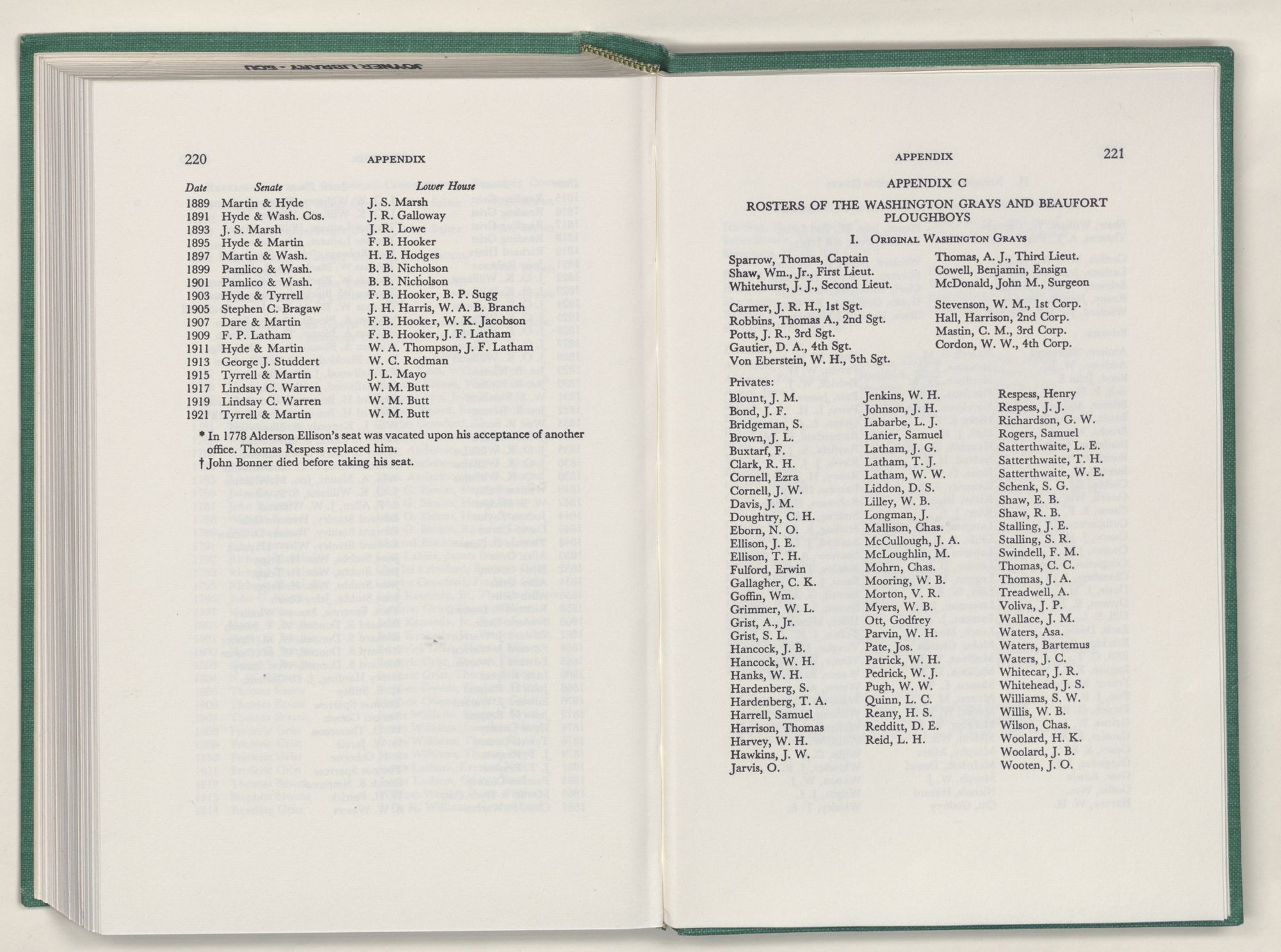 | C | Rosters of Washington Grays and Beaufort Ploughboys | 221-223 |
