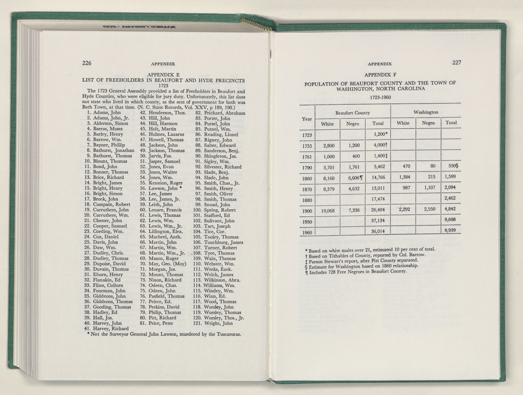 | E | Freeholders, Beaufort and Hyde Precincts, 1723 | 226 |
