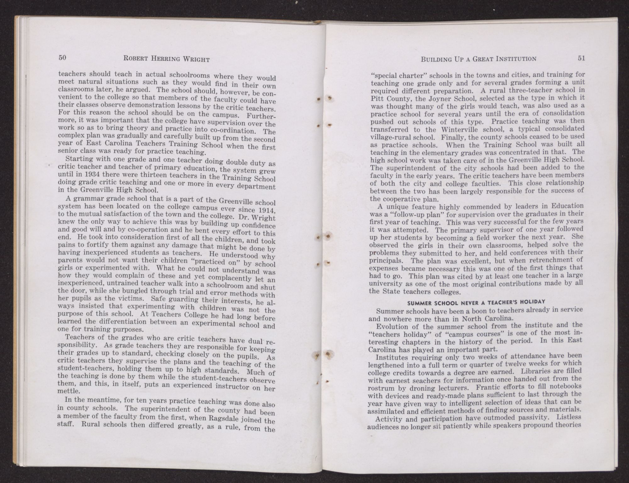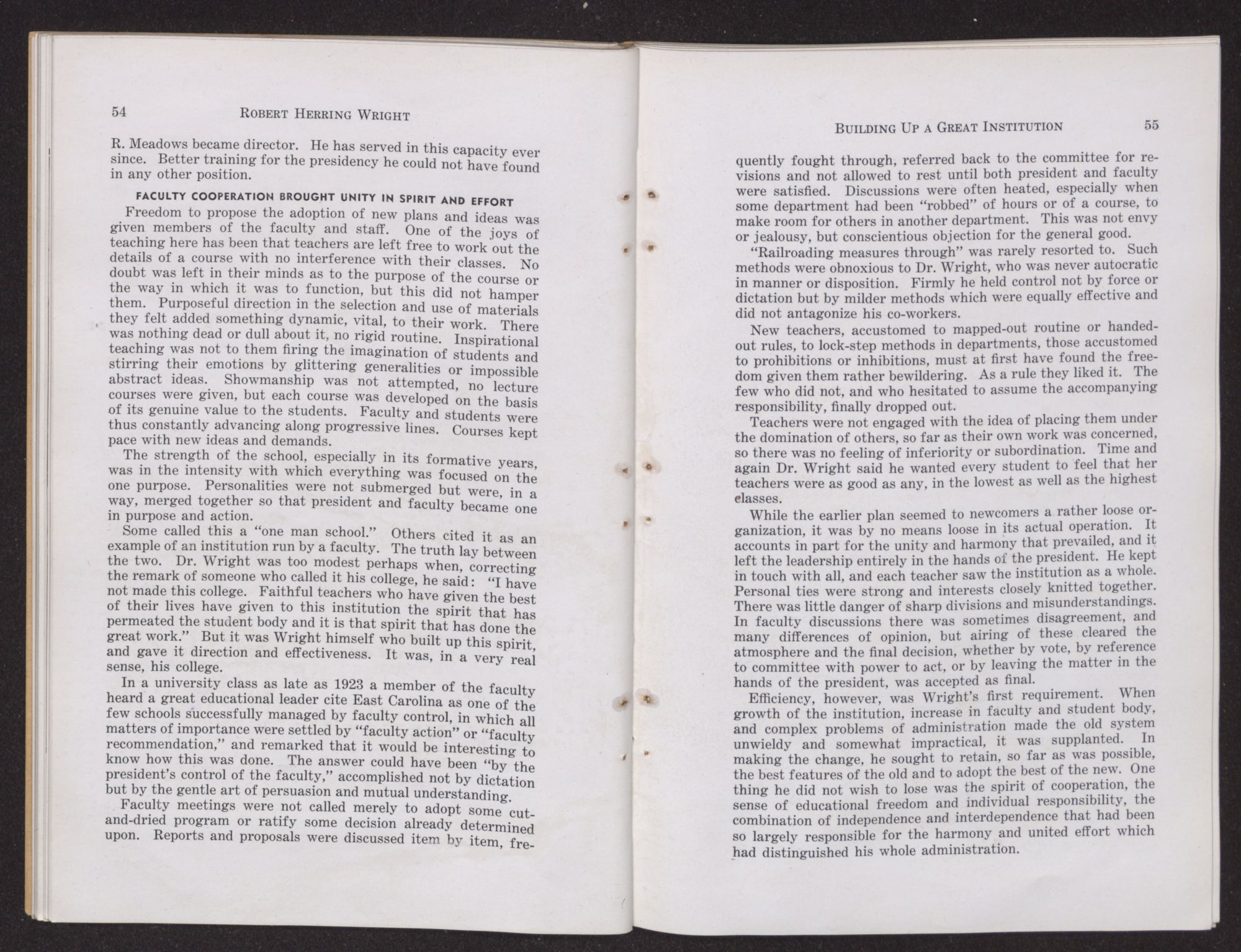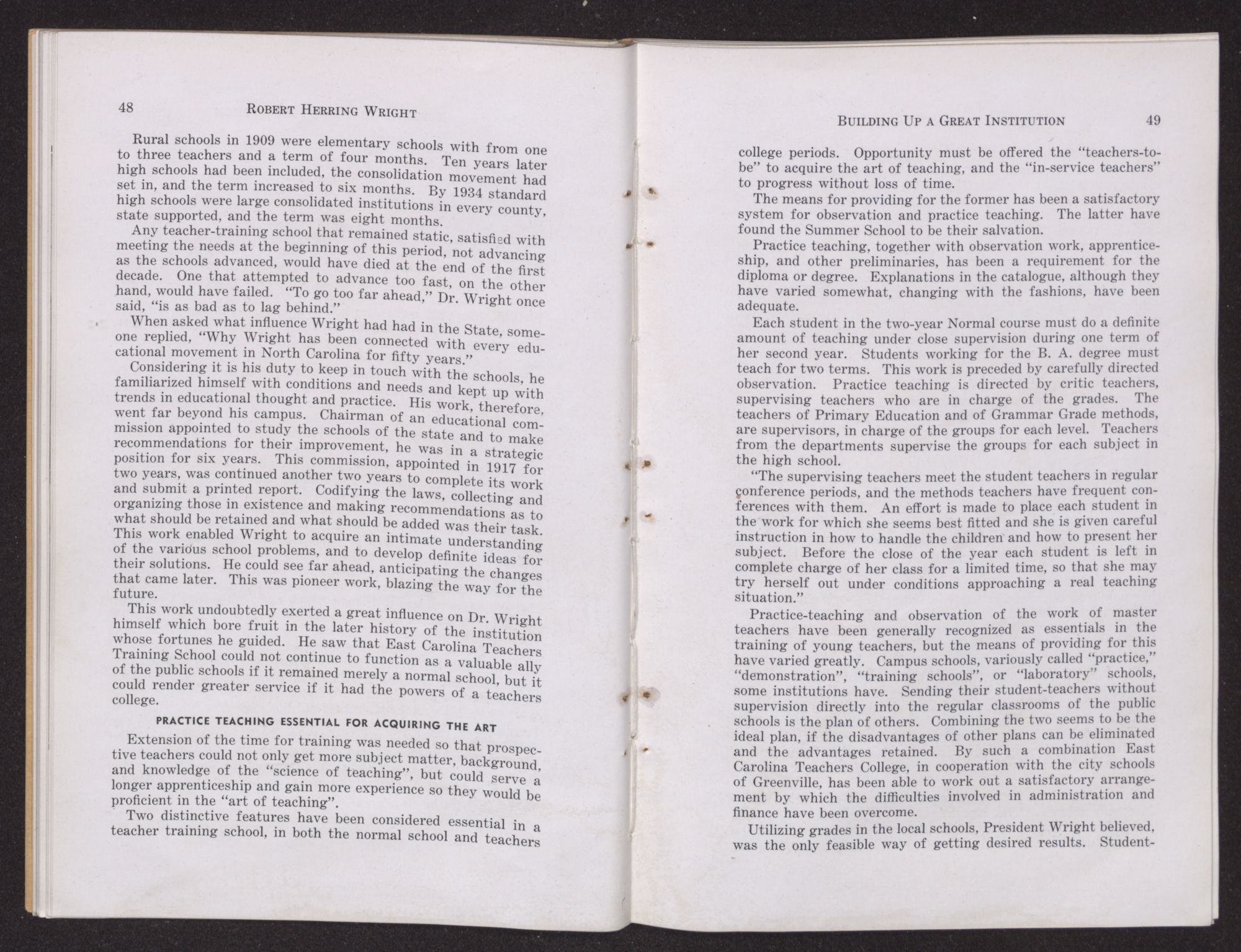 We, his colleagues, representatives of the faculty of East Carolina Teachers College, as a memorial to him herewith present a record of his life and works, with some interpretation of the principles for which he stood and the ideals he translated into objectives. In tracing his career as an educational leader, we have added to our conception of his contribution in the improvement of the public school system of the State, the appraisal his peers have placed upon him and his services.