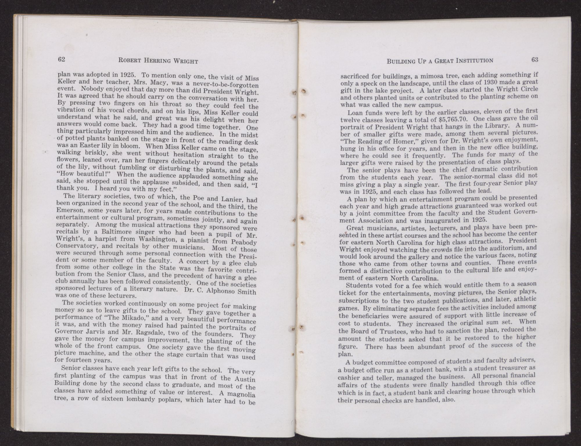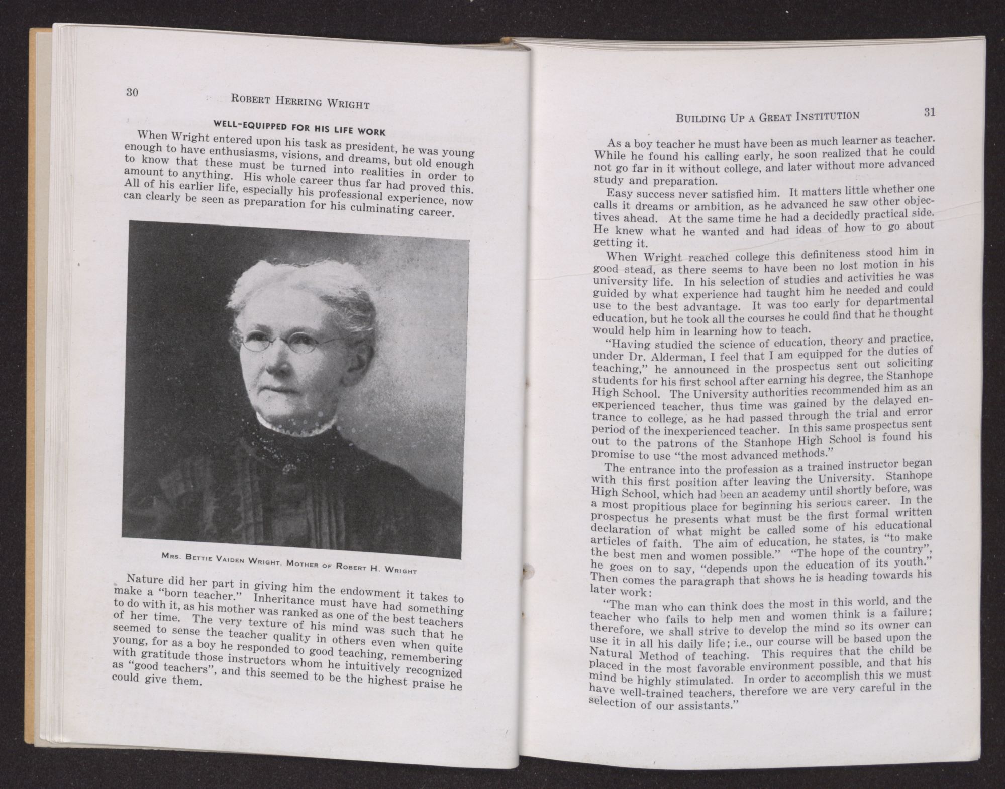 Twenty-five years of his life, the best of his thought and efforts, went into the building of this institution. It was, in truth, his life work for which all else seems, in retrospection, to have been preparation. Within the following pages we have attempted to let his works speak for him.
