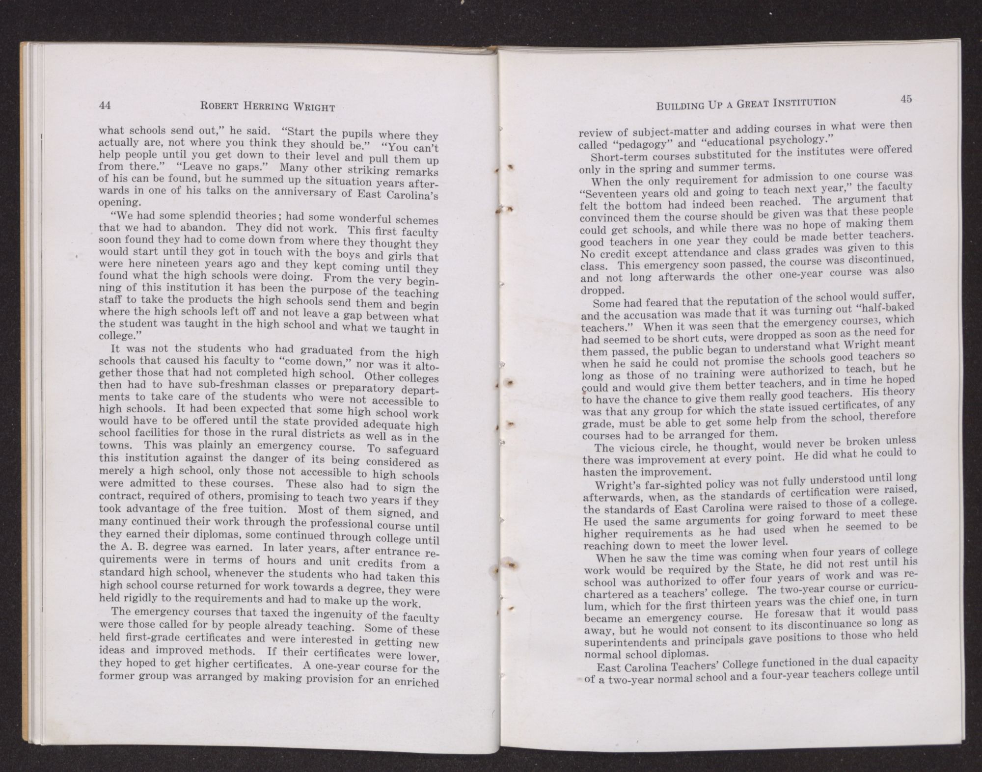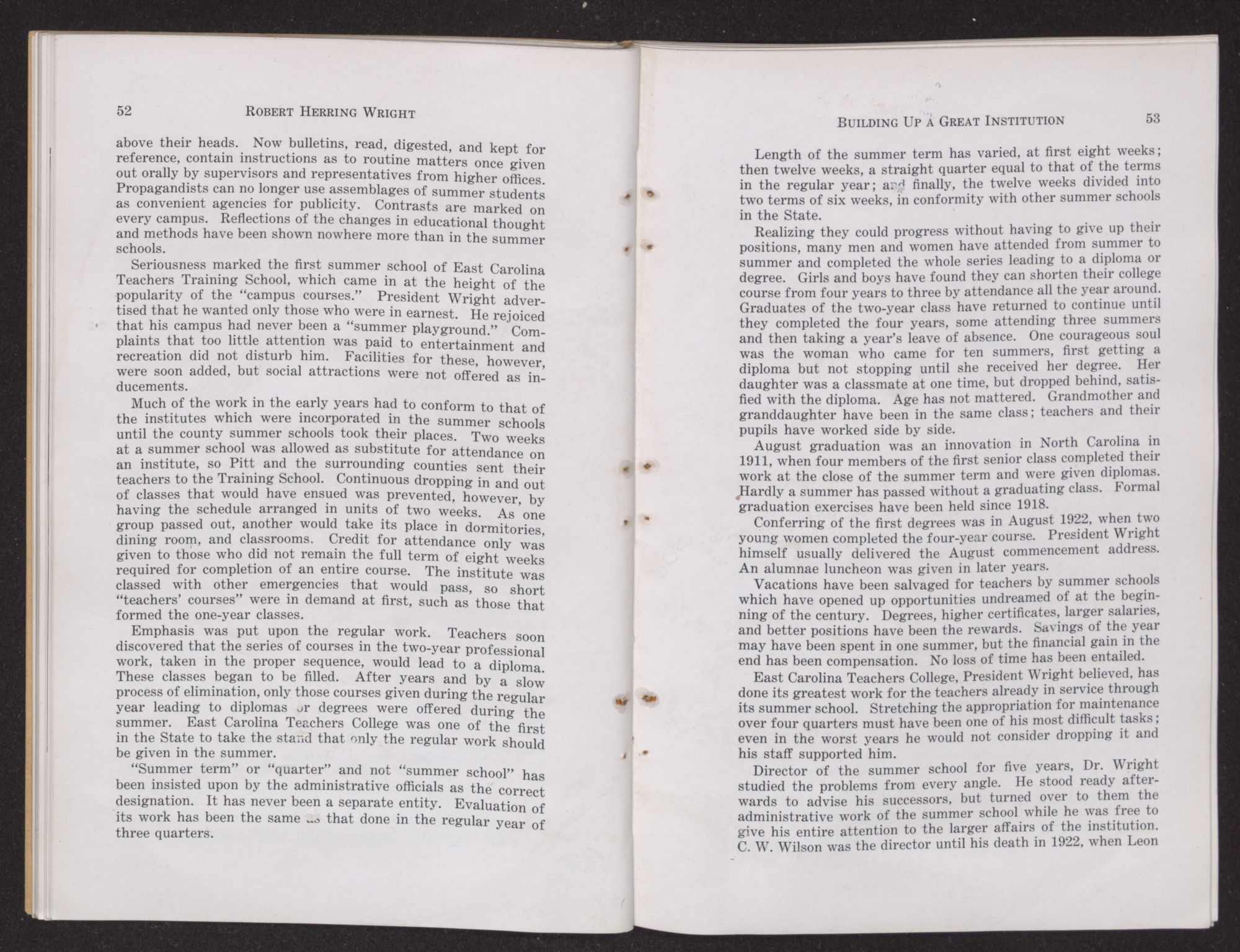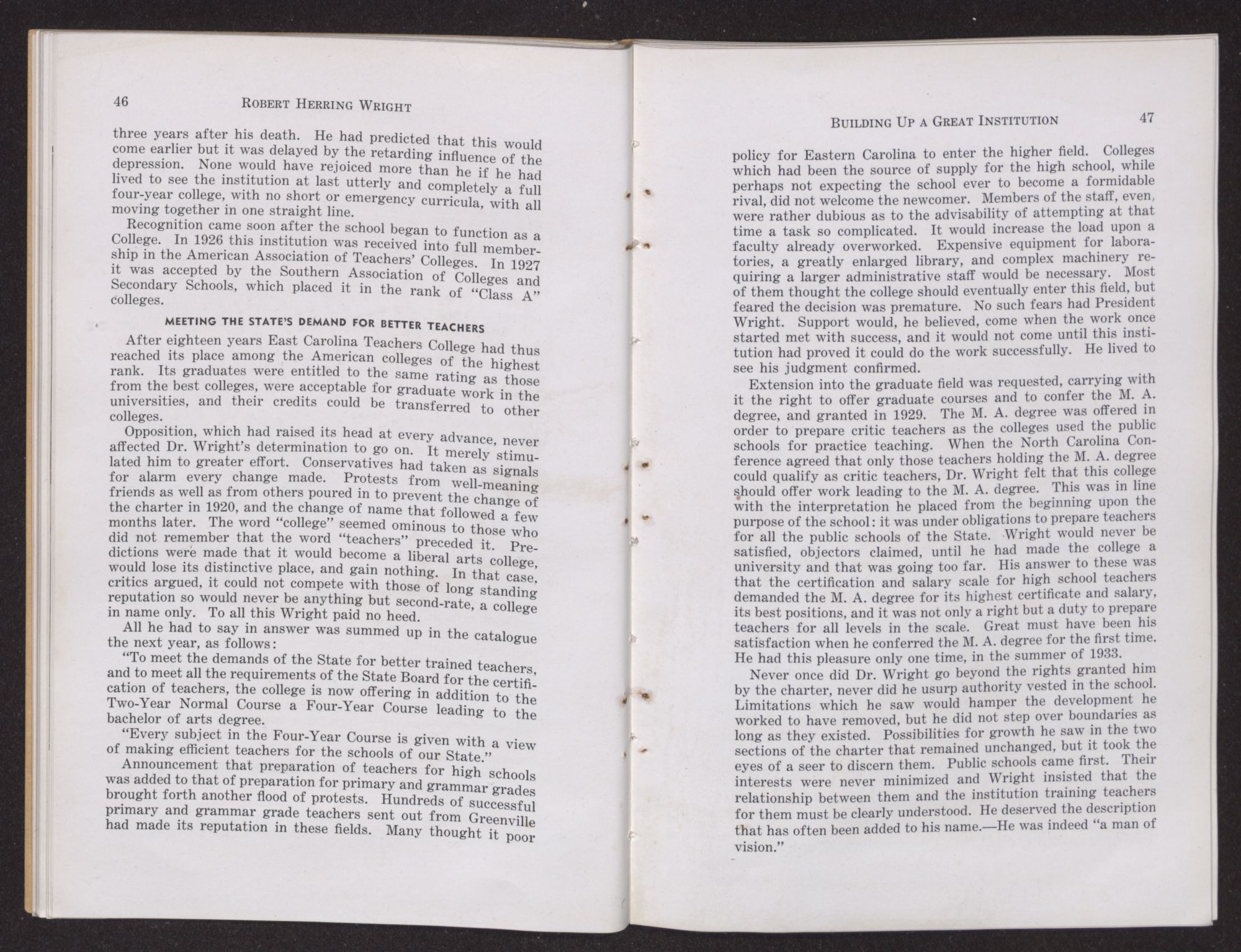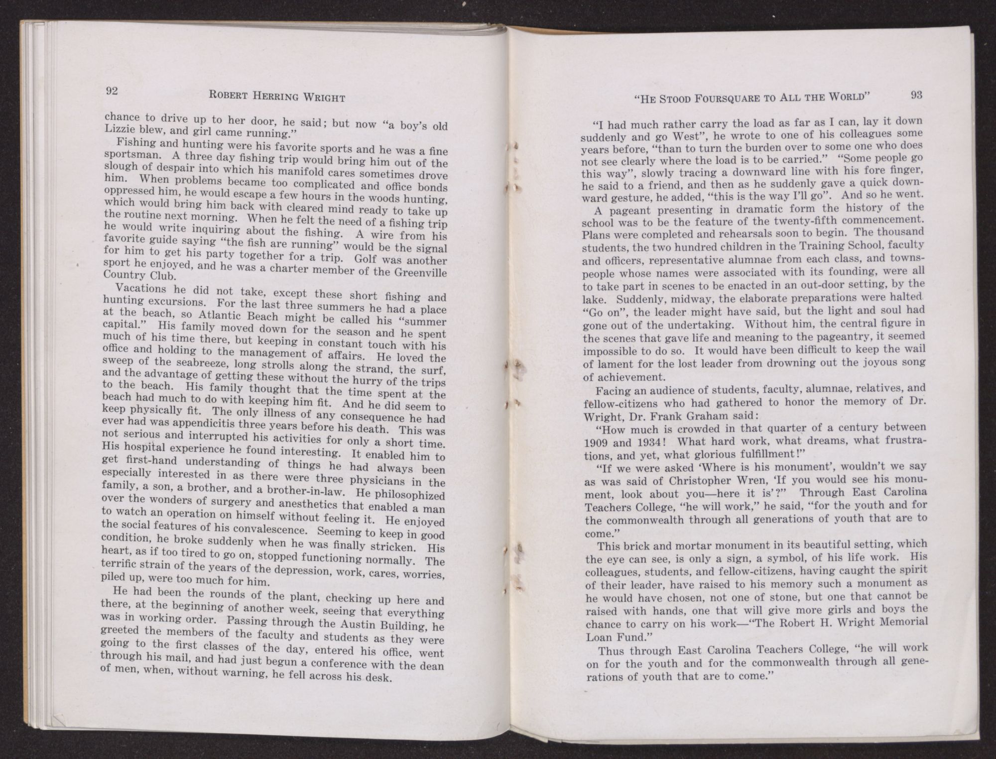 “It is a story of East Carolina on the march. It is the story of a leader,” said Dr. Frank Graham of Robert Herring Wright and his life of service. “Already tested, he came back to his native state and became a great leader of the people.”