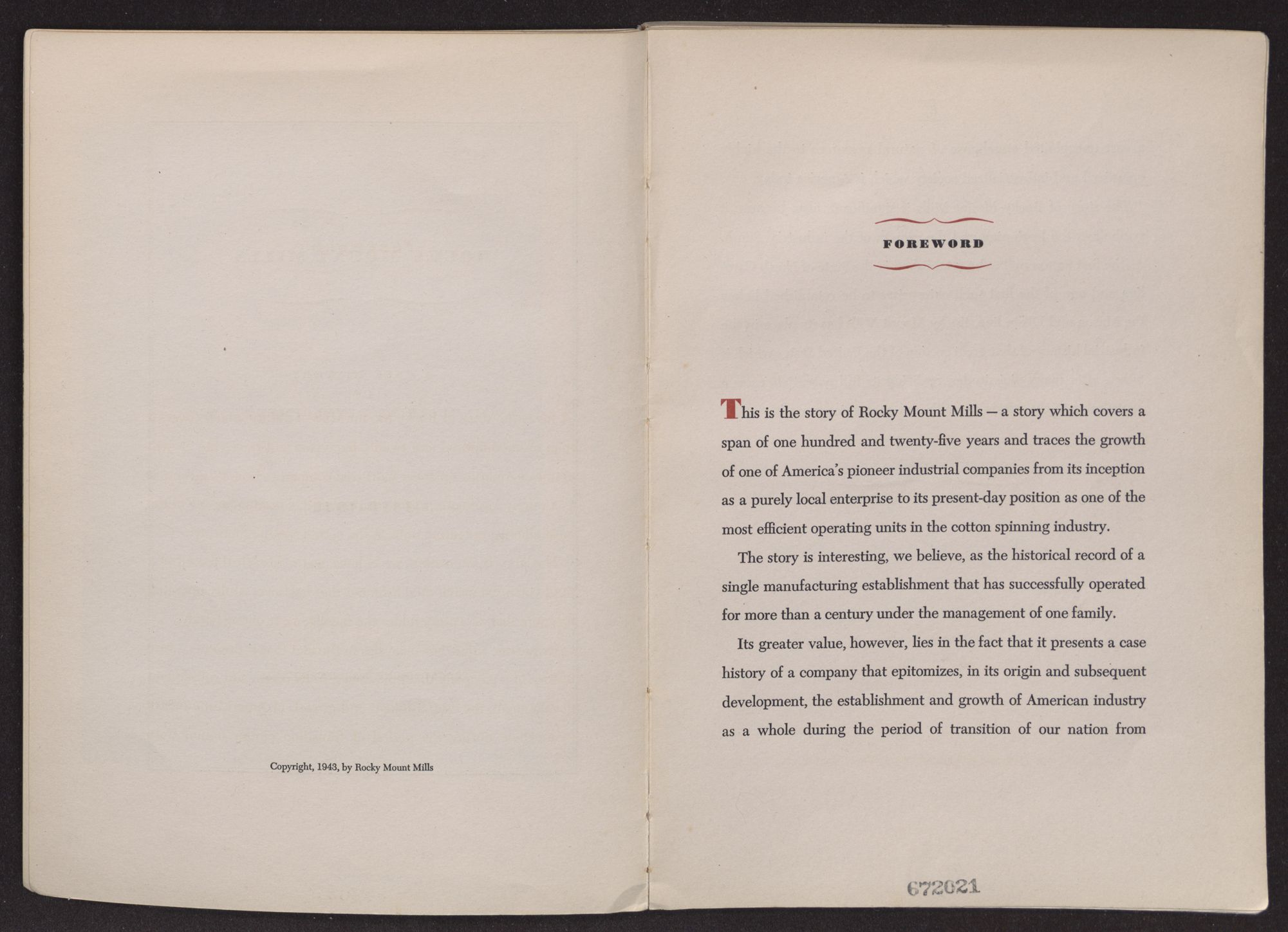 Copyright, 1943, by Rocky Mount Mills