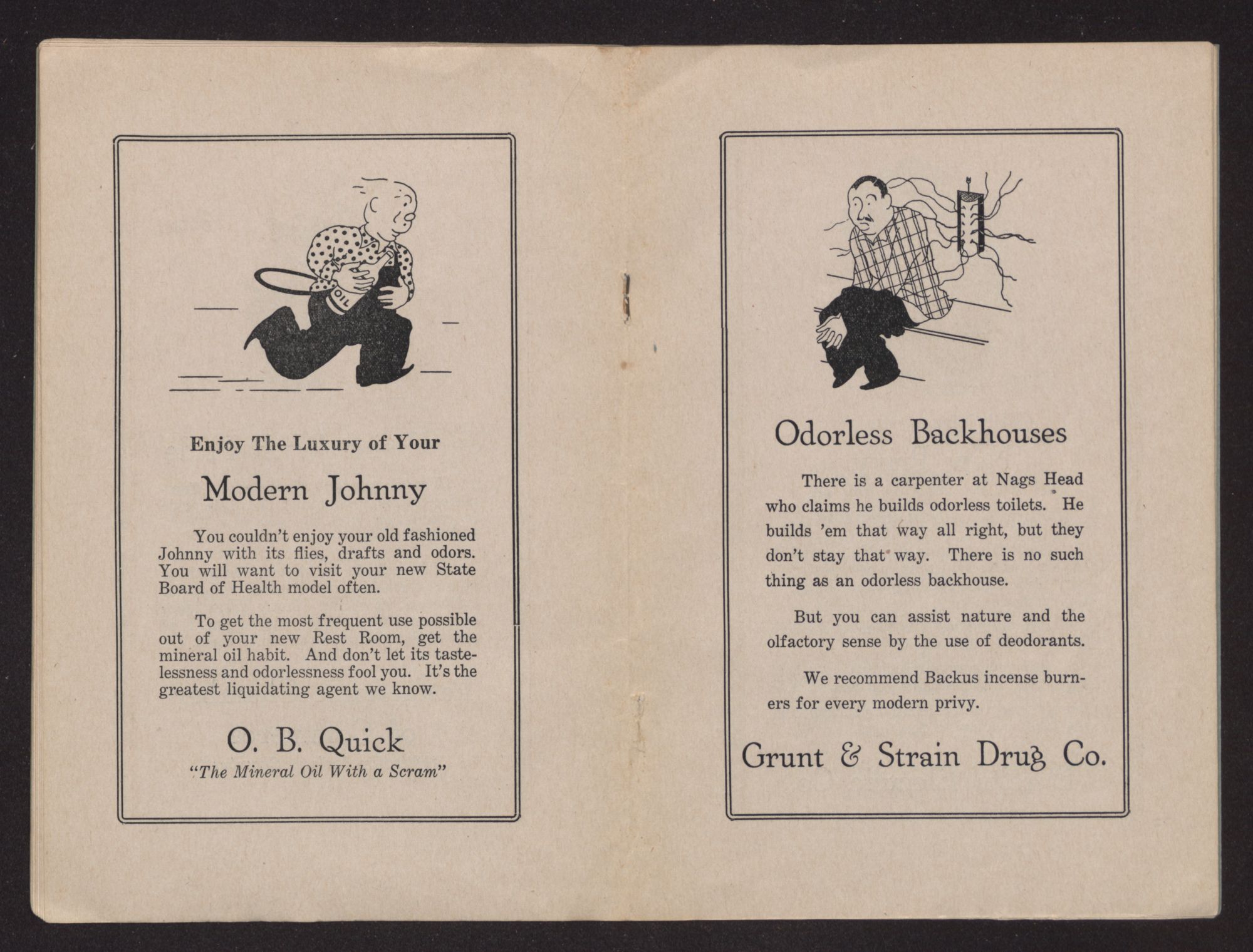 After all, the backhouse is something of an educational institution—a seat of culture, so to speak. Many great ideas have been born in them, and thousands of persons have learned to read in them.