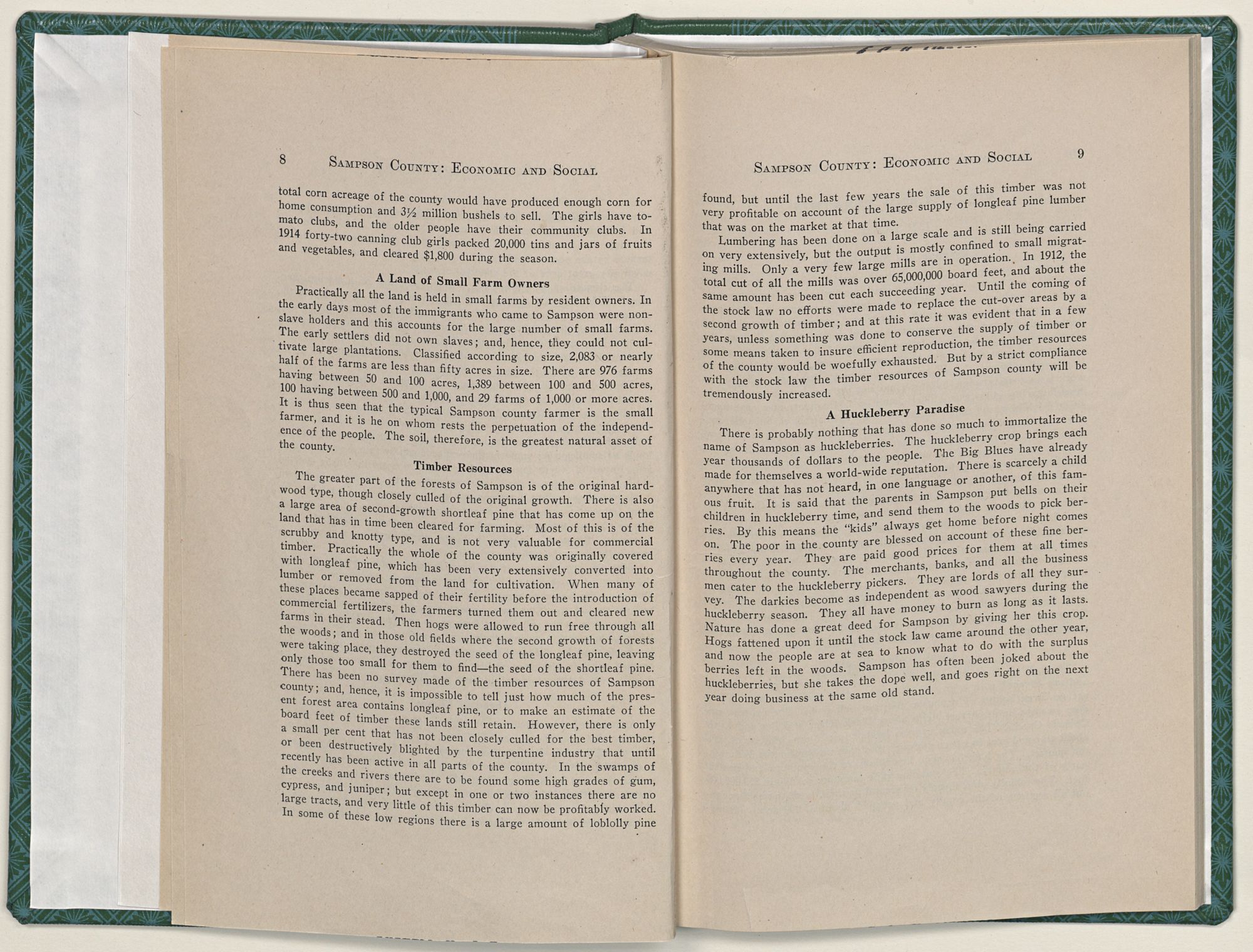 The series of studies here given to the public under the title, “Sampson County: Economic and Social,” is the work of four Sampson county students at the University of North Carolina during rare intervals in the regular schedule of a busy college year.