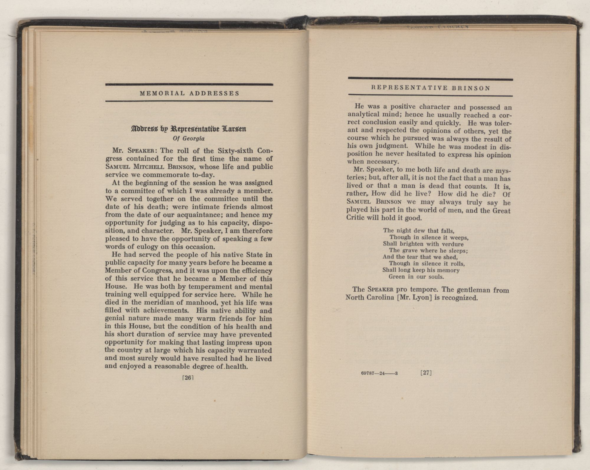 | Mr. William W. Larsen, of Georgia | 26 |