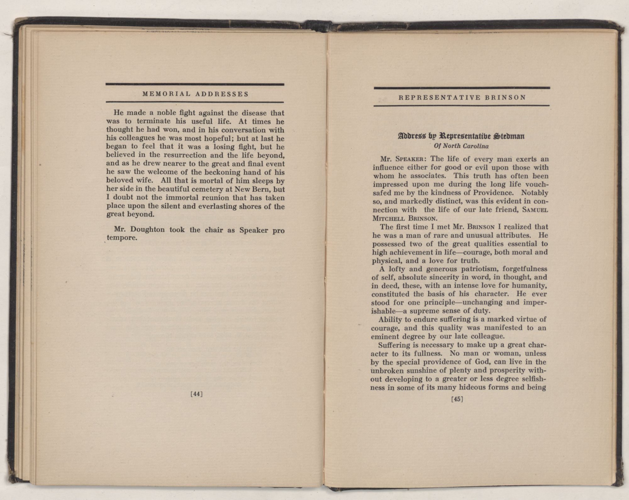 | Mr. Charles M. Stedman, of North Carolina | 45 |