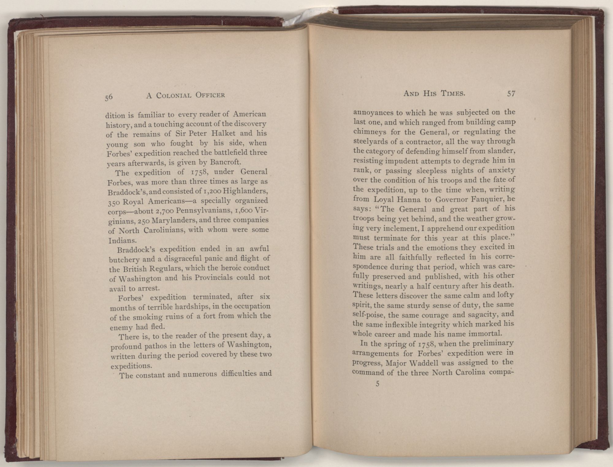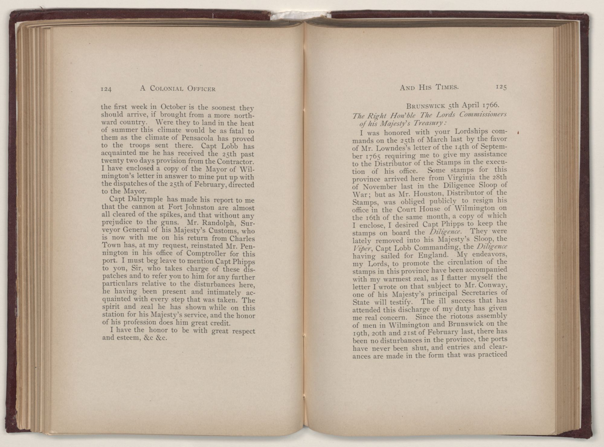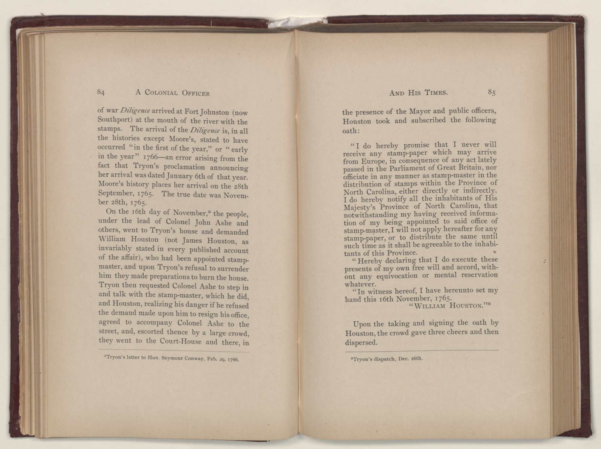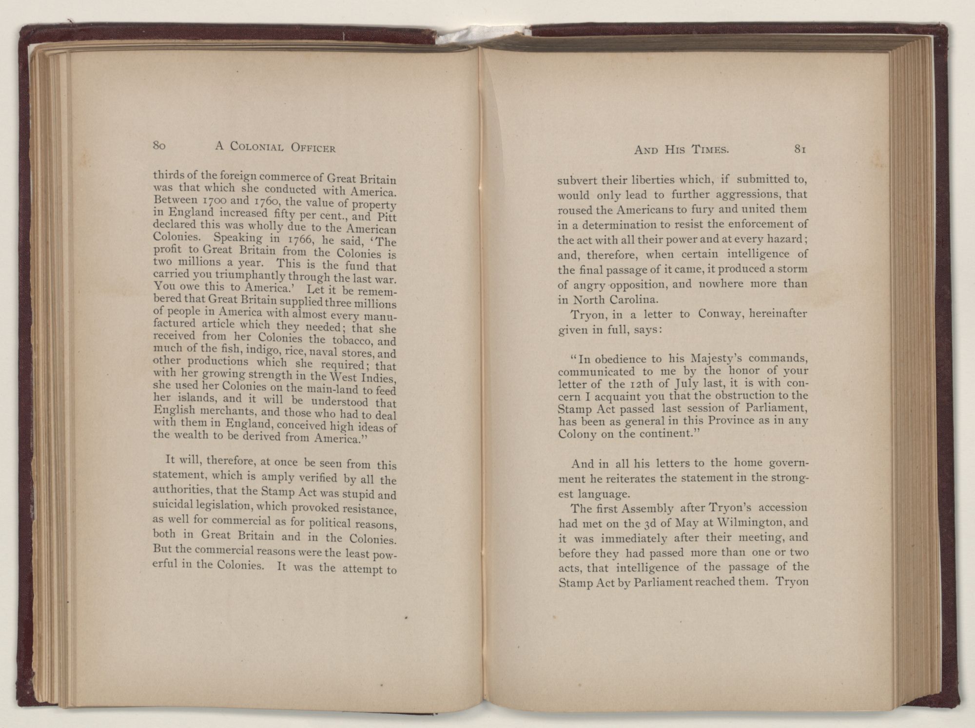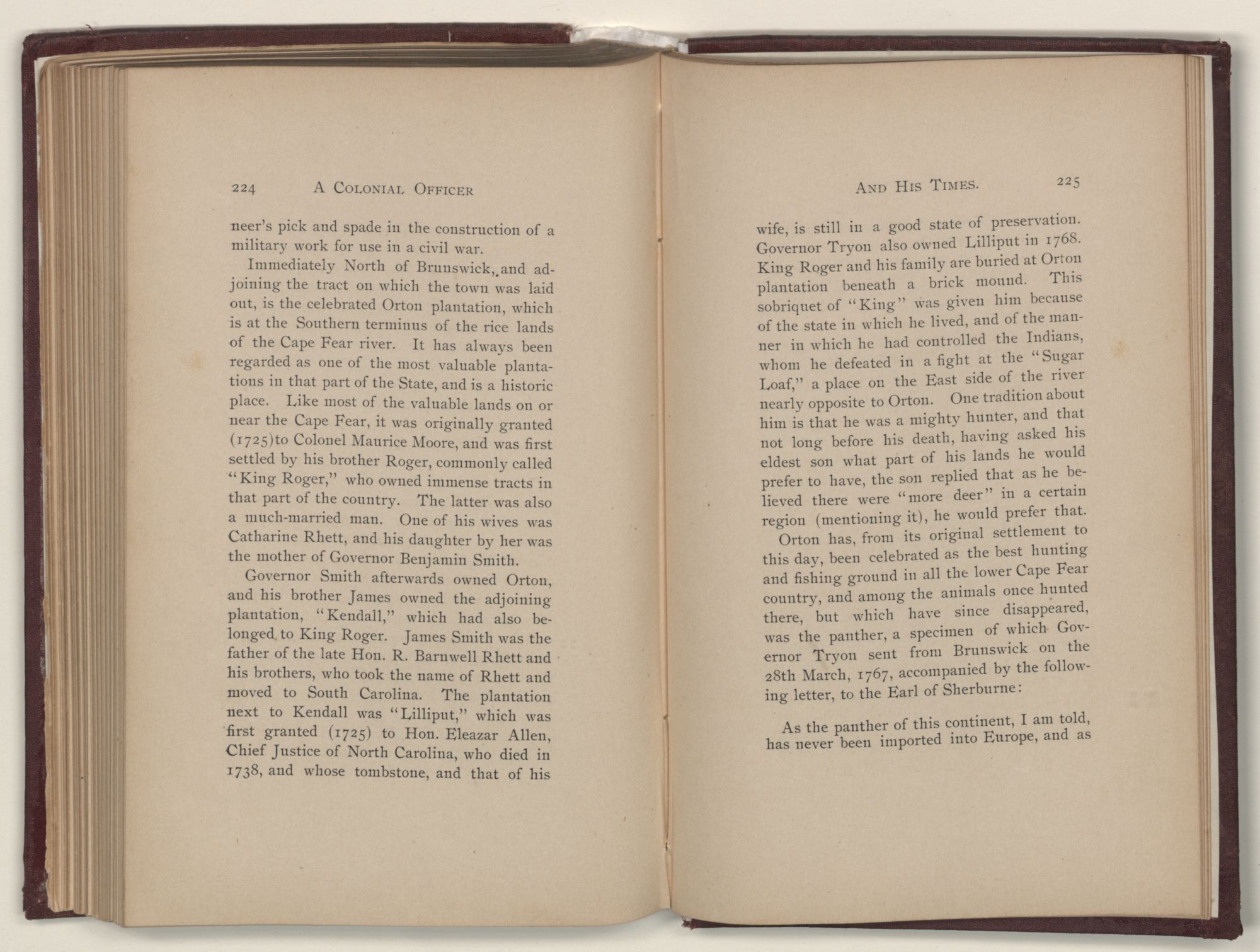 A COLONIAL OFFICER AND HIS TIMES. 1754-1773.A BIOGRAPHICAL SKETCH OF GEN. HUGH WADDELL, OF NORTH CAROLINA.WITH NOTICES OF THE FRENCH AND INDIAN WAR IN THE SOUTHERN COLONIES; THE RESISTANCE TO THE STAMP ACT IN NORTH CAROLINA (WITH COPIES OF ORIGINAL DOCUMENTS NEVER BEFORE PUBLISHED); THE REGULATORS’ WAR; AND AN HISTORICAL SKETCH OF THE FORMER TOWN OF BRUNSWICK, ON THE CAPE FEAR RIVER.BY ALFRED MOORE WADDELL.RALEIGH, N. C.:EDWARDS & BROUGHTON, Publishers.1890.