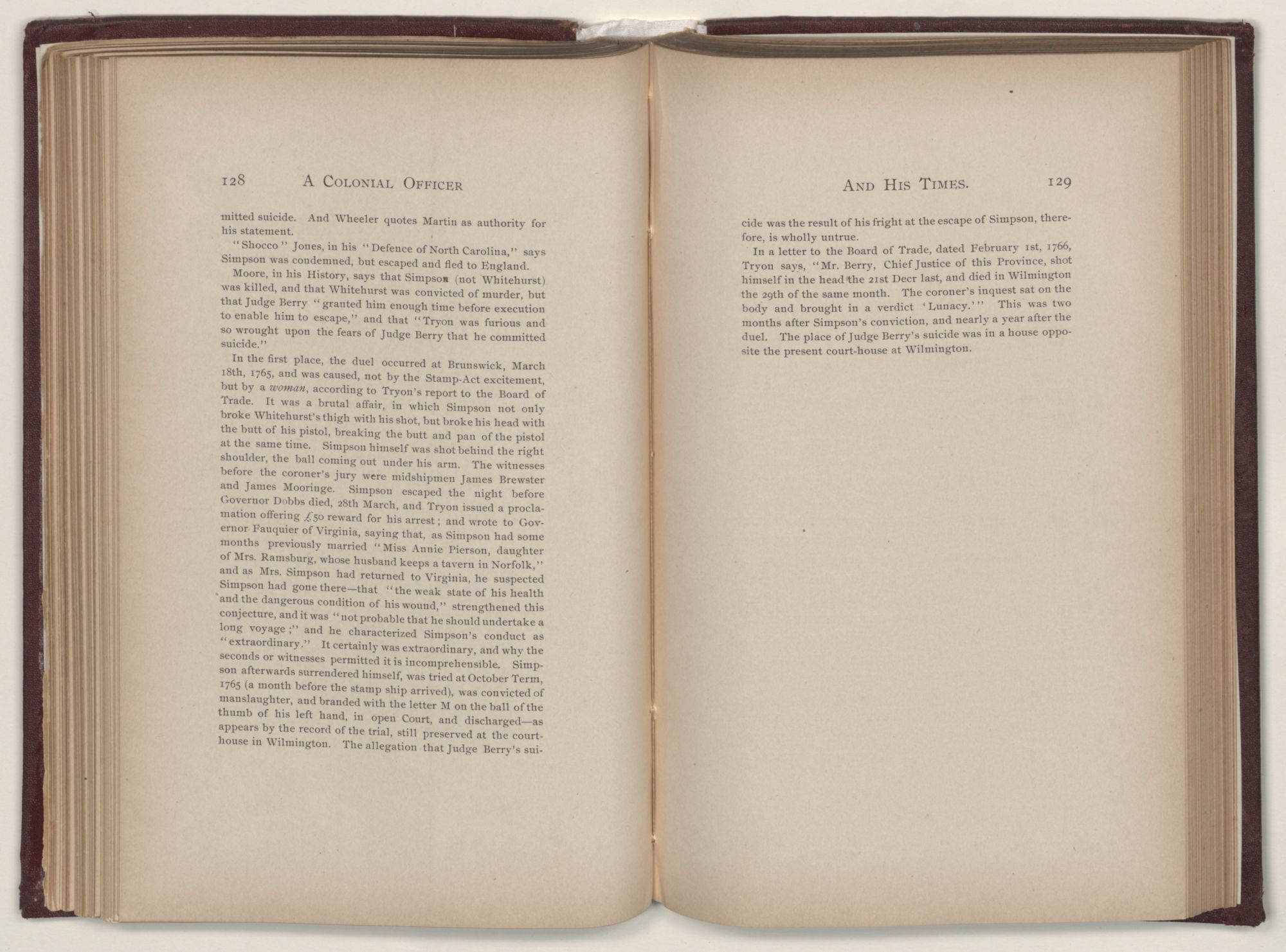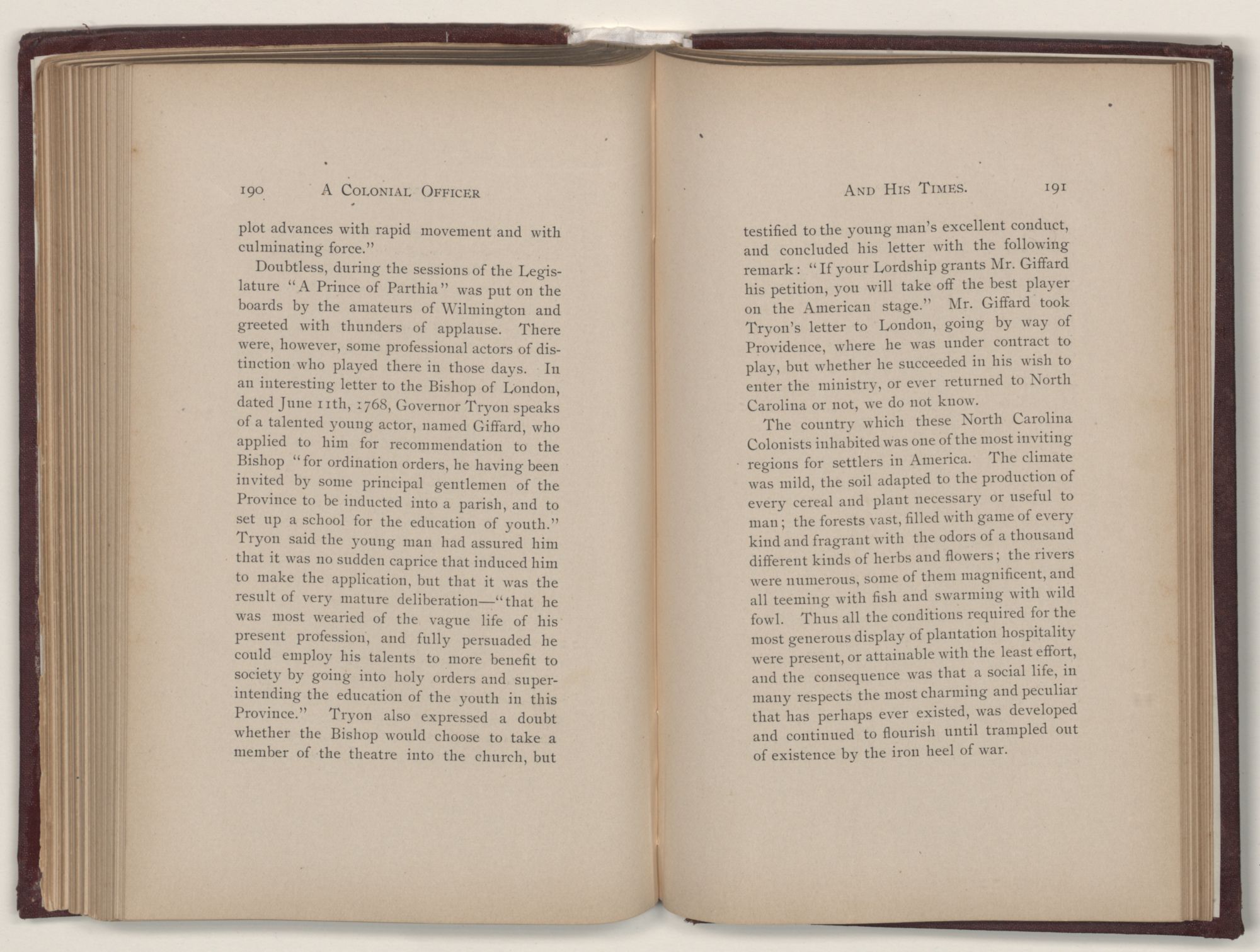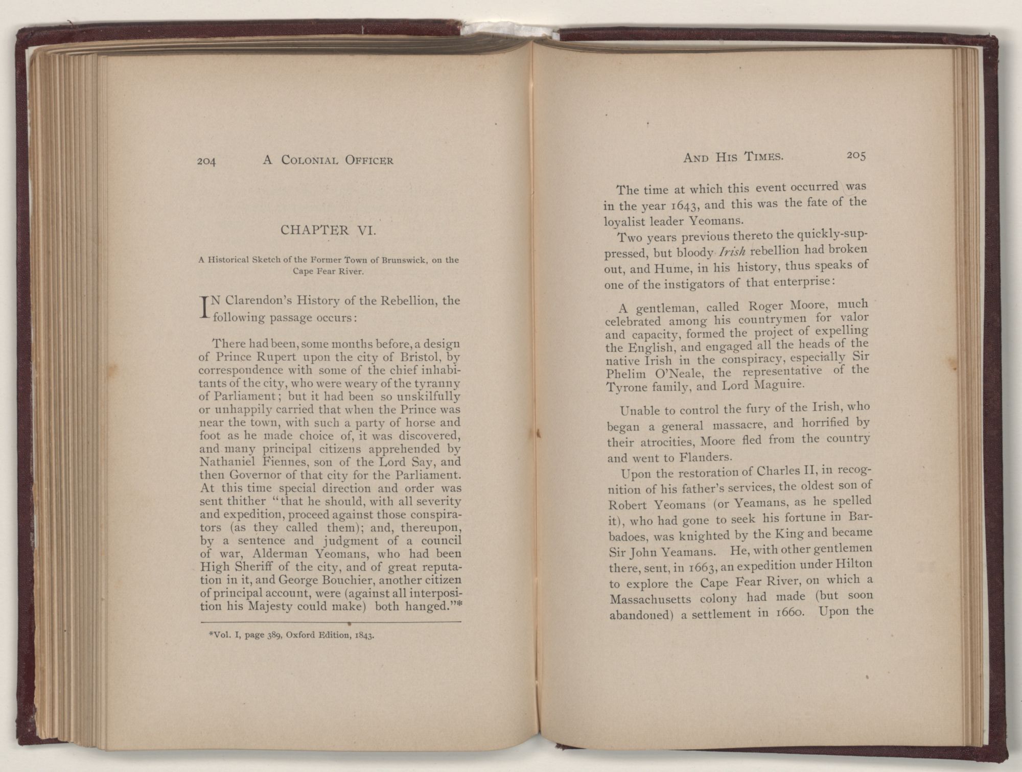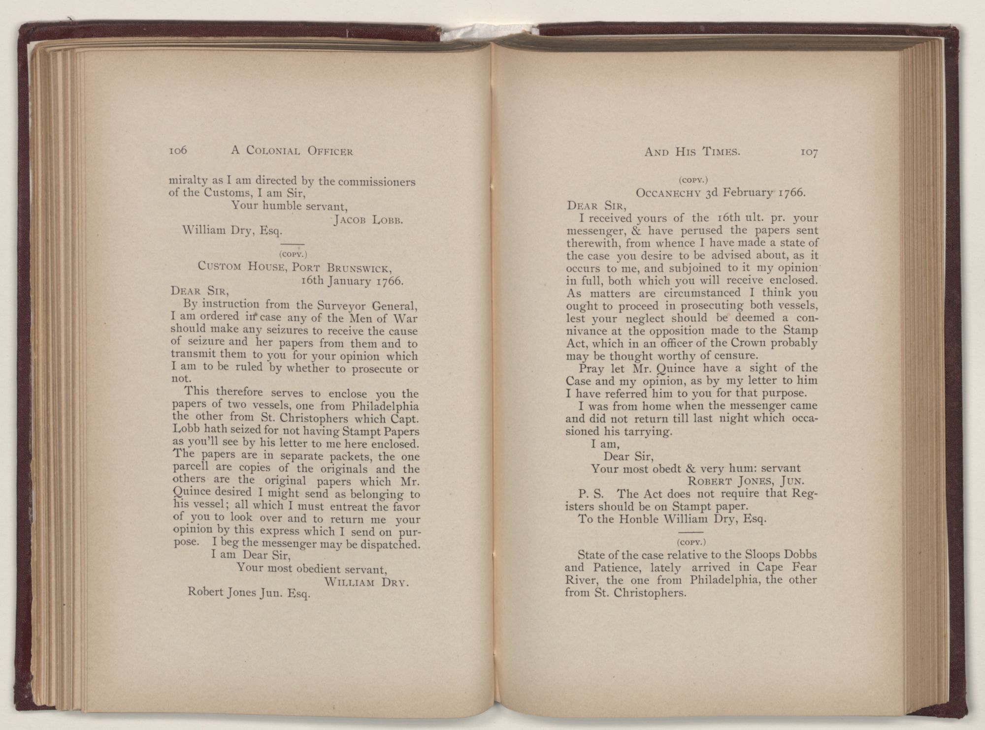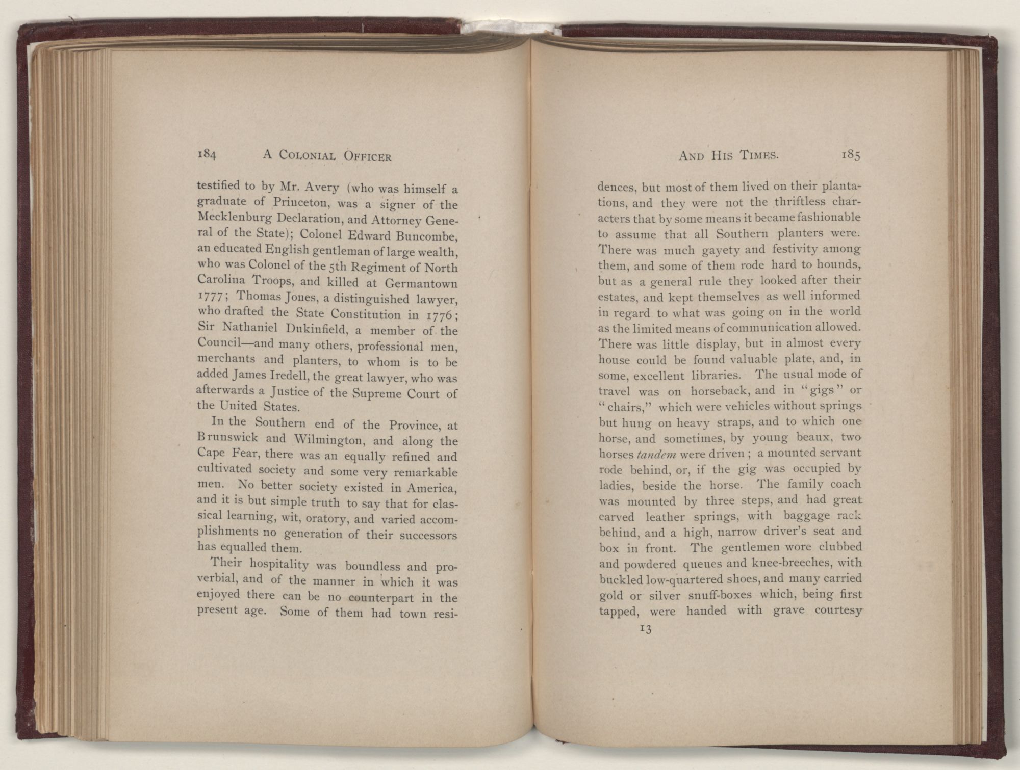 A COLONIAL OFFICER AND HIS TIMES. 1754-1773.A BIOGRAPHICAL SKETCH OF GEN. HUGH WADDELL, OF NORTH CAROLINA.WITH NOTICES OF THE FRENCH AND INDIAN WAR IN THE SOUTHERN COLONIES; THE RESISTANCE TO THE STAMP ACT IN NORTH CAROLINA (WITH COPIES OF ORIGINAL DOCUMENTS NEVER BEFORE PUBLISHED); THE REGULATORS’ WAR; AND AN HISTORICAL SKETCH OF THE FORMER TOWN OF BRUNSWICK, ON THE CAPE FEAR RIVER.BY ALFRED MOORE WADDELL.RALEIGH, N. C.:EDWARDS & BROUGHTON, Publishers.1890.