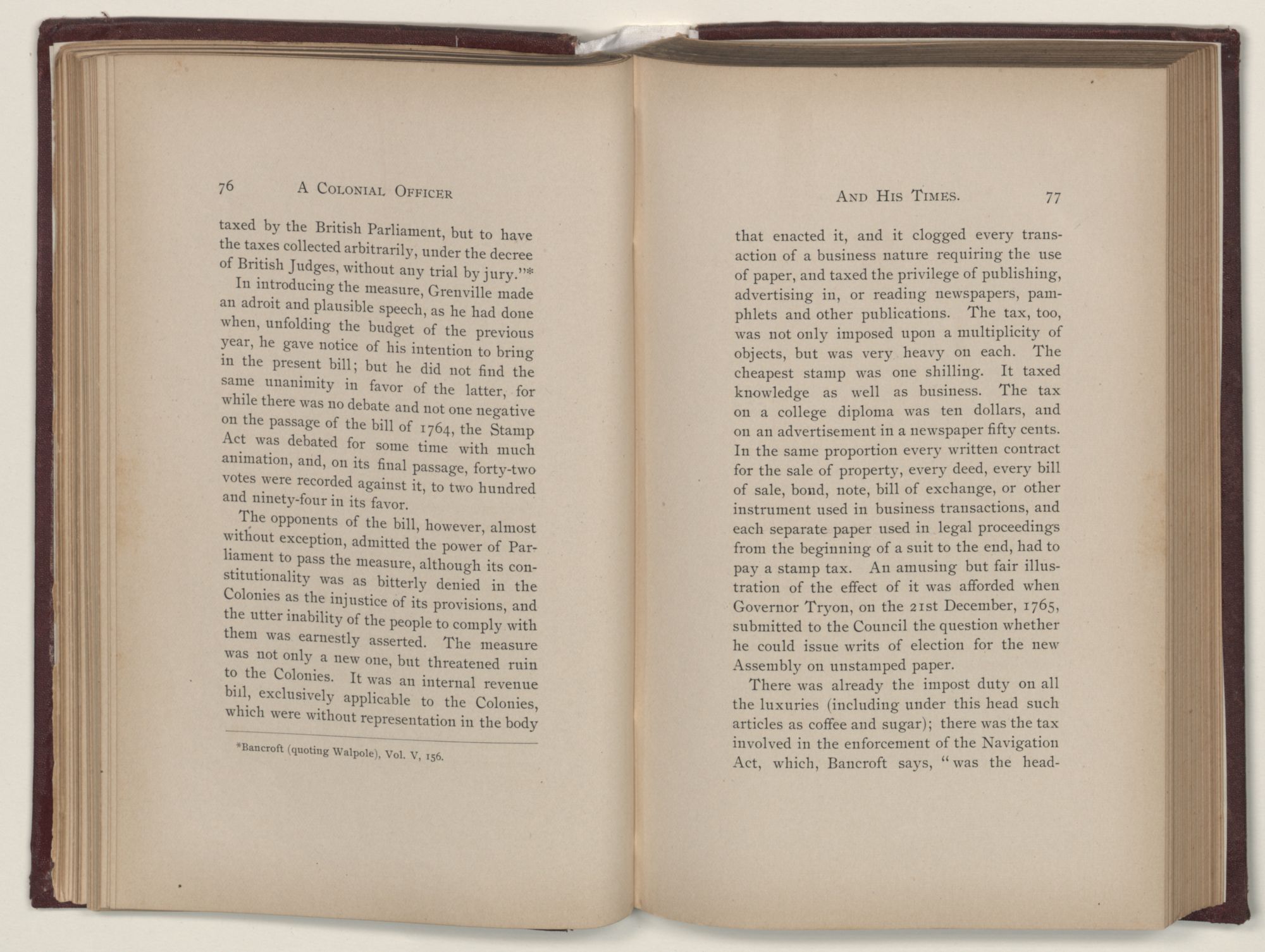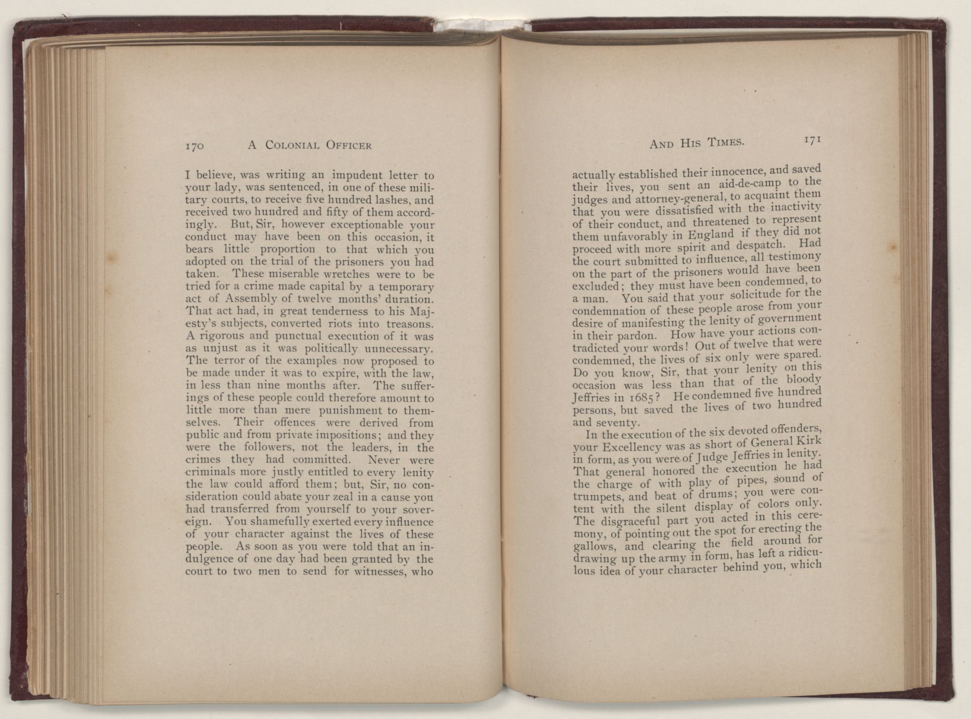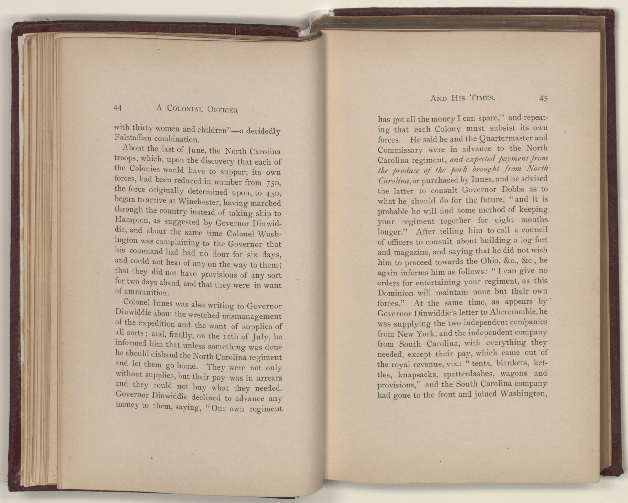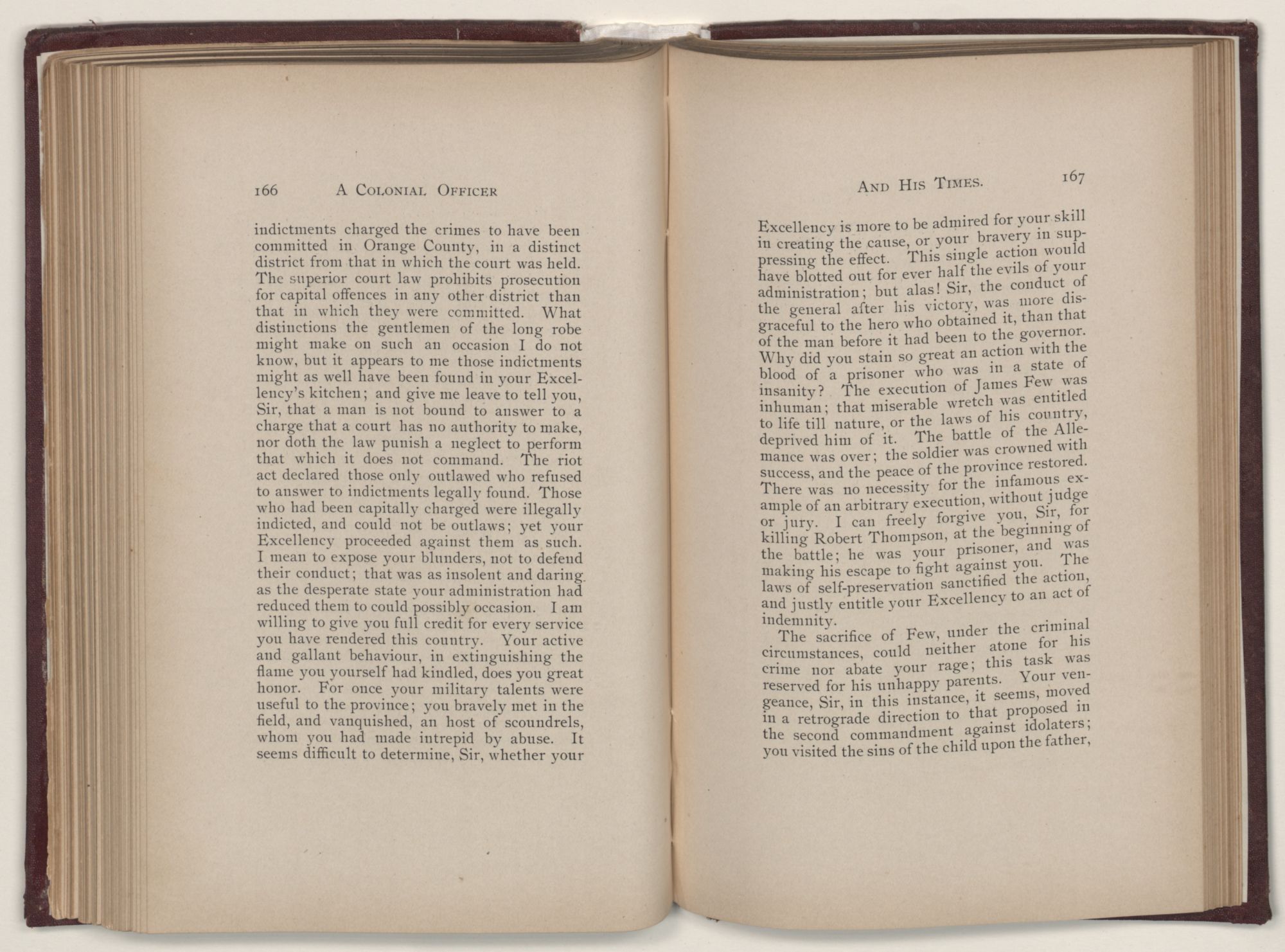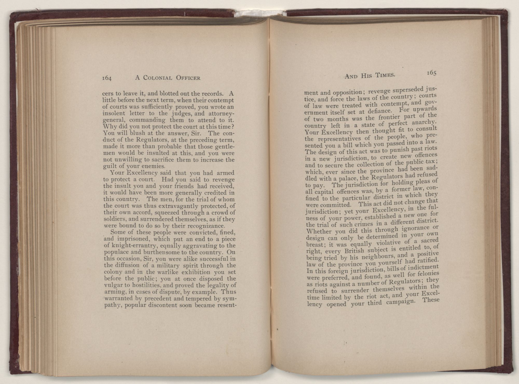A COLONIAL OFFICER AND HIS TIMES. 1754-1773.A BIOGRAPHICAL SKETCH OF GEN. HUGH WADDELL, OF NORTH CAROLINA.WITH NOTICES OF THE FRENCH AND INDIAN WAR IN THE SOUTHERN COLONIES; THE RESISTANCE TO THE STAMP ACT IN NORTH CAROLINA (WITH COPIES OF ORIGINAL DOCUMENTS NEVER BEFORE PUBLISHED); THE REGULATORS’ WAR; AND AN HISTORICAL SKETCH OF THE FORMER TOWN OF BRUNSWICK, ON THE CAPE FEAR RIVER.BY ALFRED MOORE WADDELL.RALEIGH, N. C.:EDWARDS & BROUGHTON, Publishers.1890.