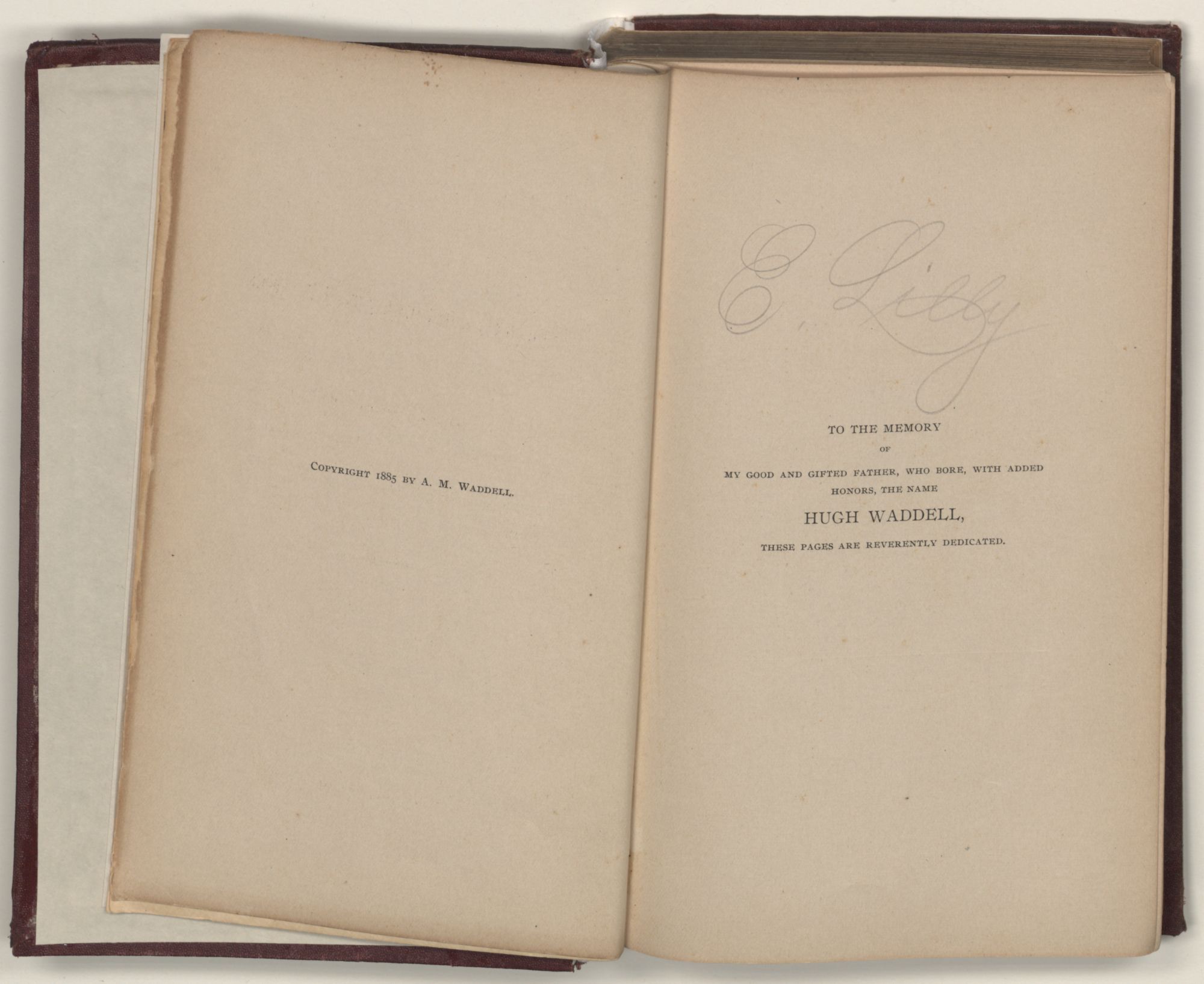 TO THE MEMORY OF MY GOOD AND GIFTED FATHER, WHO BORE, WITH ADDED HONORS, THE NAME HUGH WADDELL, THESE PAGES ARE REVERENTLY DEDICATED.