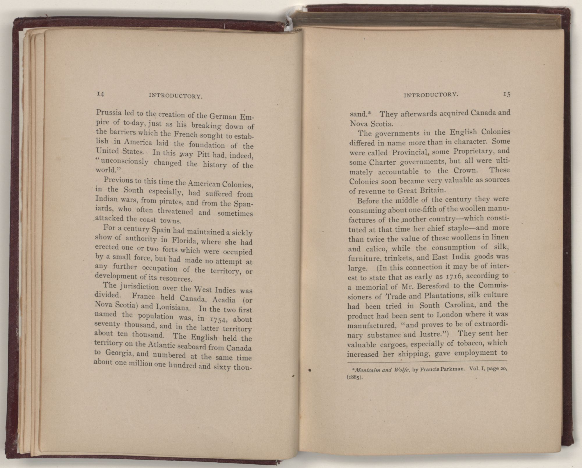 *Montcalm and Wolfe, by Francis Parkman. Vol. I, page 20, (1885).