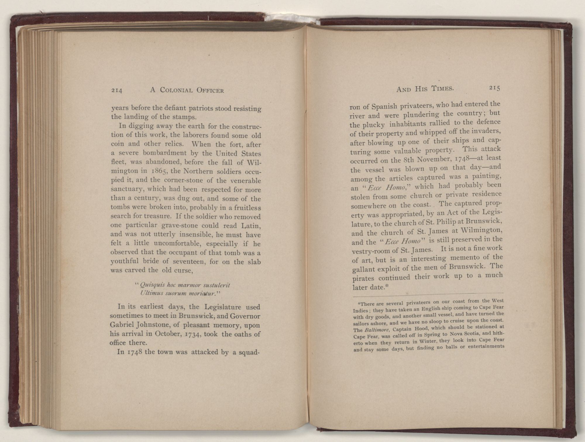 Memorable for some of the most dramatic scenes in the early history of North Carolina as the region around Brunswick was—being the theatre of the first open armed resistance to the Stamp Act on the 28th November, 1765, and not far from the spot where the first victory of the Revolution crowned the American arms at Moore's Creek Bridge on the 27th