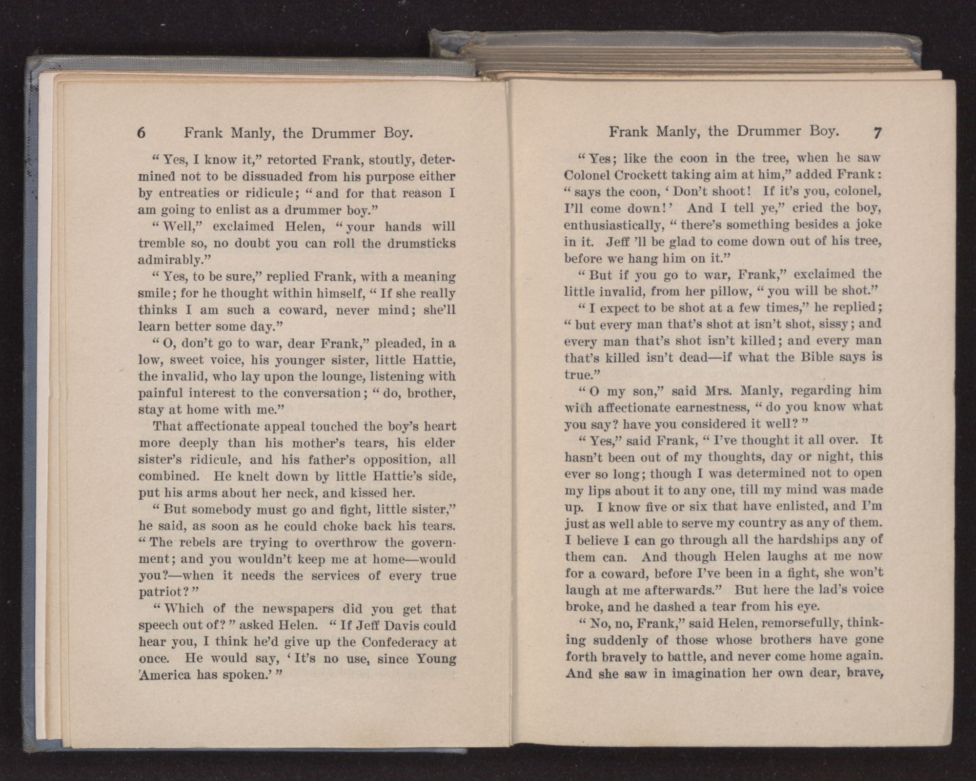 “But if you go to war, Frank,” exclaimed the little invalid, from her pillow, “you will be shot.”