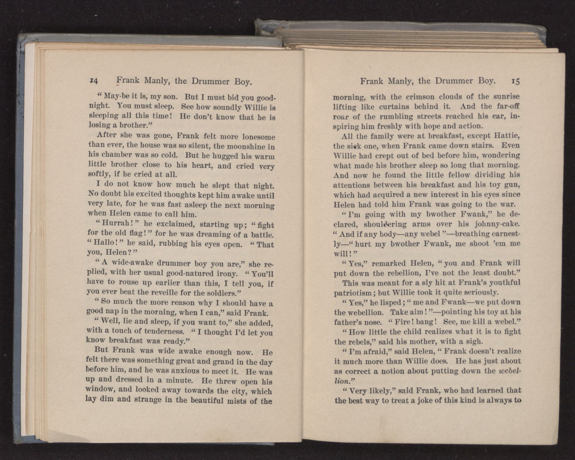 “Which of the newspapers did you get that speech out of?” asked Helen. “If Jeff Davis could hear you, I think he'd give up the Confederacy at once. He would say, ‘It's no use, since Young America has spoken.’ ”
