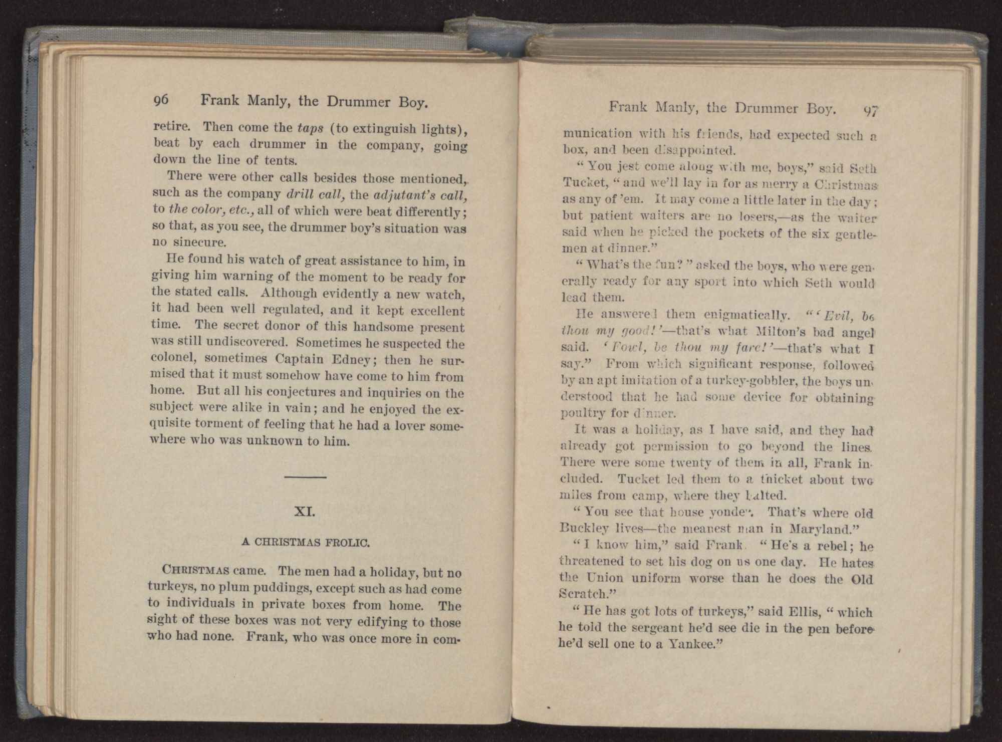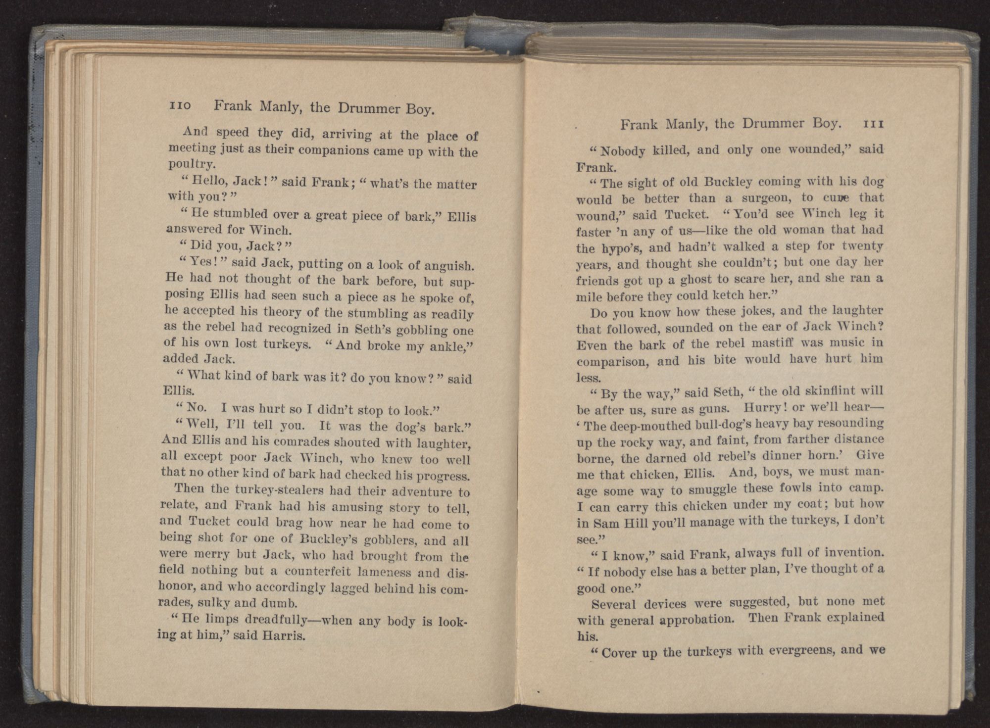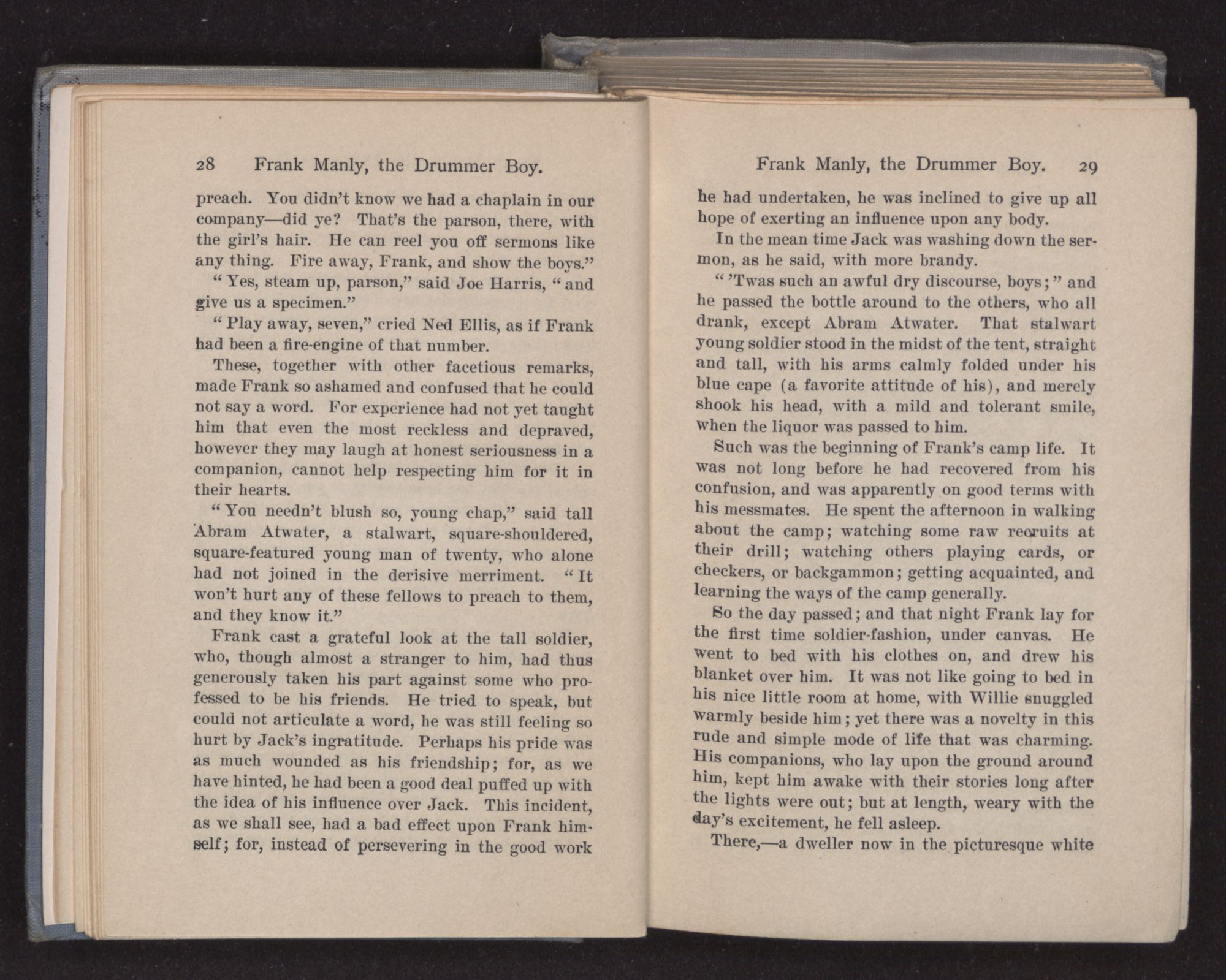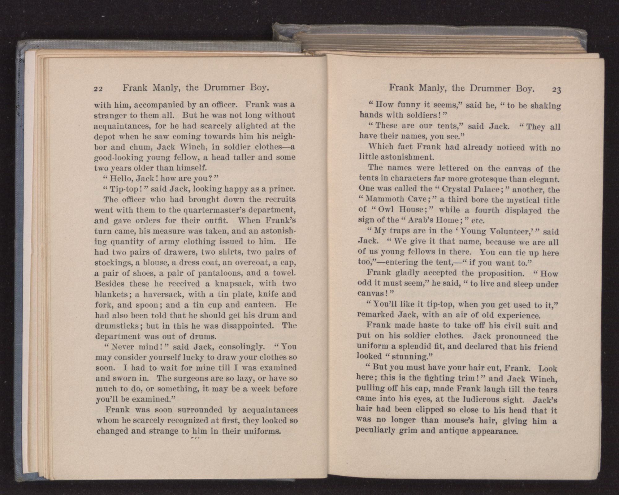 ‘Jack Winch,’ and all the other characters are meant for. I have read ever so many pages to ‘Seth’ himself, and he has laughed as heartily as any of us over his own oddities. We all wonder how you could have written the story, giving all the circumstances, and even the conversations that took place, so correctly; but I remember, when I was at your house, you kept me talking, and wrote down nearly every thing I said; besides which, I find there was a good deal more in my journal and letters than I supposed, when I consented to let you have them and make what use of them you pleased. Little did I think then, that ever such a book as the ‘Drummer Boy’ could be made out of them.