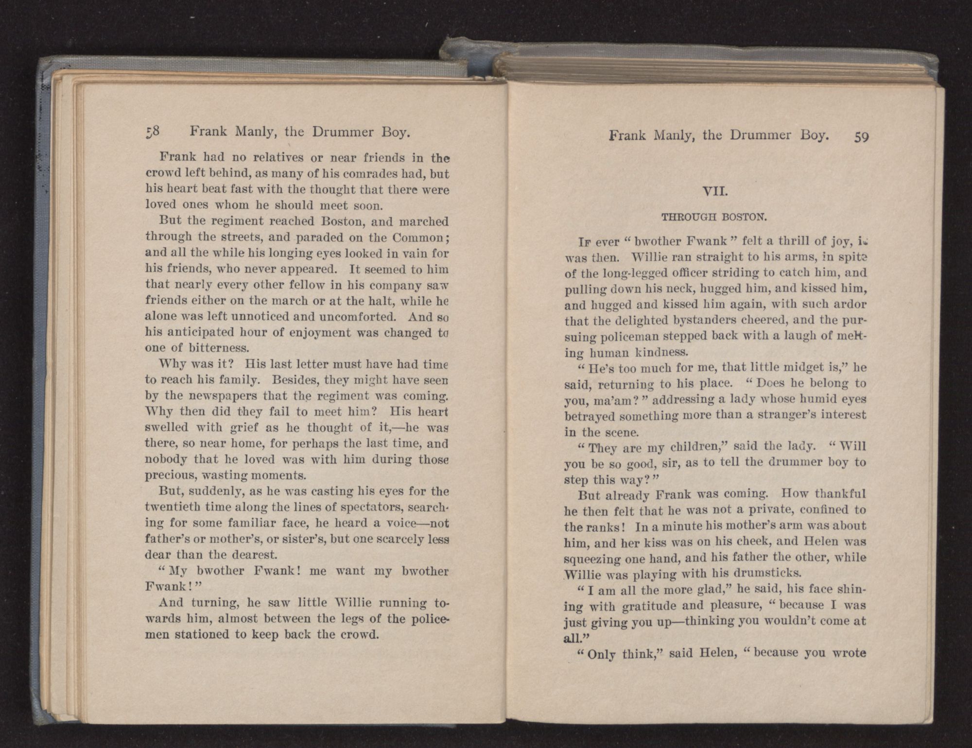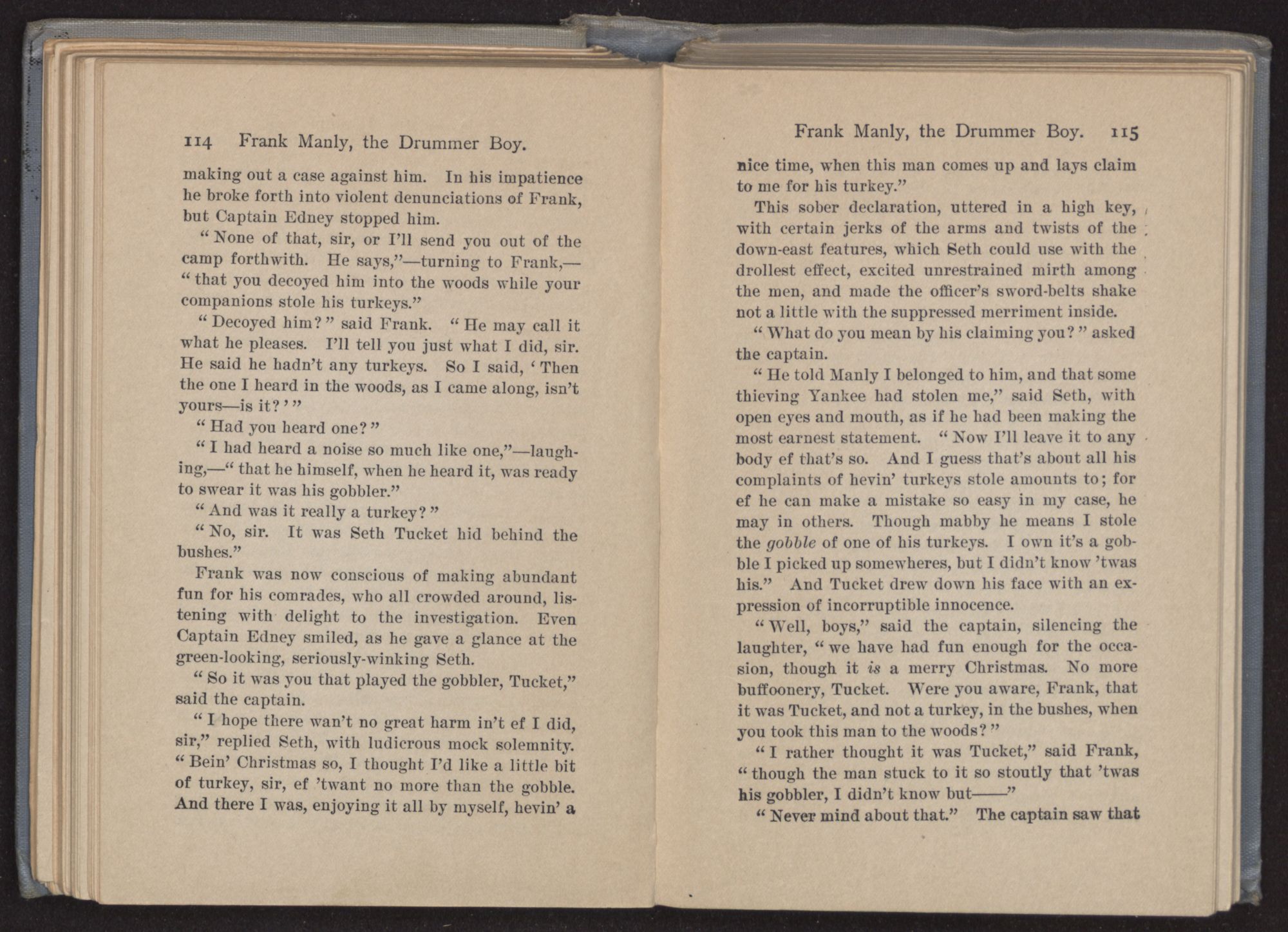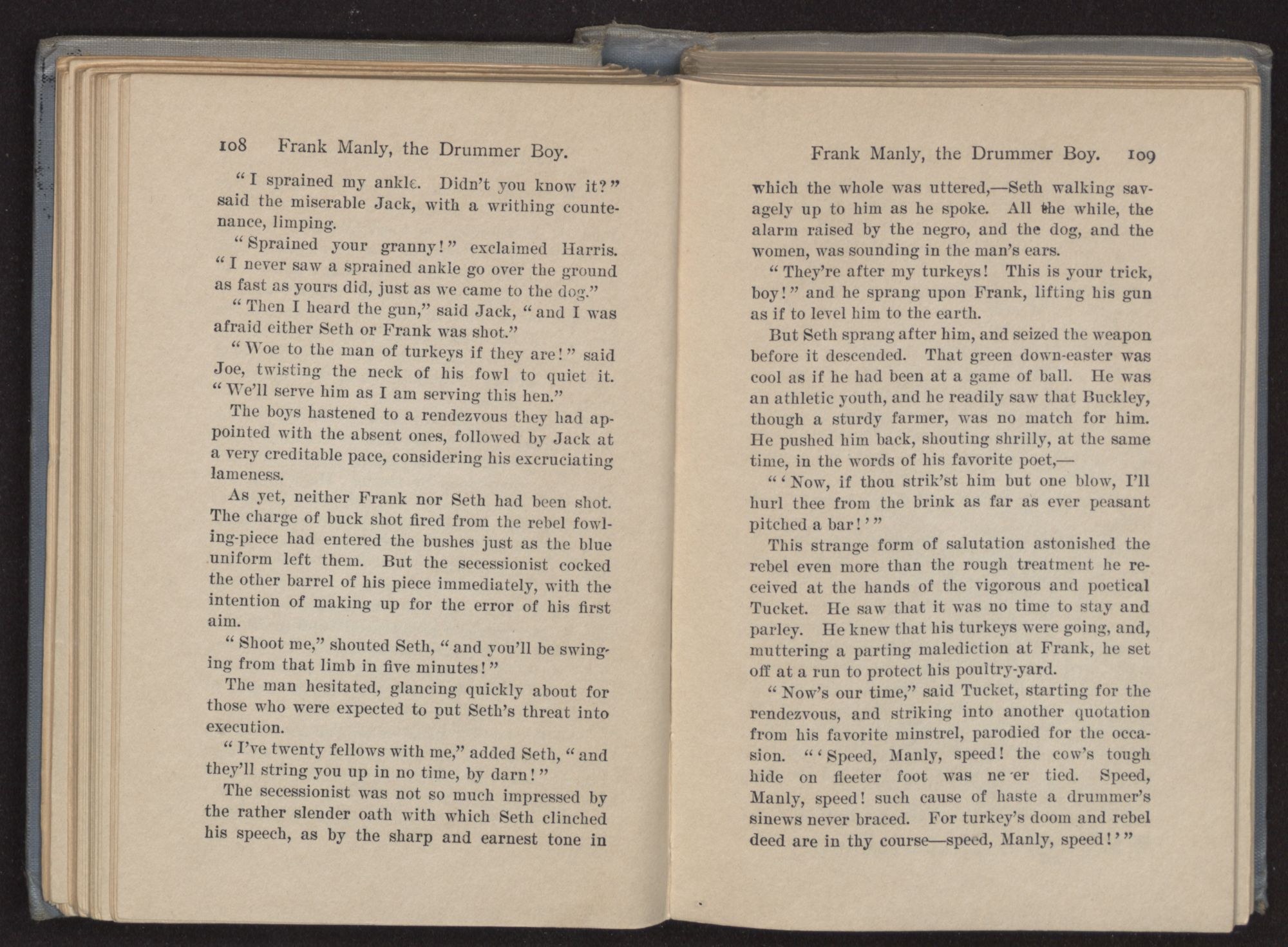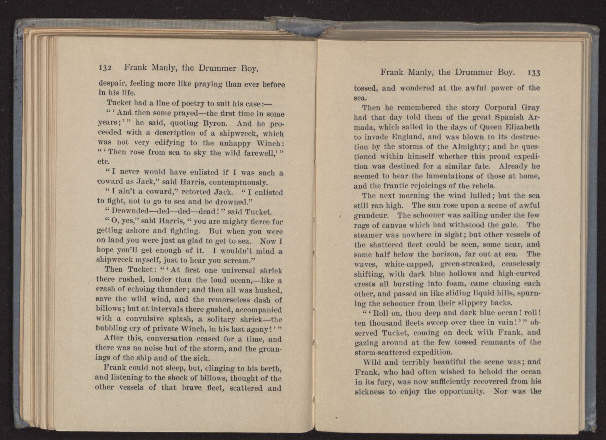 ‘Jack Winch,’ and all the other characters are meant for. I have read ever so many pages to ‘Seth’ himself, and he has laughed as heartily as any of us over his own oddities. We all wonder how you could have written the story, giving all the circumstances, and even the conversations that took place, so correctly; but I remember, when I was at your house, you kept me talking, and wrote down nearly every thing I said; besides which, I find there was a good deal more in my journal and letters than I supposed, when I consented to let you have them and make what use of them you pleased. Little did I think then, that ever such a book as the ‘Drummer Boy’ could be made out of them.