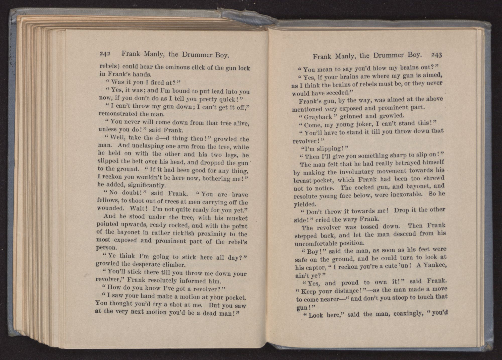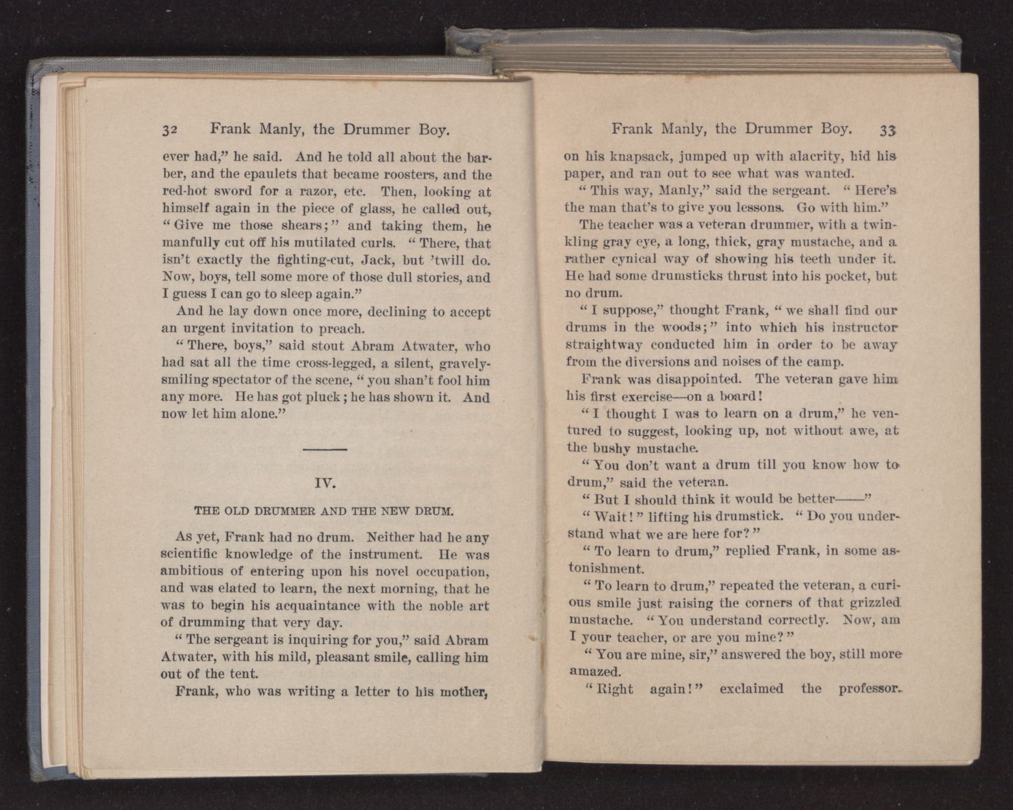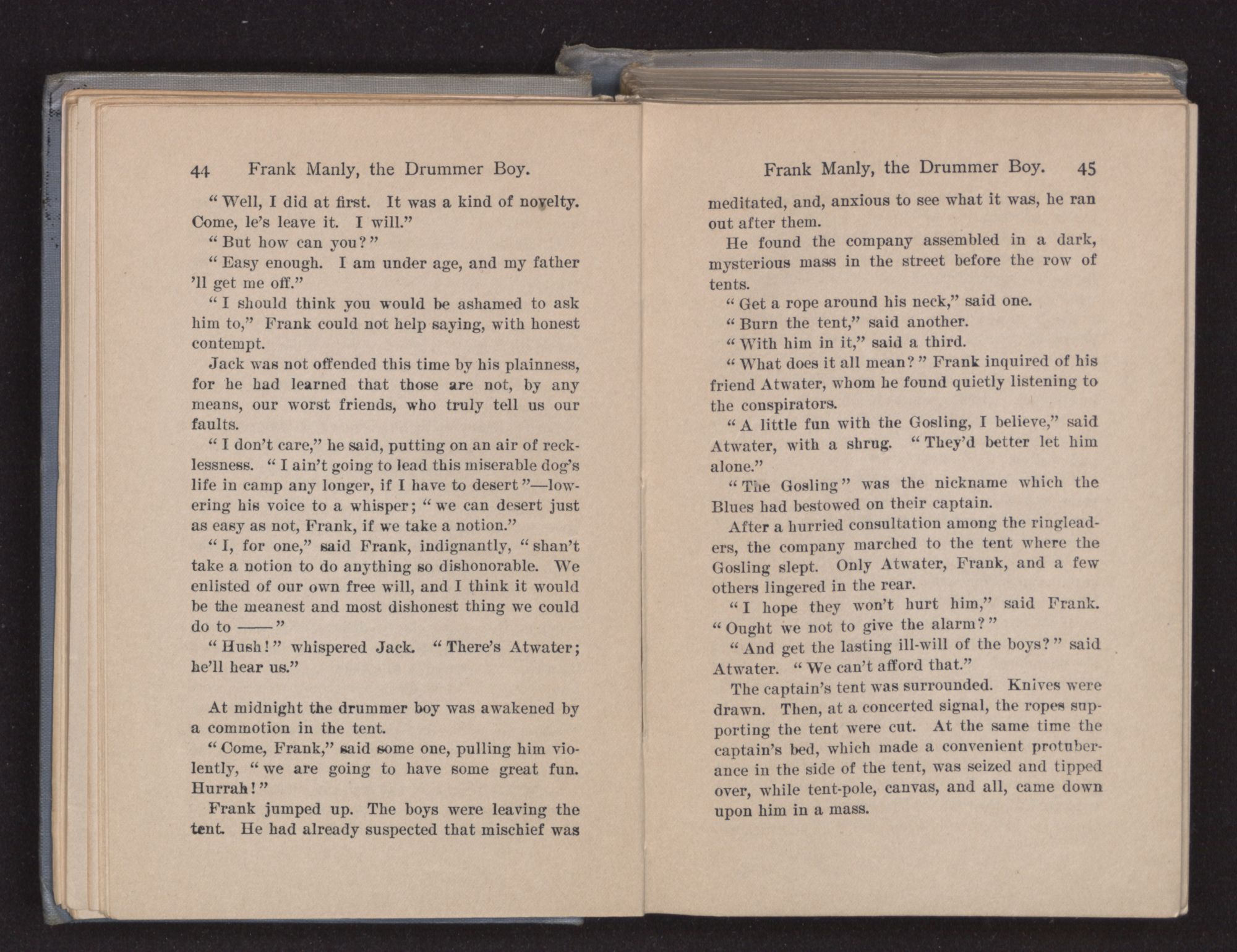 “Yes, I know it,” retorted Frank, stoutly, determined not to be dissuaded from his purpose either by entreaties or ridicule; “and for that reason I am going to enlist as a drummer boy.”