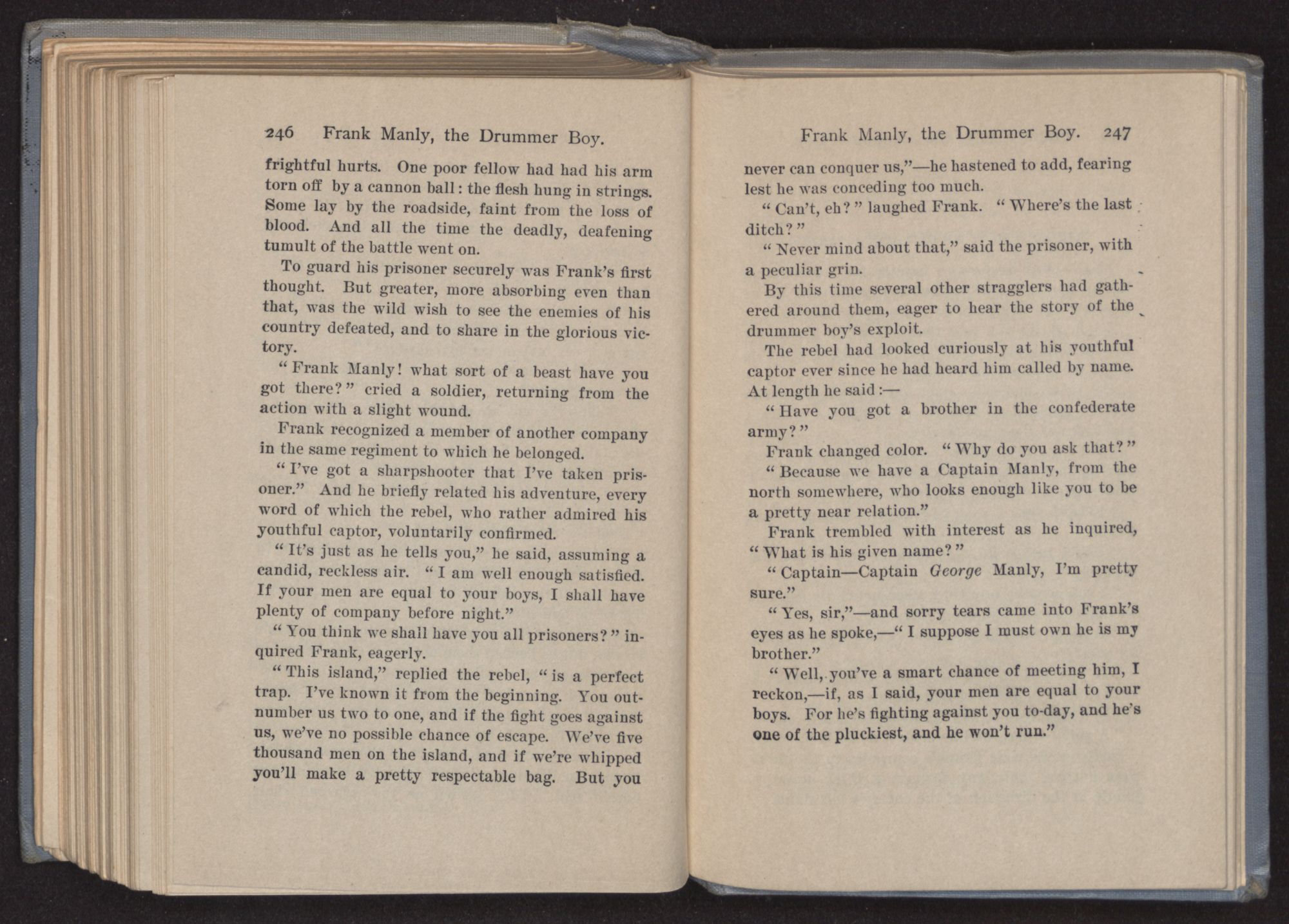 “If I've a brother enlisted on the wrong side,” said Frank, “so much the more reason that I should enlist on the right side. And I am not so young but that I can be doing something for my country, and something for you here at home, at the same time. If I volunteer, you will be allowed state aid, and I mean to send home all my pay, to the last dollar. I wish you would tell me, father, that I can have your consent.”