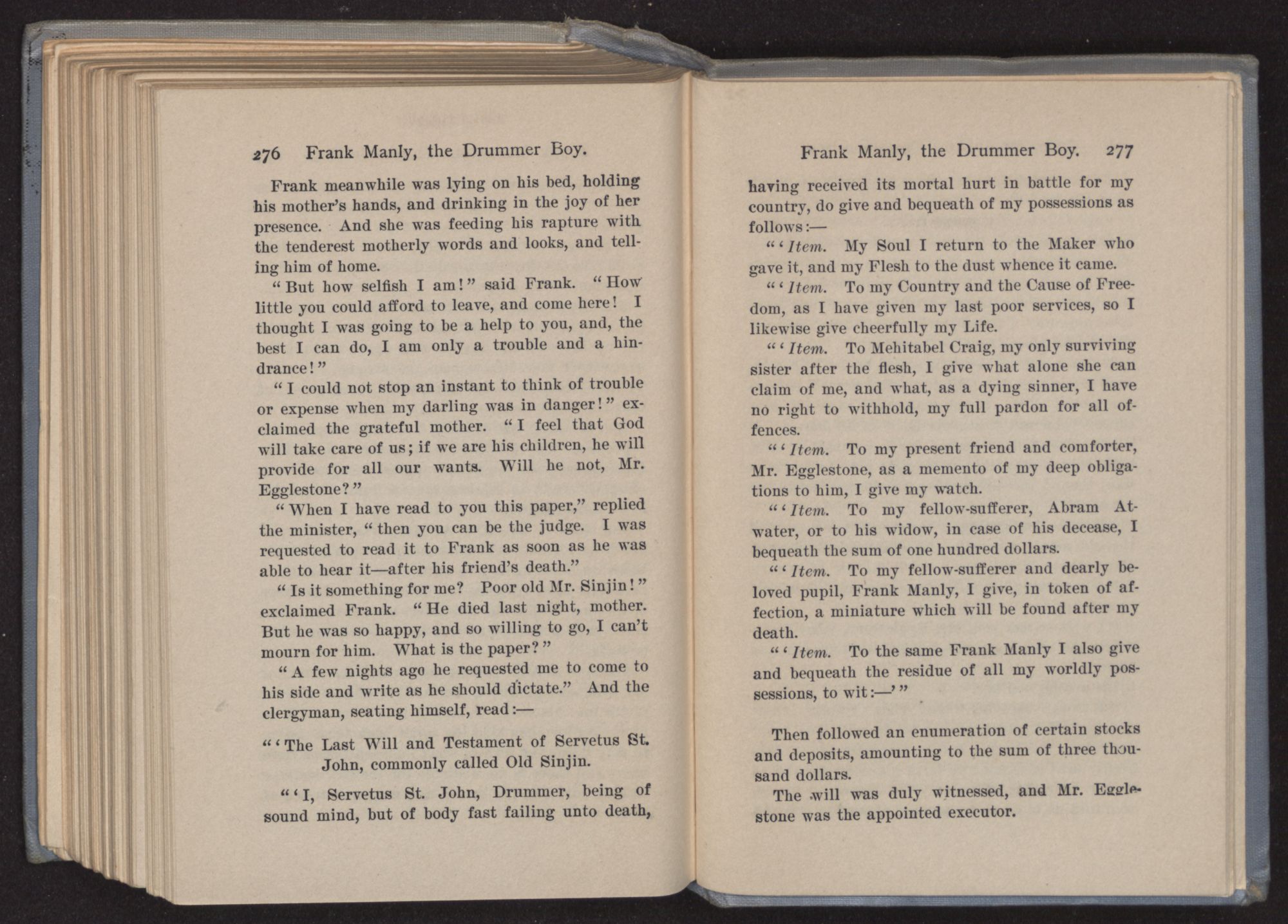 “When I have read to you this paper,” replied the minister, “then you can be the judge. I was requested to read it to Frank as soon as he was able to hear it—after his friend's death.”