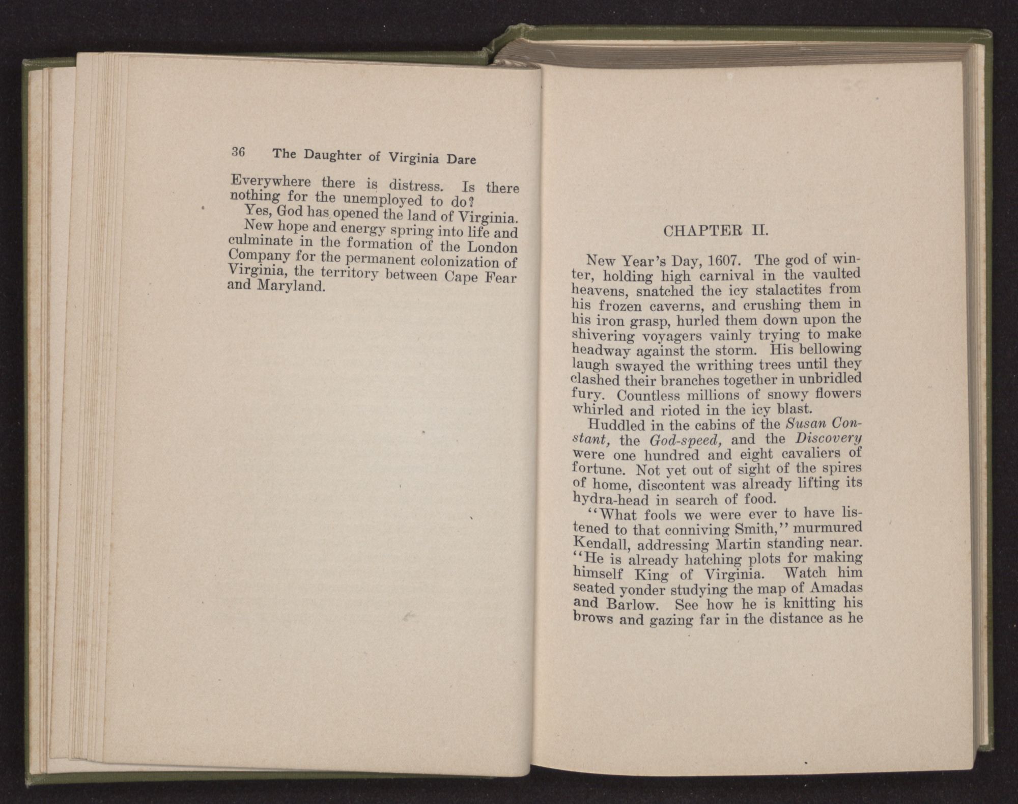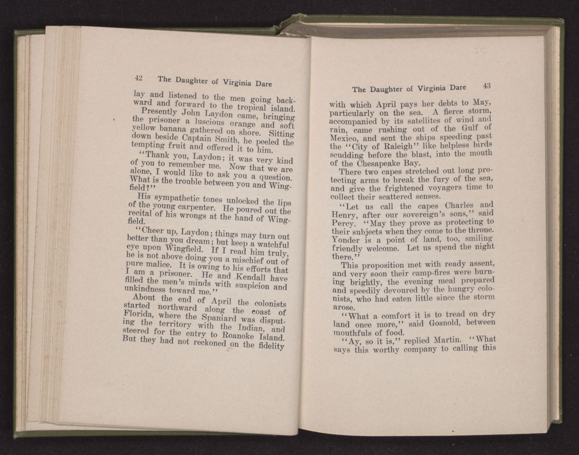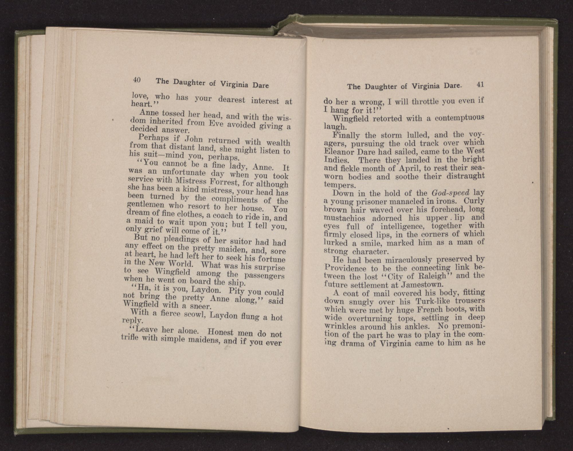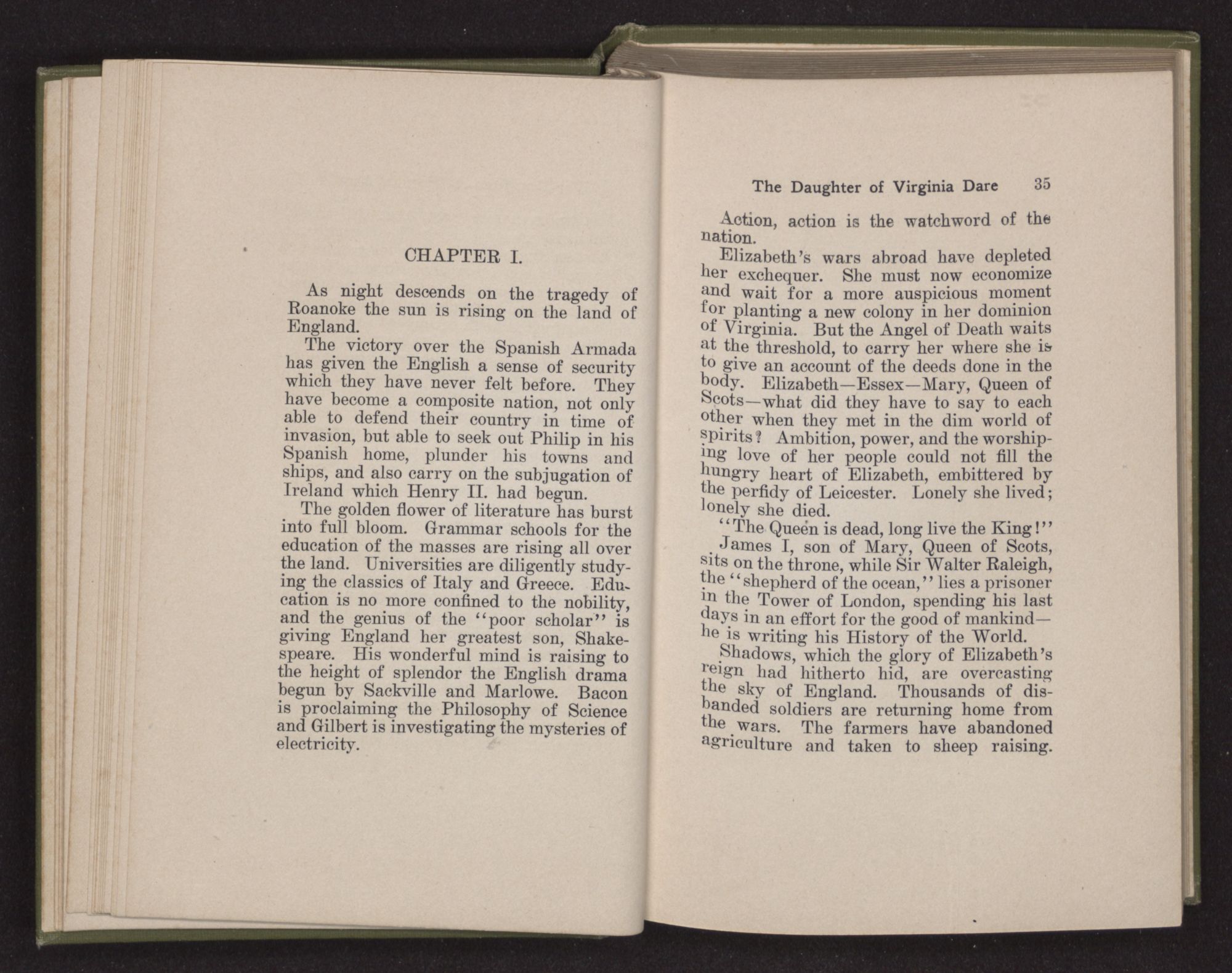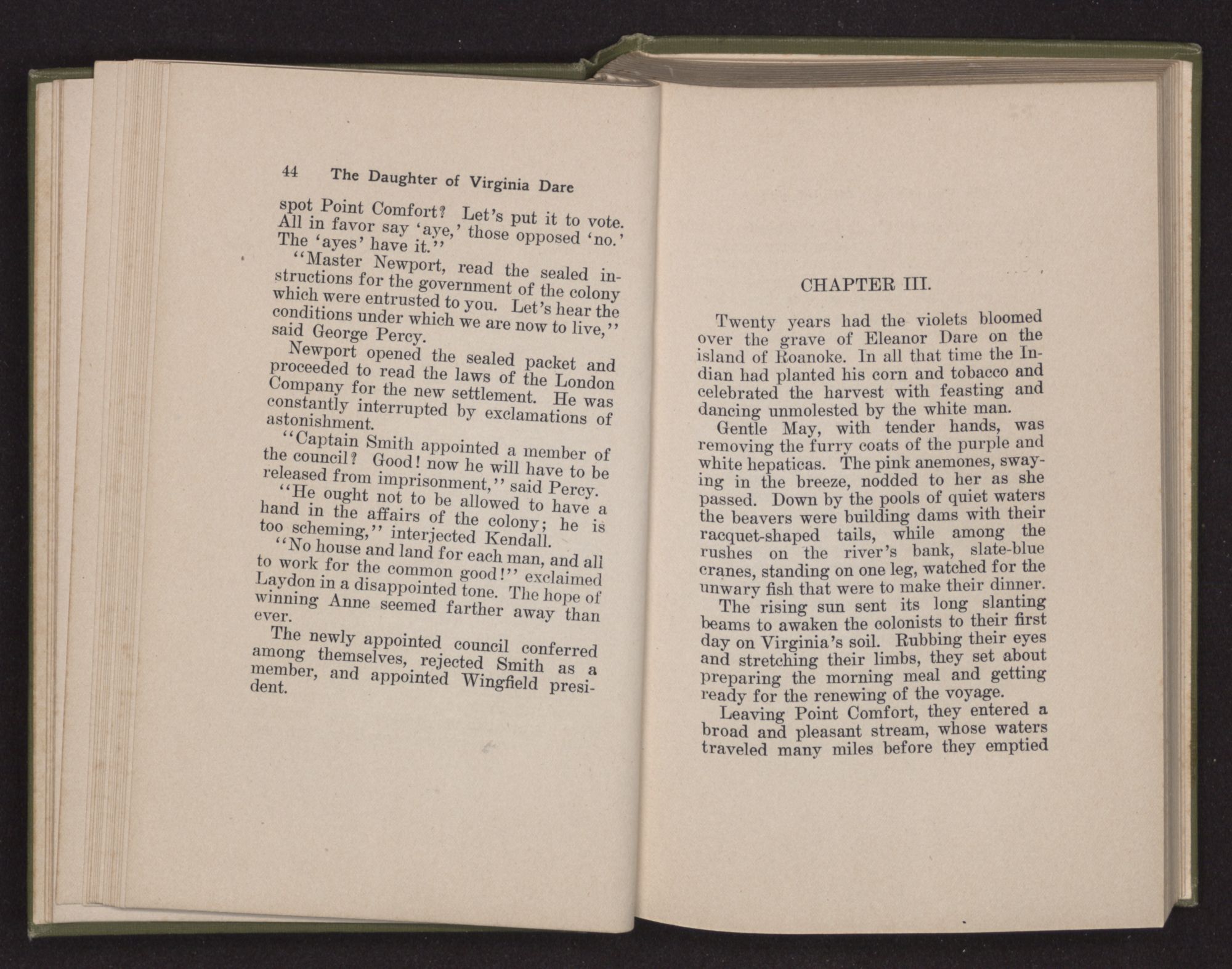 “How hard it is to bid farewell to home and friends and turn my face to this unknown land,” said Eleanor Dare to herself as she stood on the deck of the Admiral. “There is a strange fear welling up in my heart as if some unknown shadow were falling upon us.