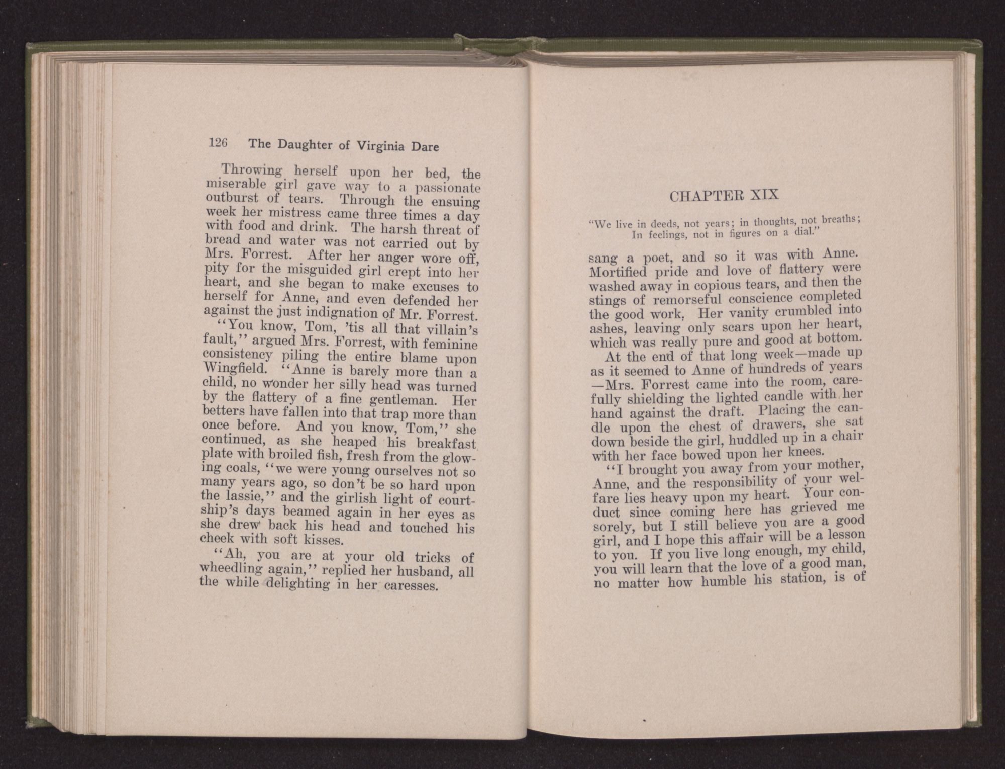 Night had put on her robe of black velvet and the stars had embroidered it in arabesques of silver, when Eleanor Dare laid her head on her pillow and drew Virginia to her breast.