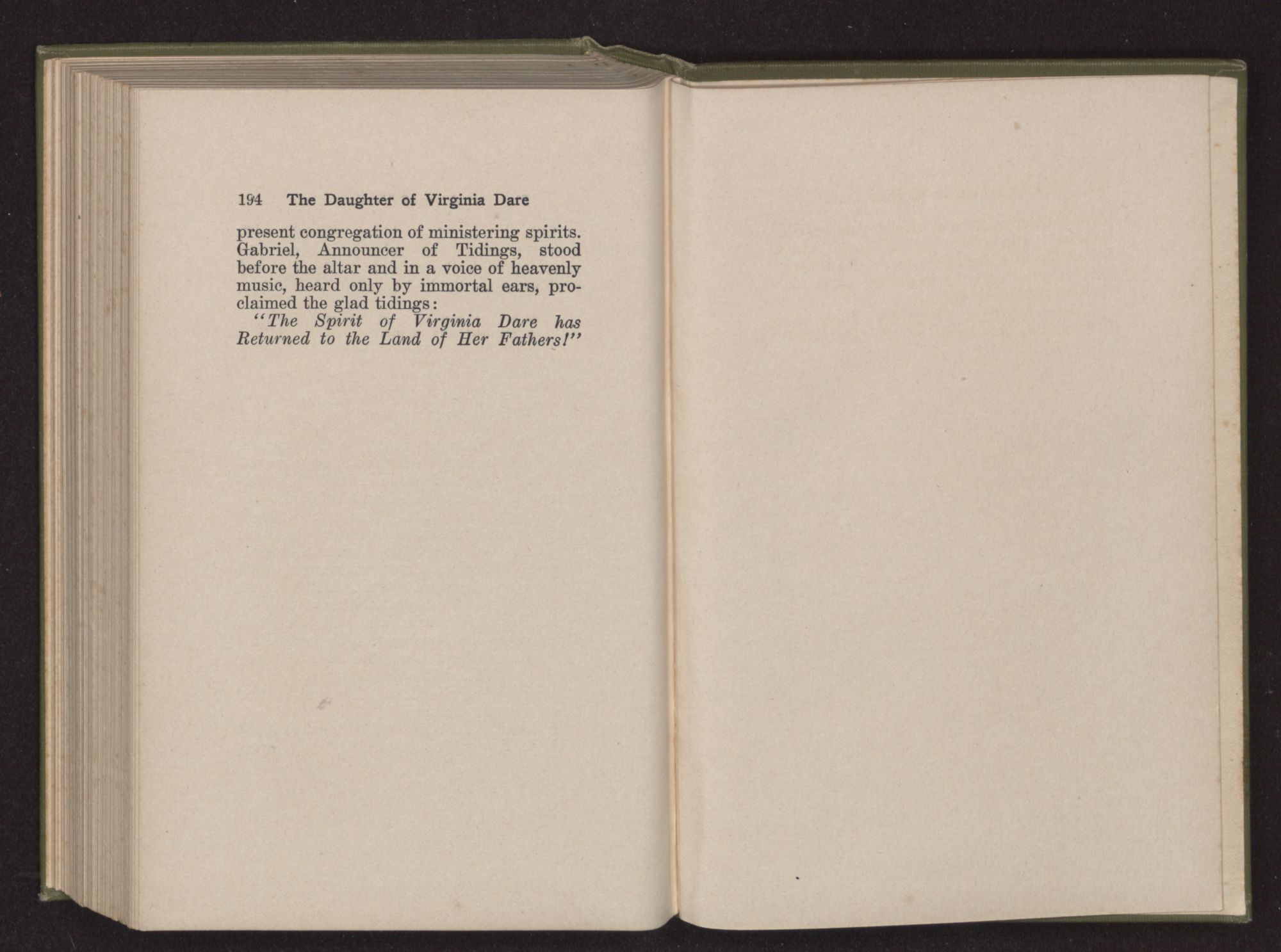 “The Spirit of Virginia Dare has Returned to the Land of Her Fathers!”