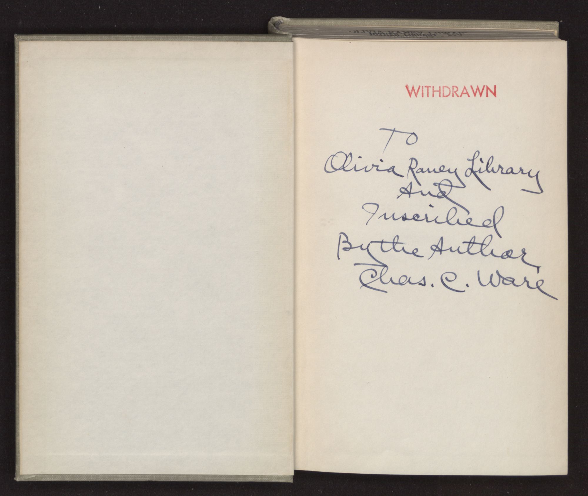 With the retirement of many whose life span of service covered the years of the college history, and the passing from the scene of many trustees and devoted friends whose firsthand knowledge of the events of the years would go with their passing, the Board of Trustees recognized the need for a factual record and authorized this history. None is better qualified than Charles Crossfield Ware to make such a record. To this task he set himself, bringing all his resources of historical interest and study.