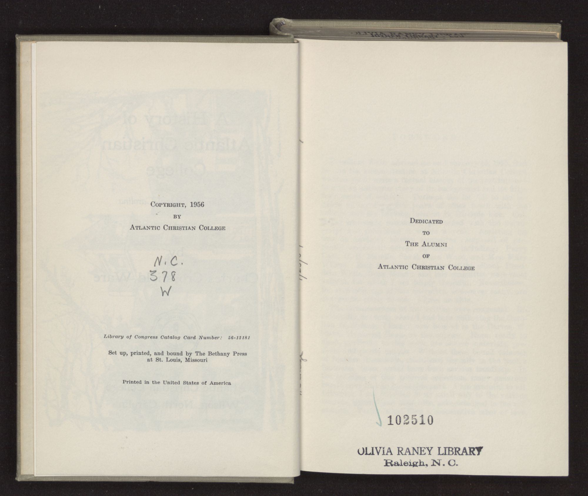 COPYRIGHT, 1956 BY ATLANTIC CHRISTIAN COLLEGE