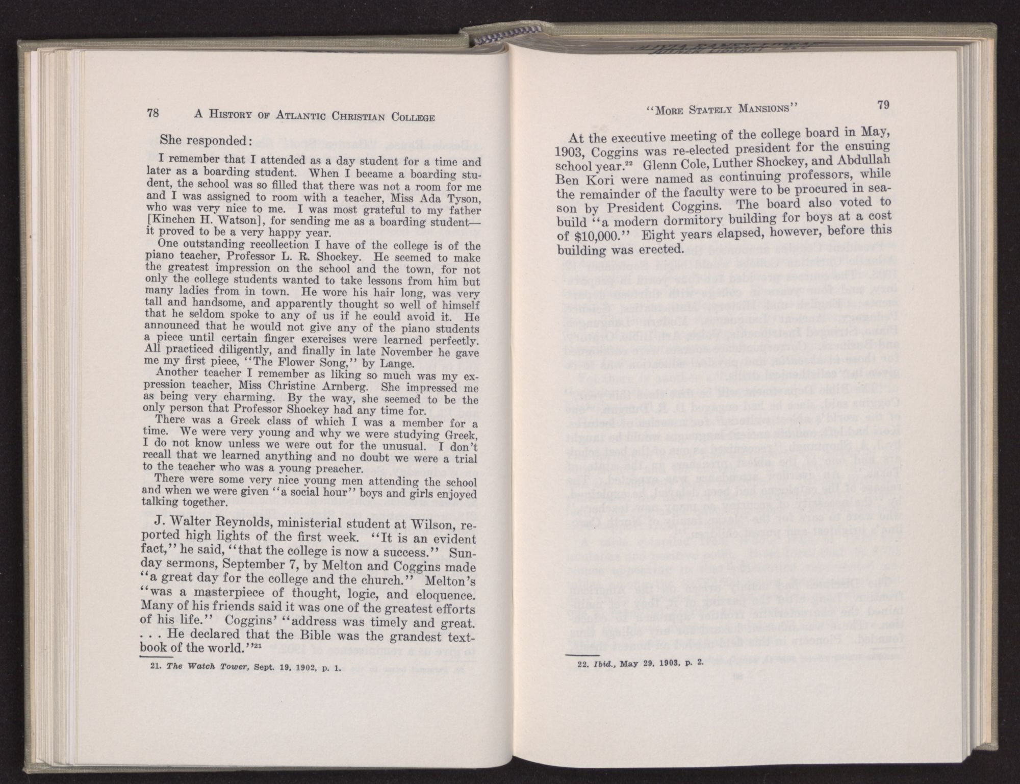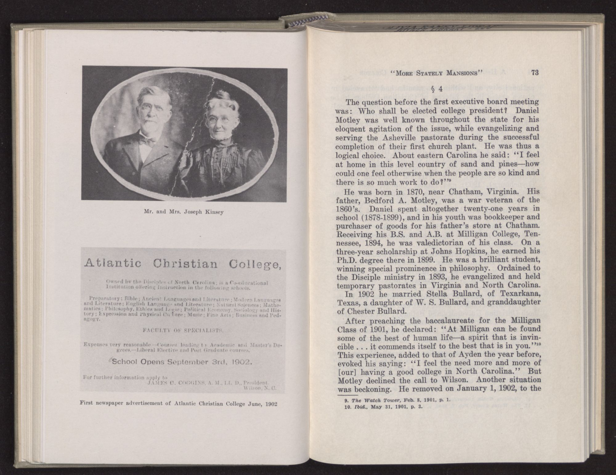 In the pages to follow is the story of Atlantic Christian College by one who loved and cherished its growth.