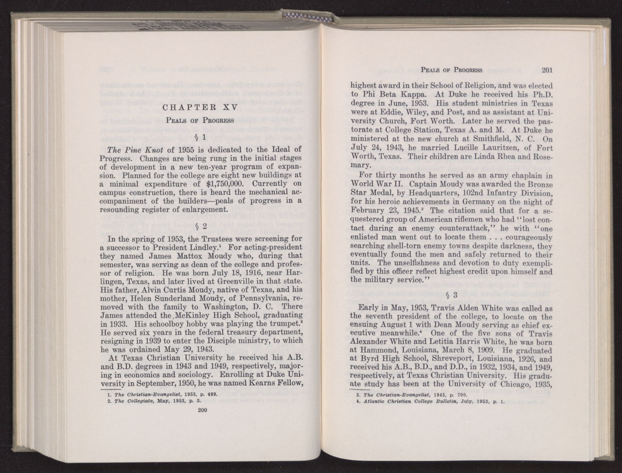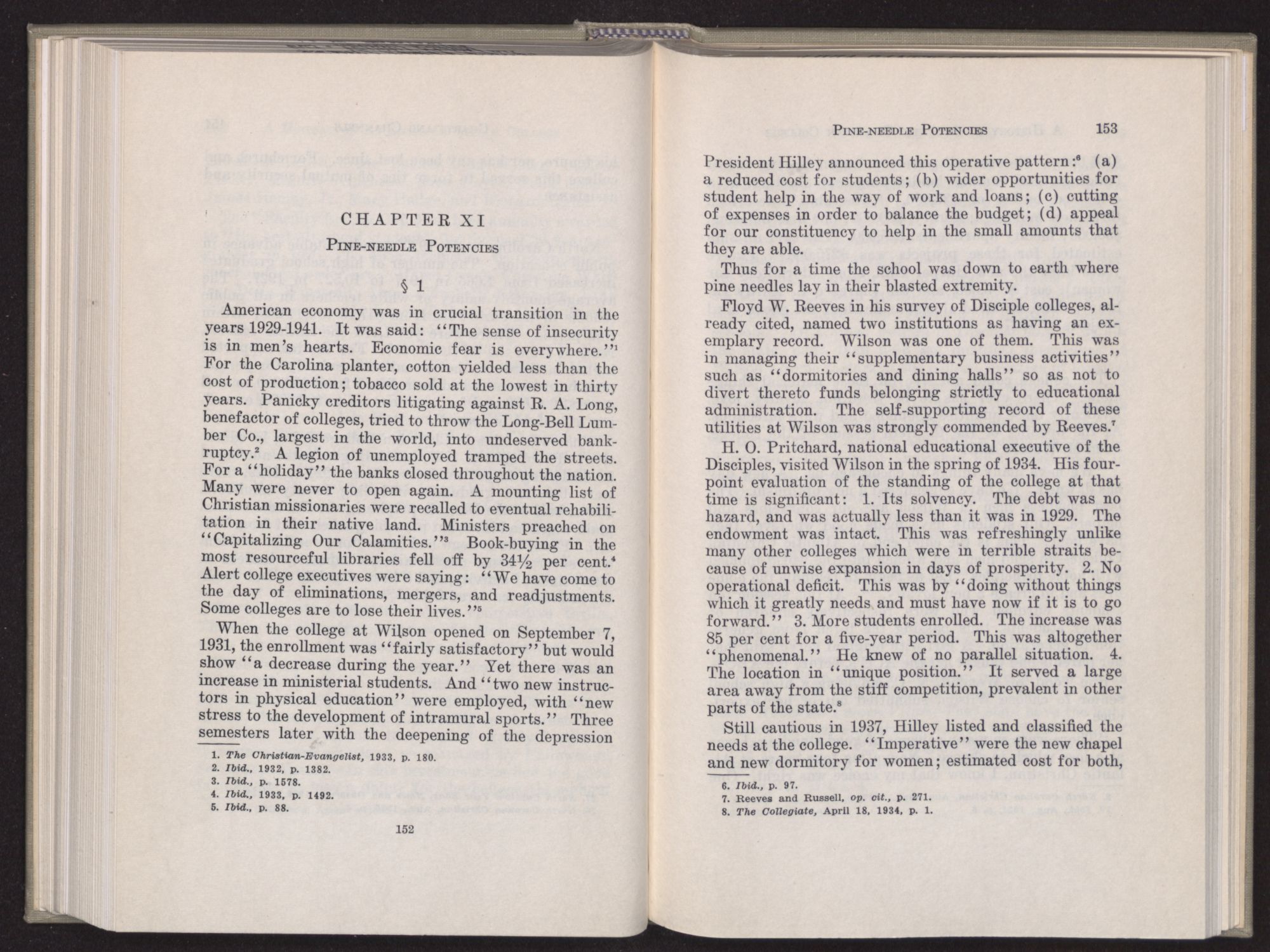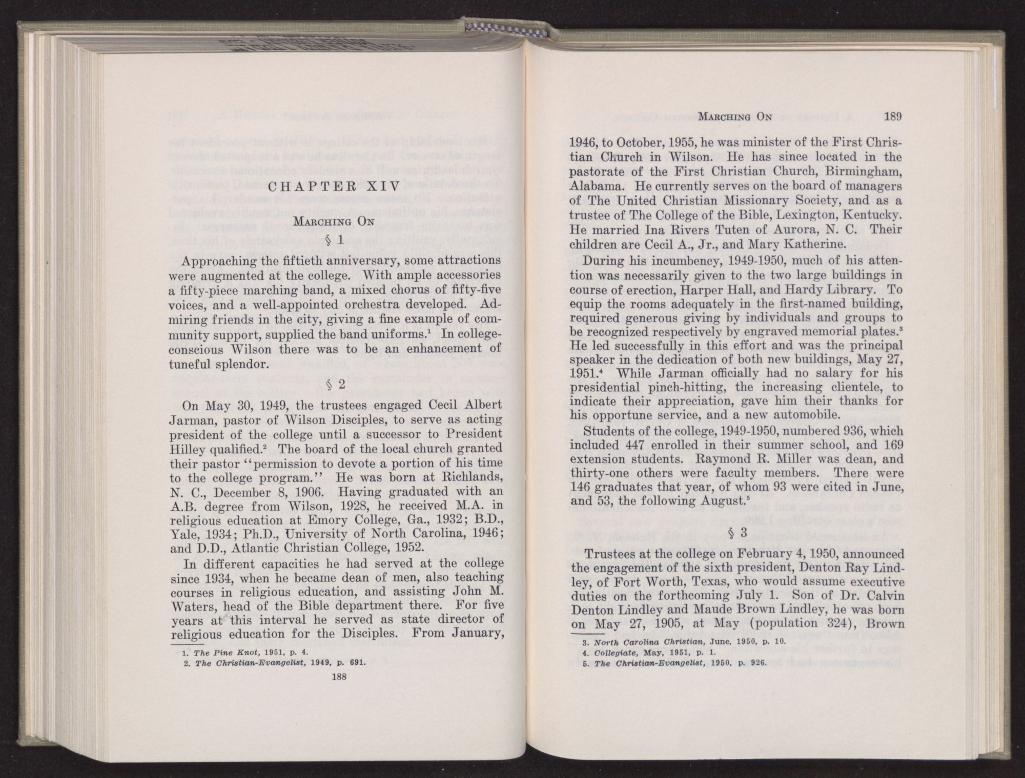 Out of the scores of Disciple institutions of higher learning, living and dead, only fourteen have issued sixteen book-length printed volumes, setting forth their histories. These have appeared over the seventy-year period, 1885-1955. Thus the college at Wilson is the fifteenth institution of the brotherhood to submit such record.