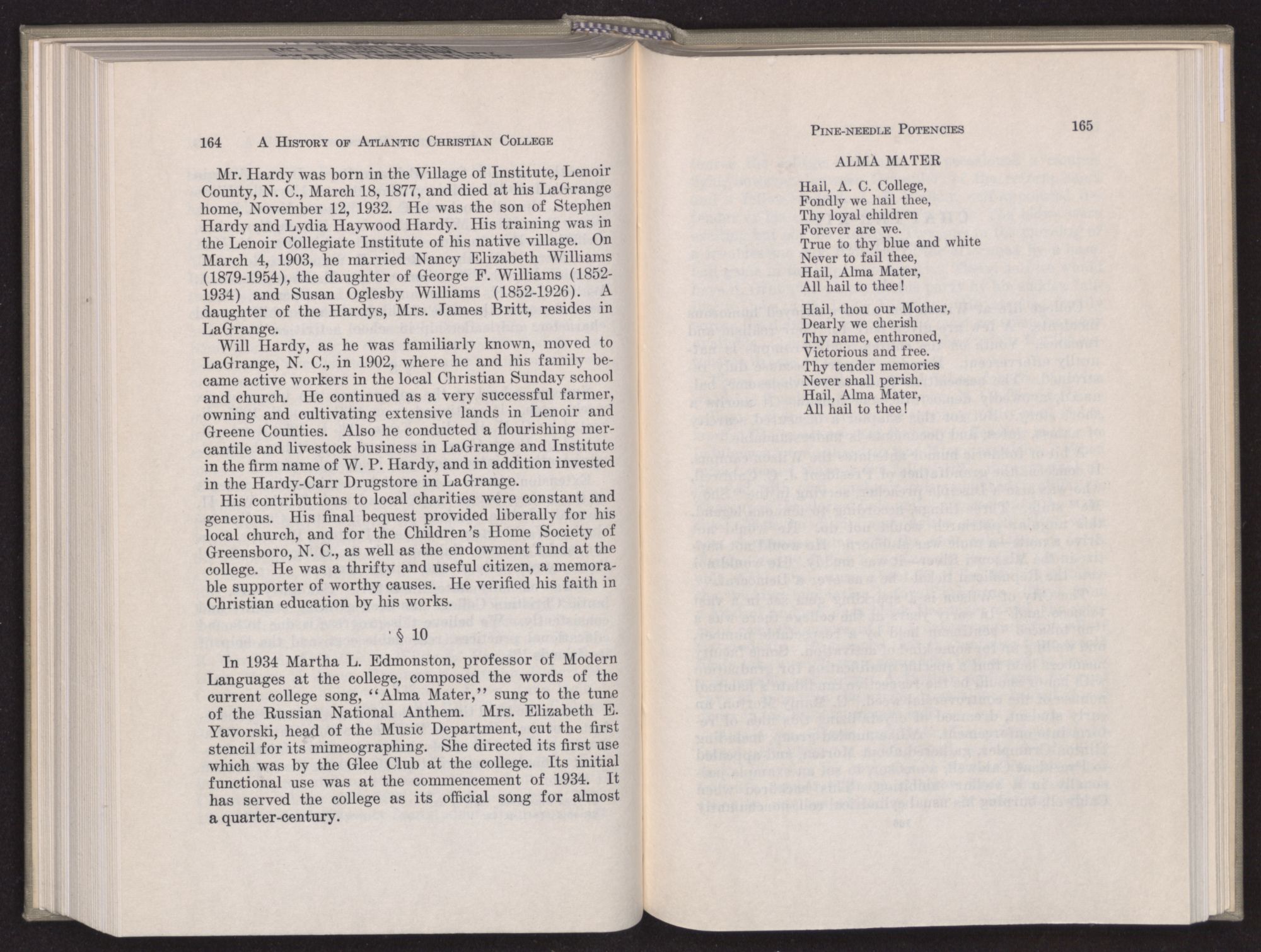 My great aunt Margaret Stringfield taught music … piano and strings … at Atlantic Christian College. I have her music scrapbook. I will be at ECU for a basketball game on Jan 15. I will have the scrapbook with me if you want to see it. It’s from 1902. I will donate it to DAR archives in February. Thanks for this digital history. Mary Sloan
