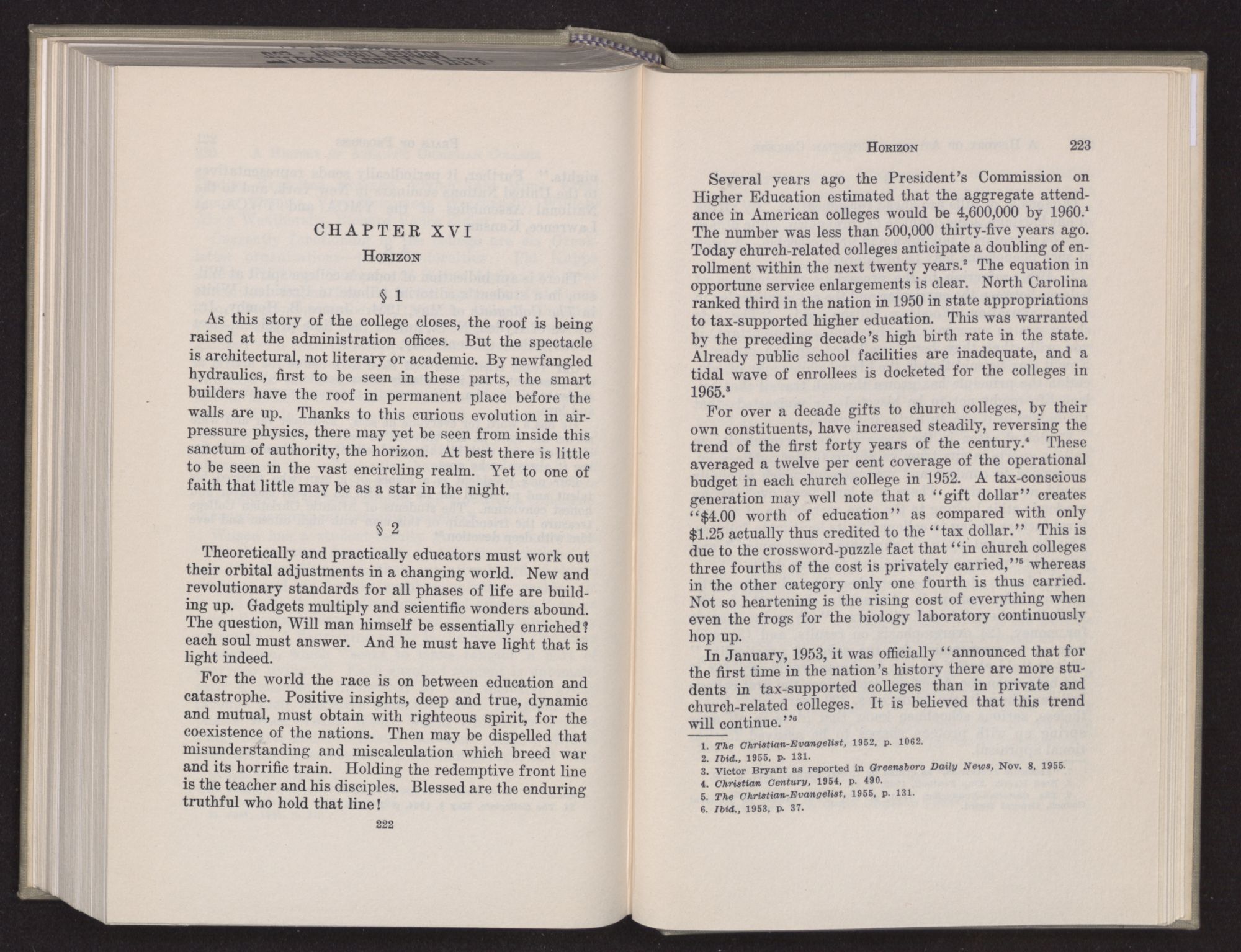 of this which might well have been merely a record of historical facts. It is a thrilling adventure down the trail of yesteryears in Christian Higher Education.