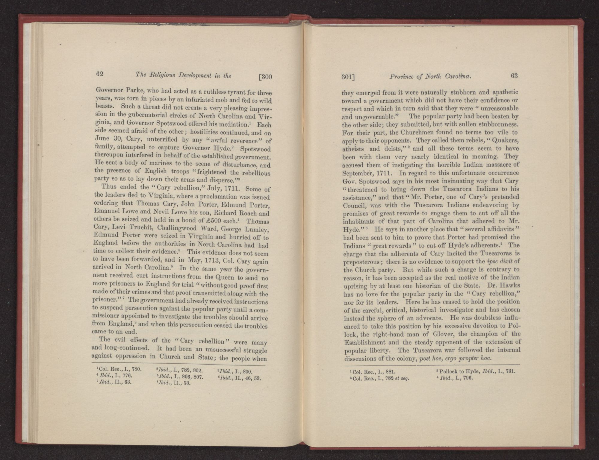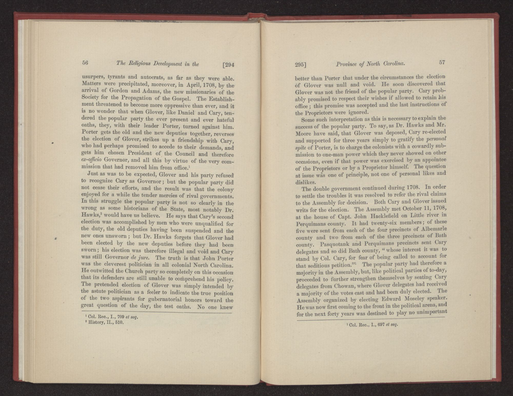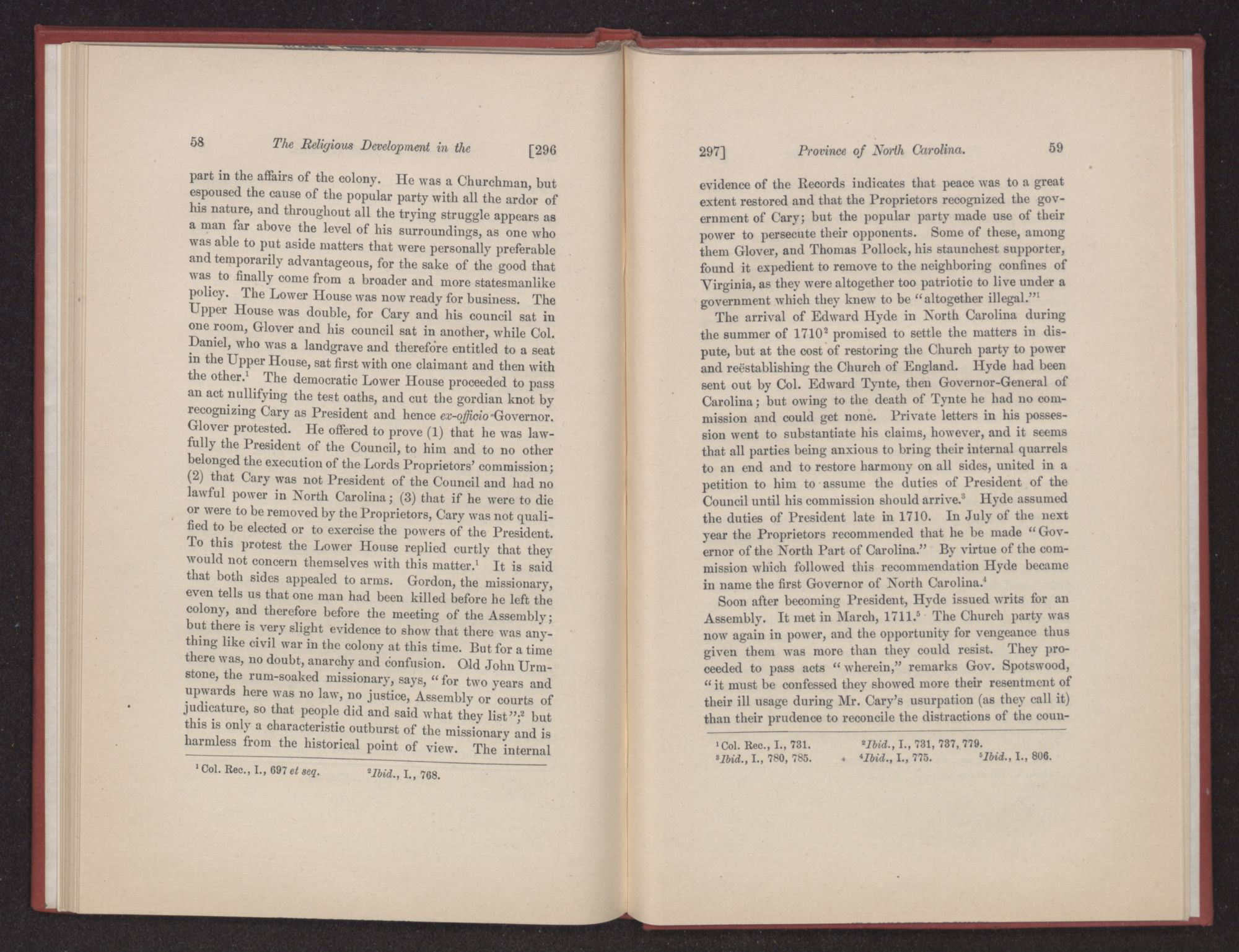 | THE SECOND STRUGGLE FOR THE ESTABLISHMENT; ITS RELATIONS TO THE “CARY REBELLION” AND TO THE TUSCARORA WAR. | |