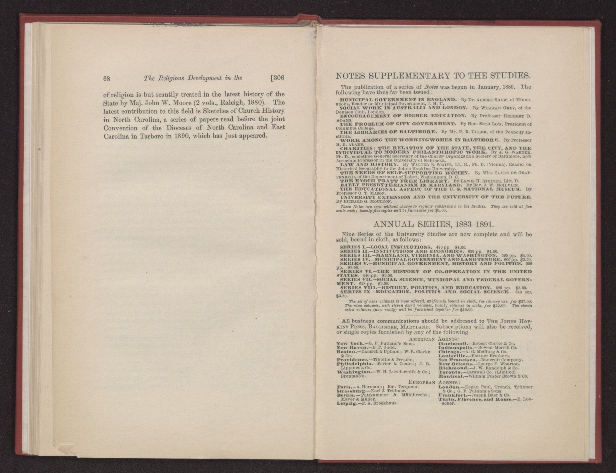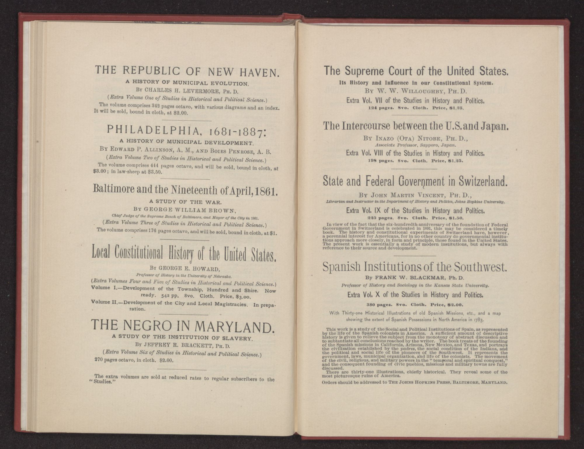 There will soon be issued from the Johns Hopkins Press of Baltimore, a work entitled