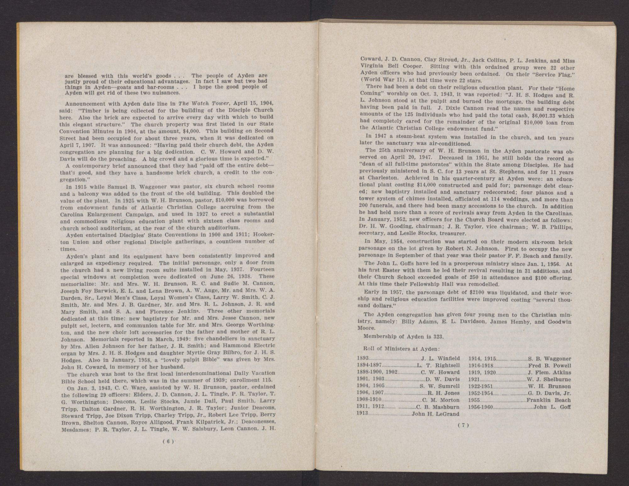 The Ayden congregation has in it all the elements for a strong and representative church. The members are refined and cultured and they