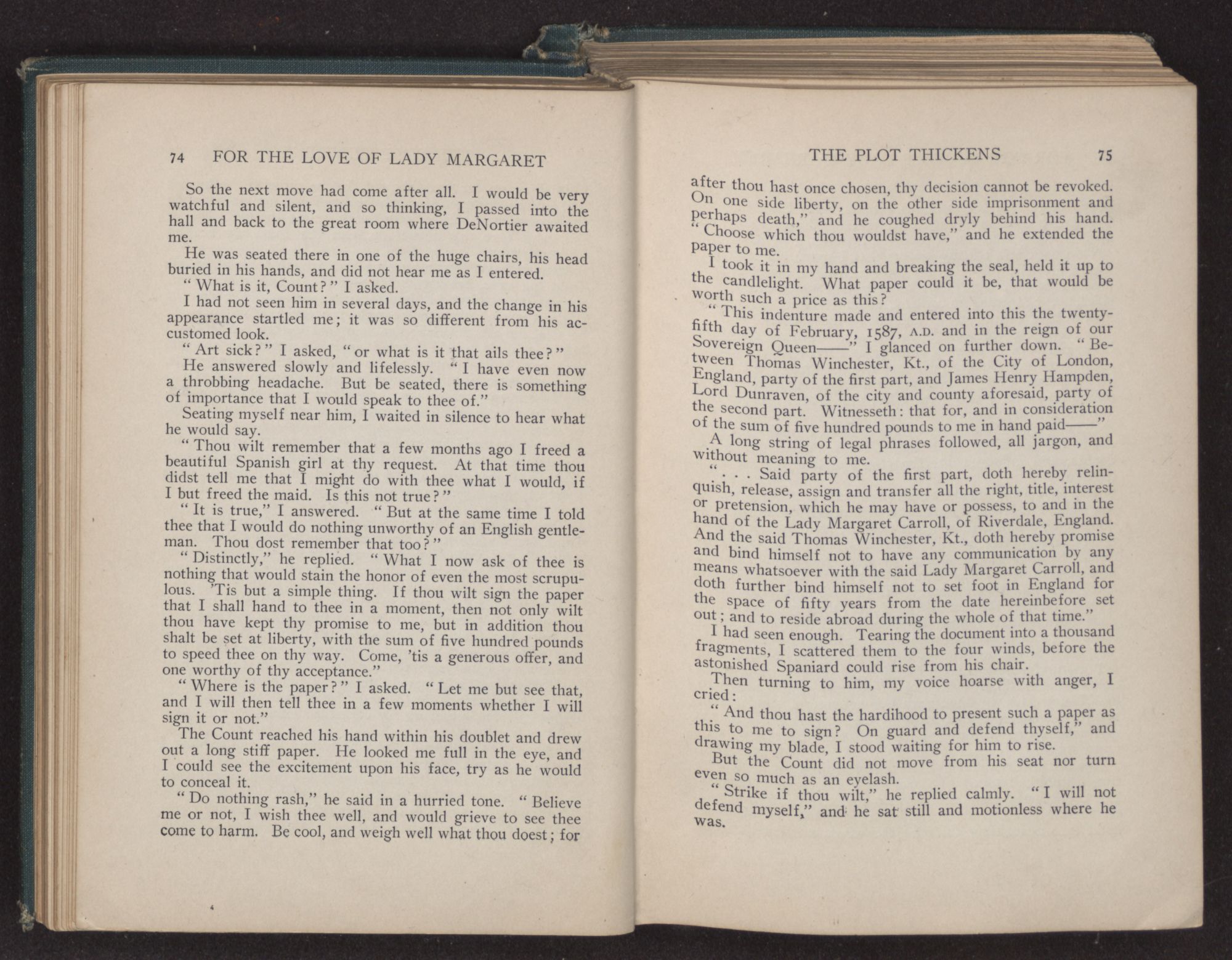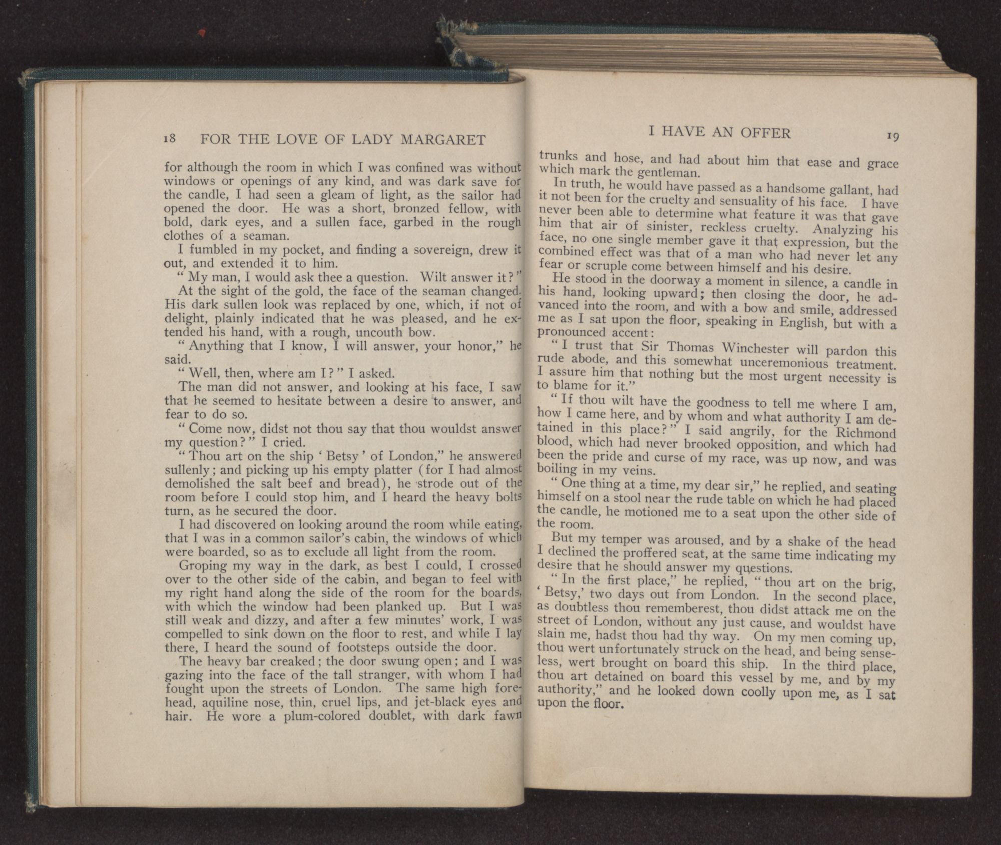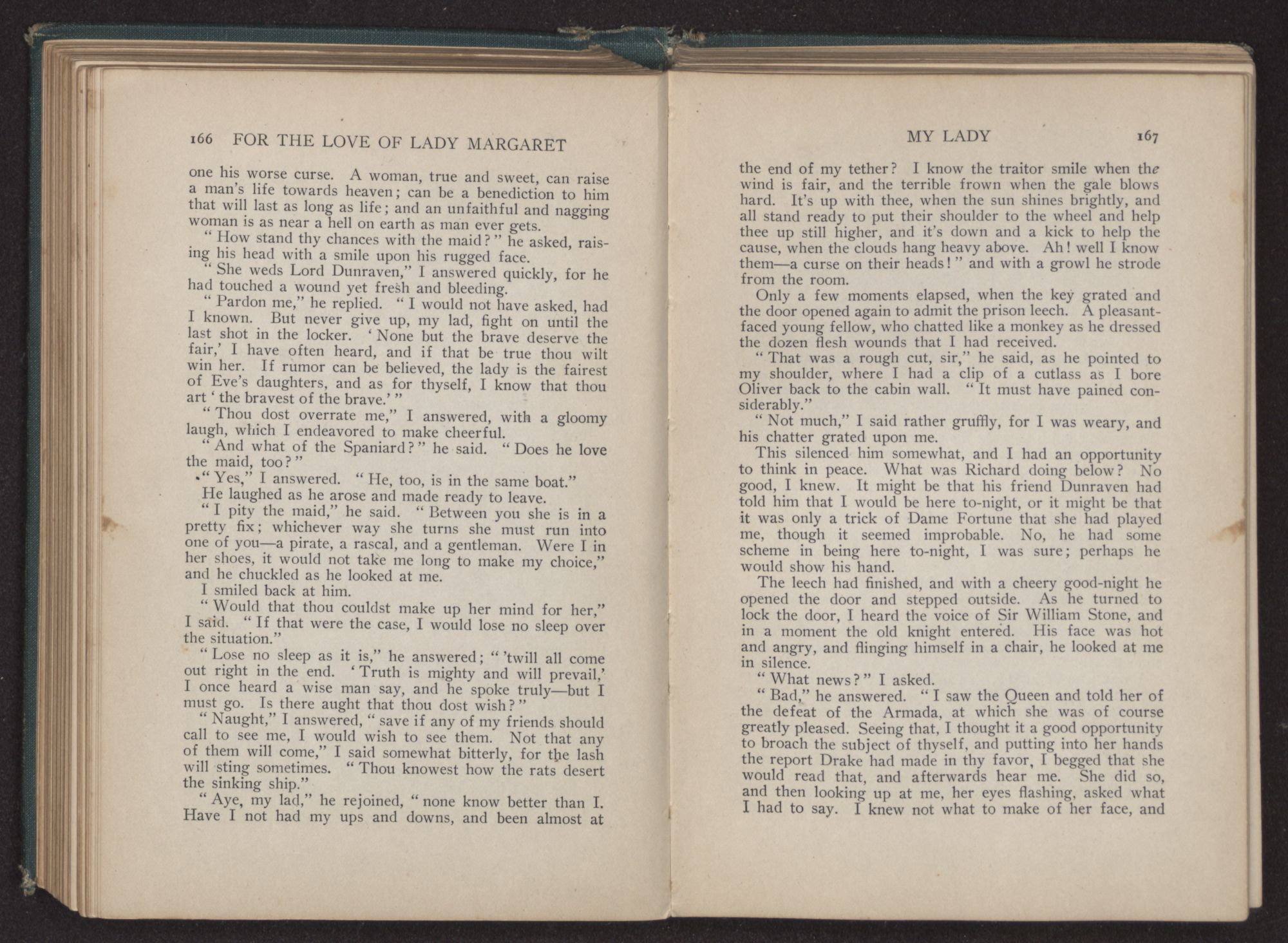 “And what may that be, Governor?” I asked innocently, for I had no mind to give Margaret away.