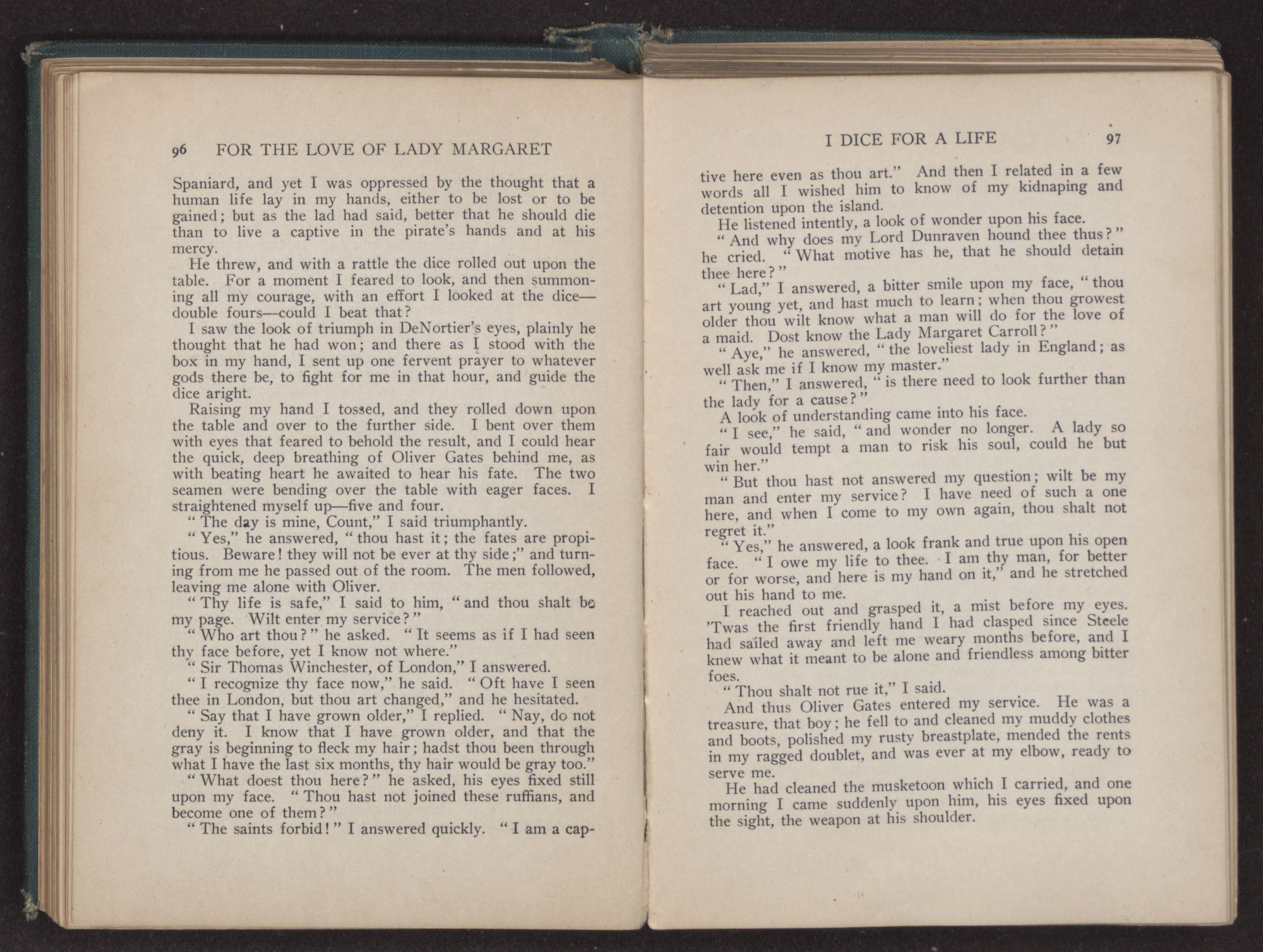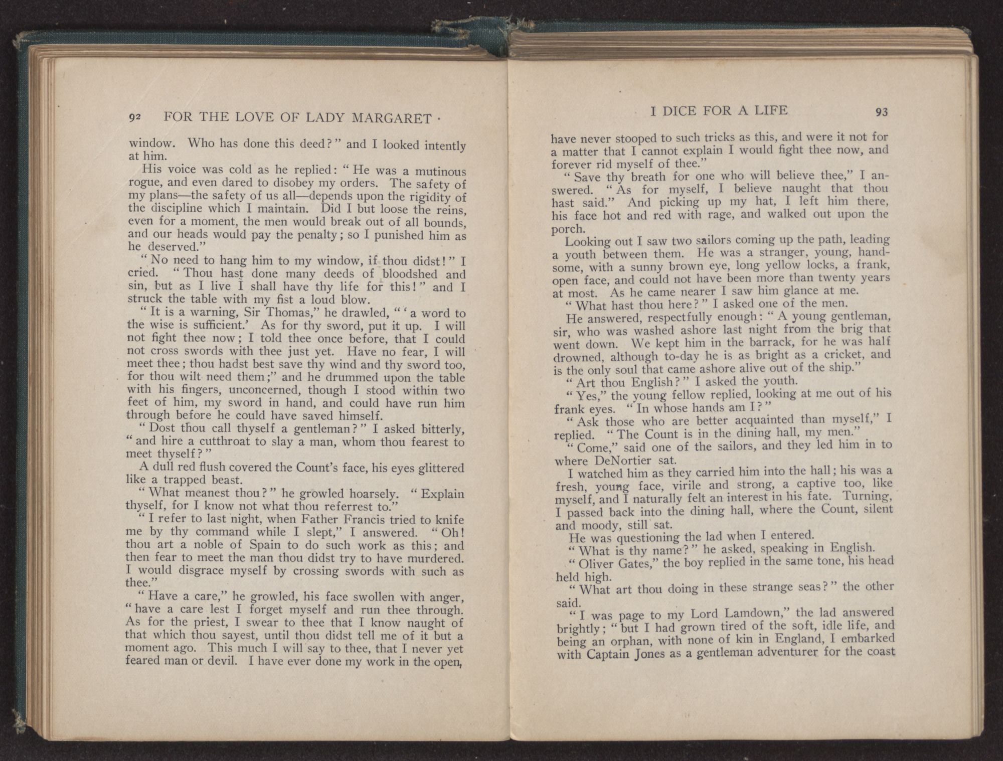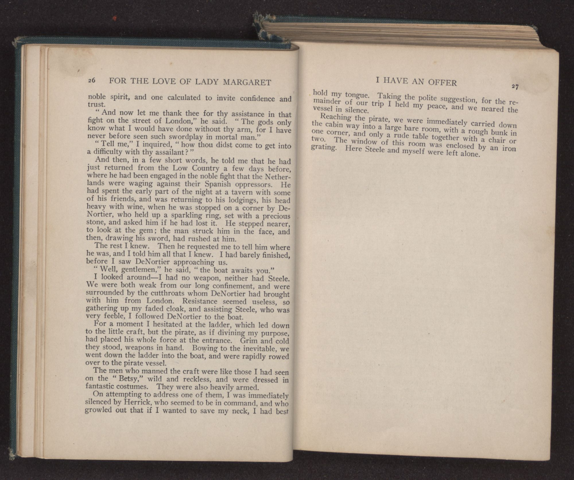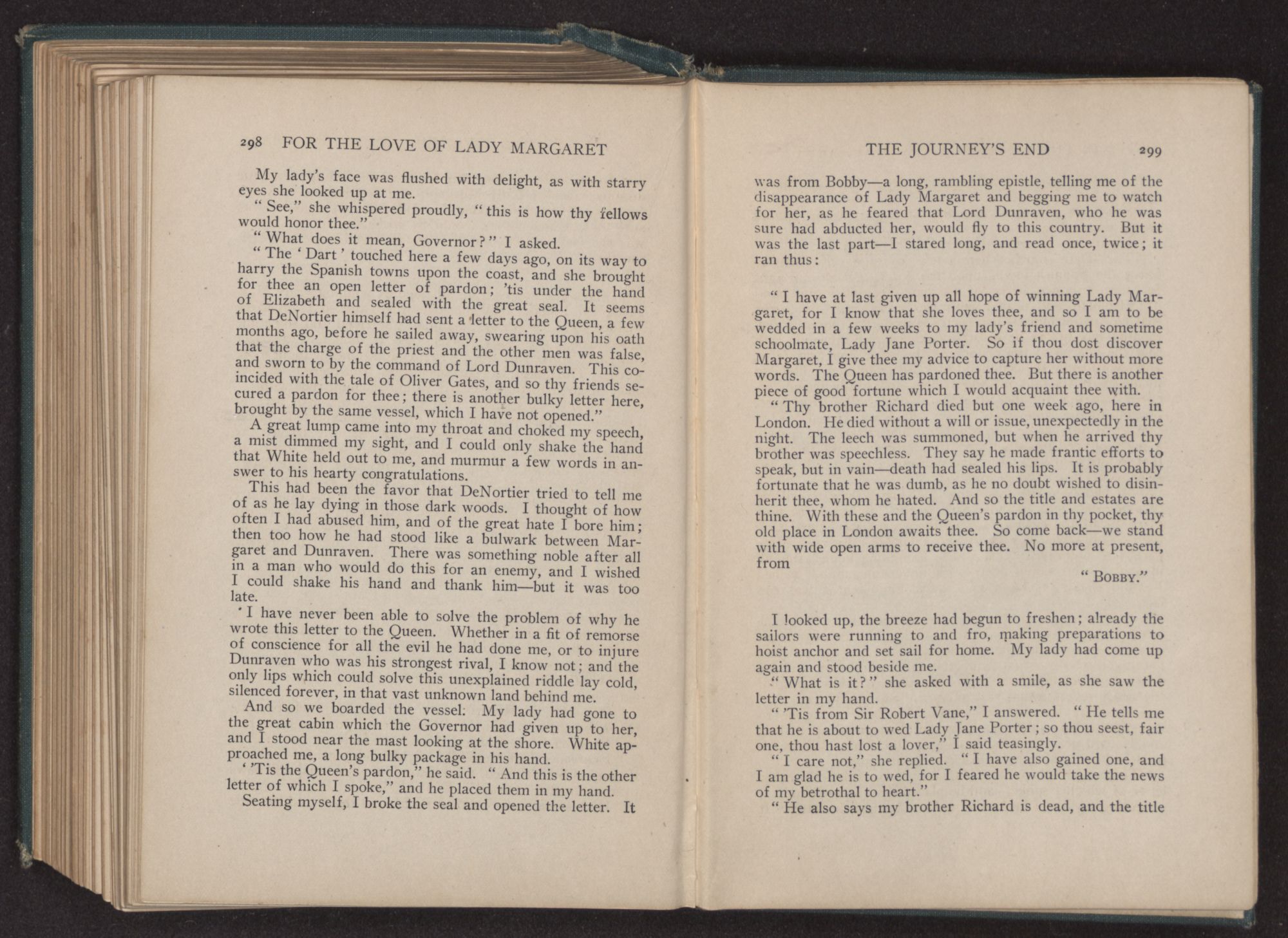 “And what may that be, Governor?” I asked innocently, for I had no mind to give Margaret away.