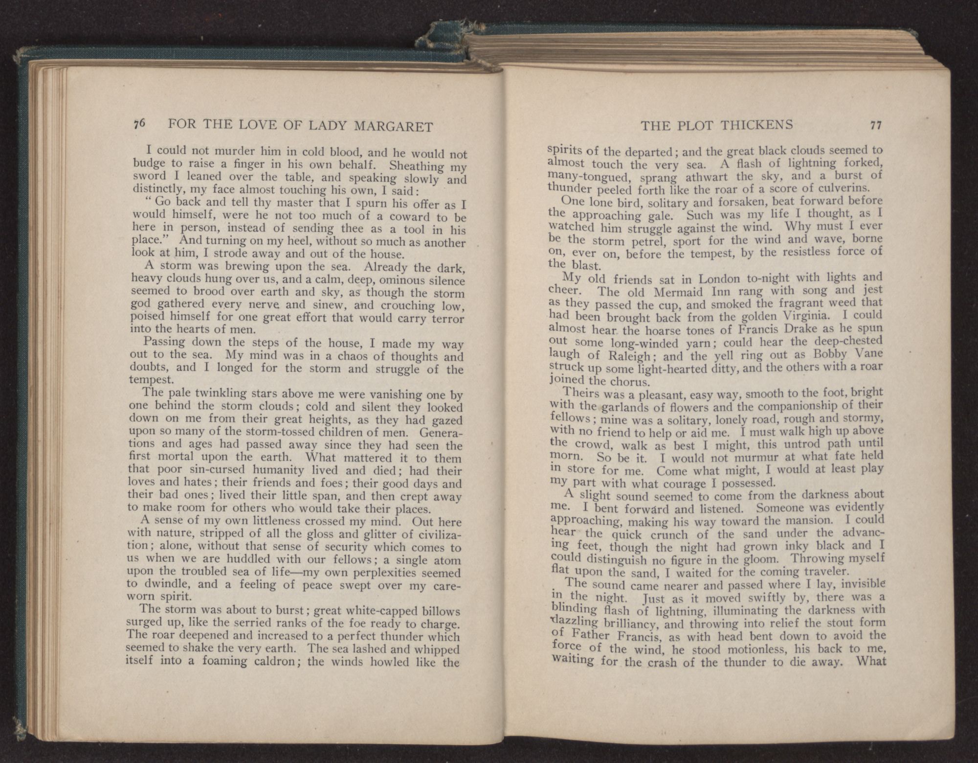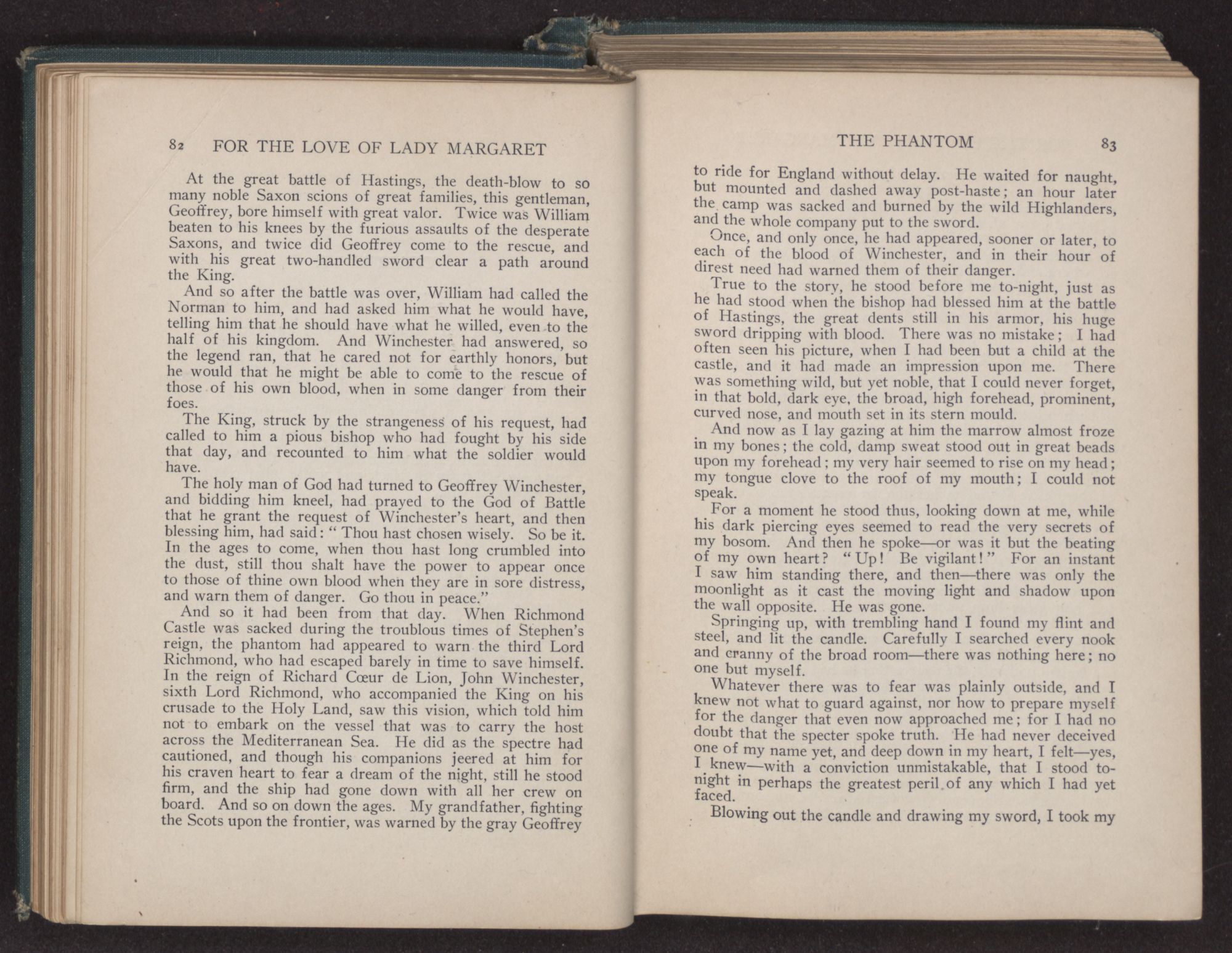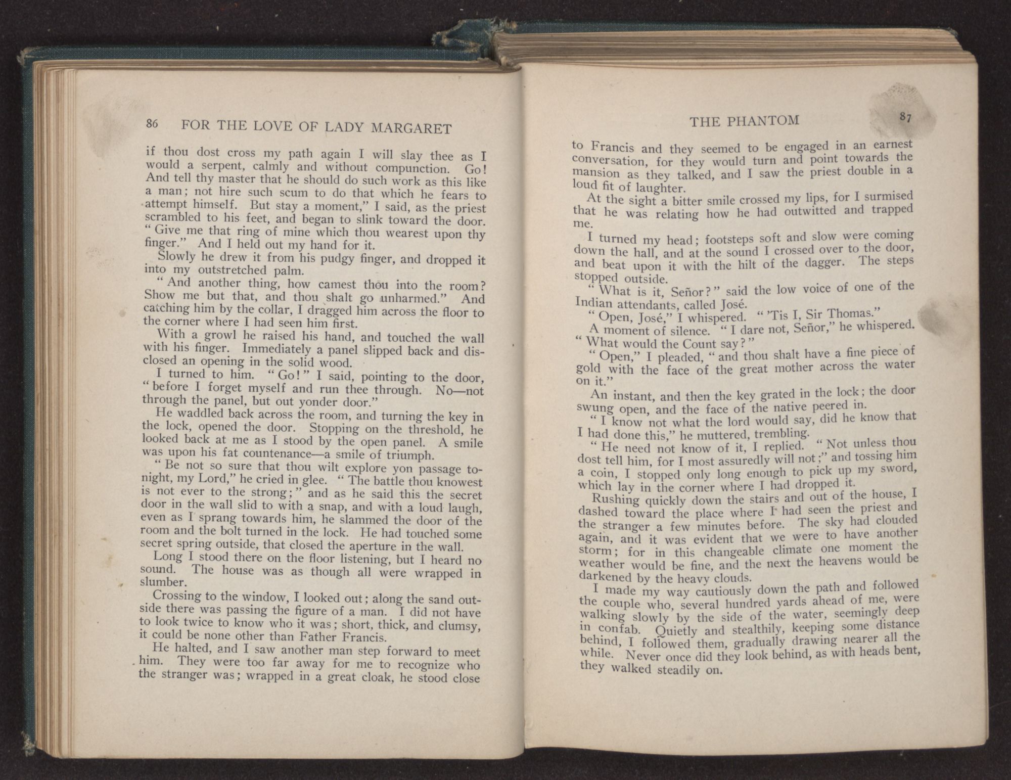 I SEEMED to be back at Richmond Castle. I could see the great green lawn and the dove-cot with its pigeons. Old Dennis, the gardener, was speaking to me, “Mister Thomas, it's glad I am to see thee back.” My hound came running forward to lick my hand, and I could feel the fresh breeze of the country, so different from the hot, feverish air of London, upon my face. A great peace fell upon me—I was at home.