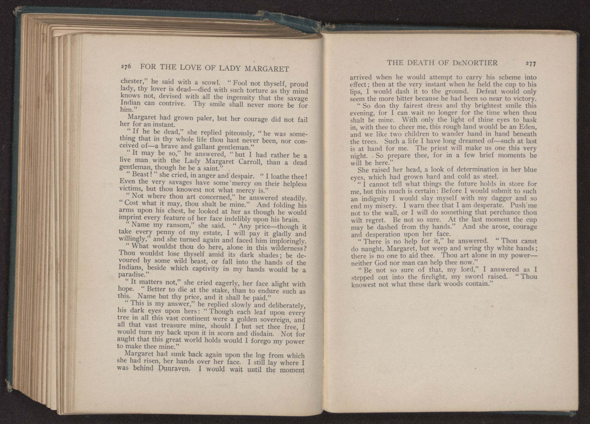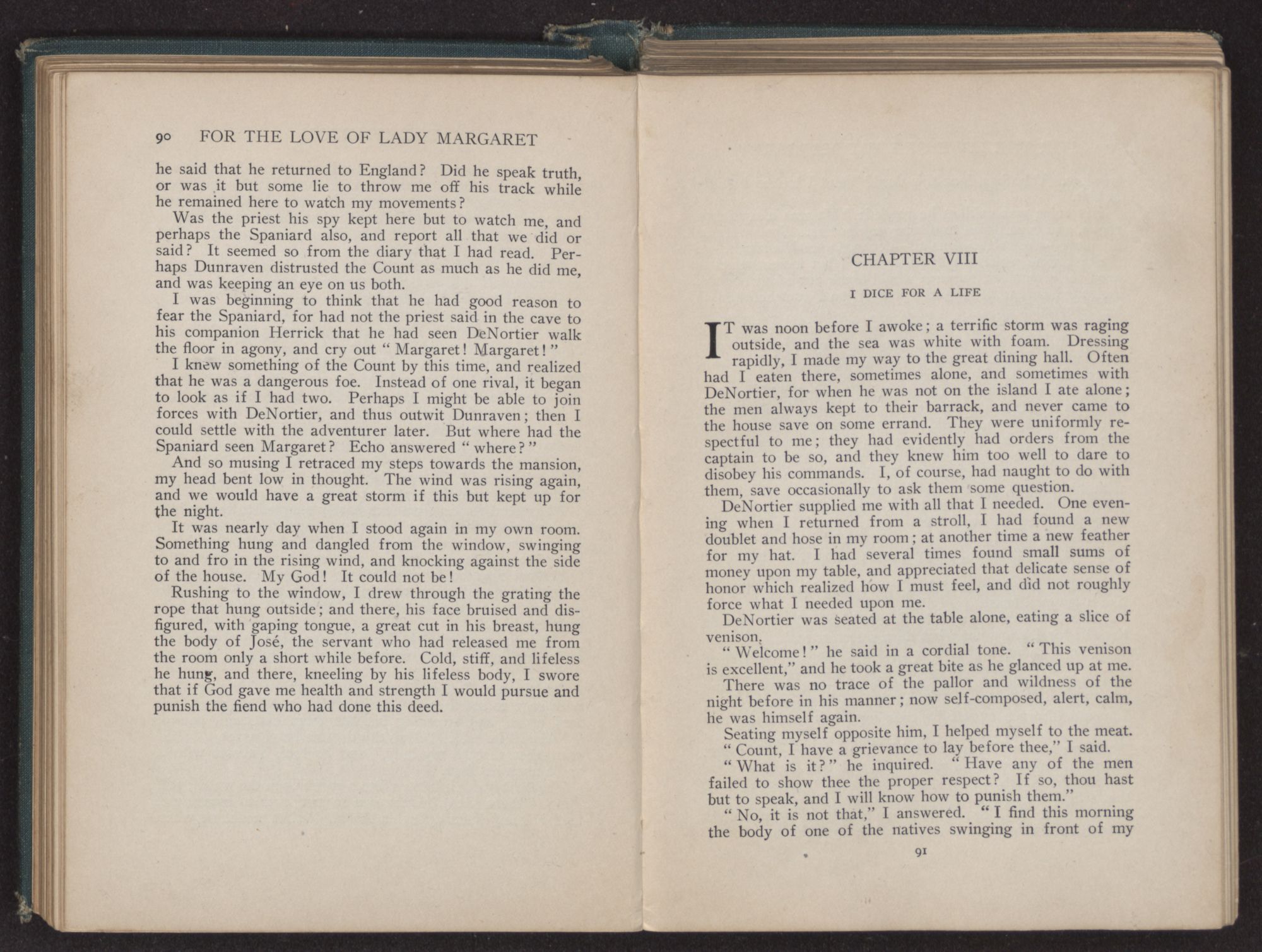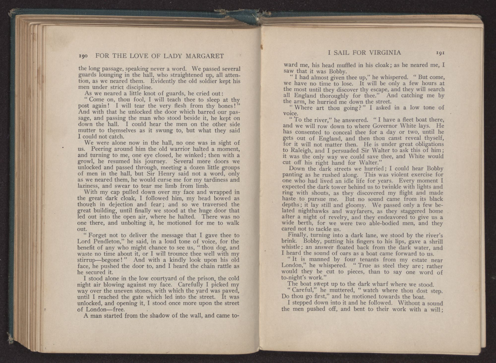 “I have at last given up all hope of winning Lady Margaret, for I know that she loves thee, and so I am to be wedded in a few weeks to my lady's friend and sometime schoolmate, Lady Jane Porter. So if thou dost discover Margaret, I give thee my advice to capture her without more words. The Queen has pardoned thee. But there is another piece of good fortune which I would acquaint thee with.