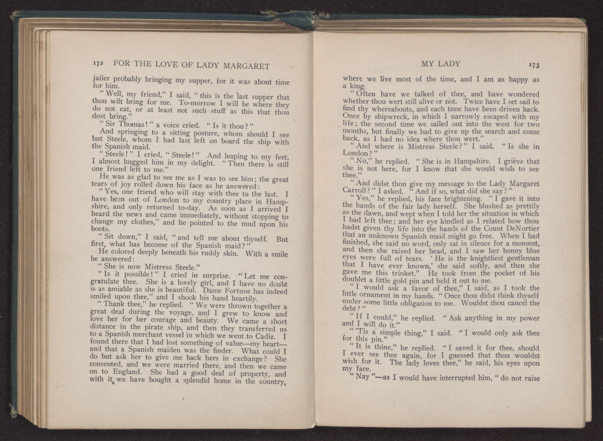 “Upon thy approaching wedding,” he answered, a broad smile upon his face. “Of a truth, Sir Thomas, thou art the most fortunate of men, and thou shouldst thank thy lucky star that thou hast won so lovely a bride.”