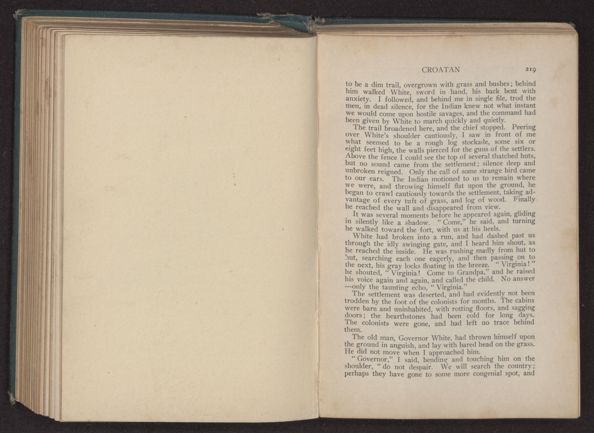 “Not more than I did thee,” I replied. “But hast thou heard aught of thy little grandchild and the lost colony since I left thee?”