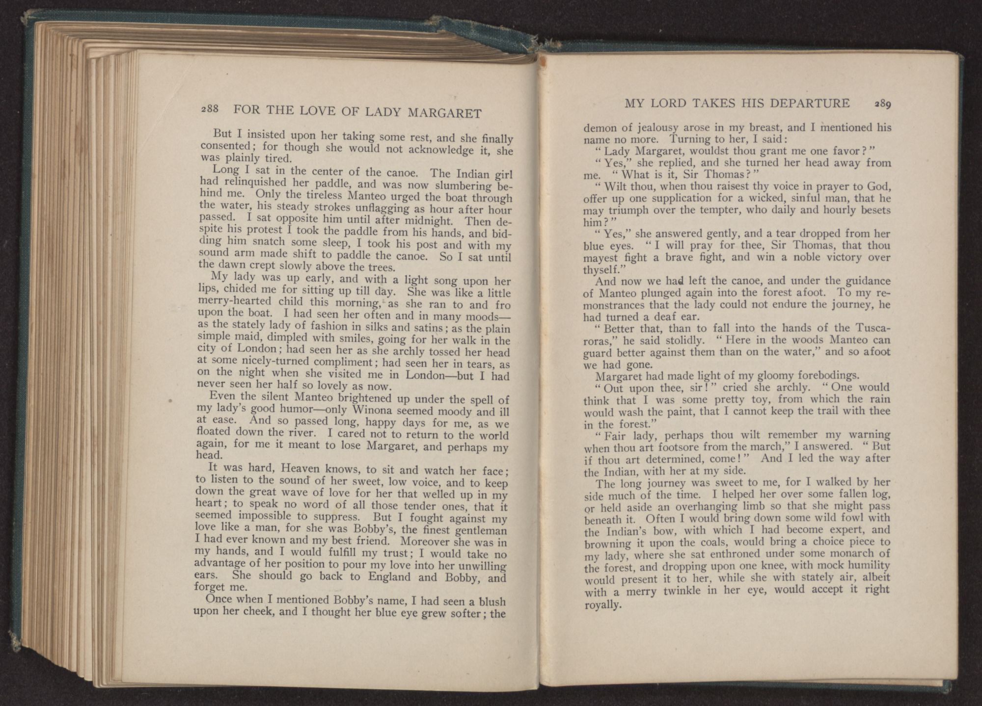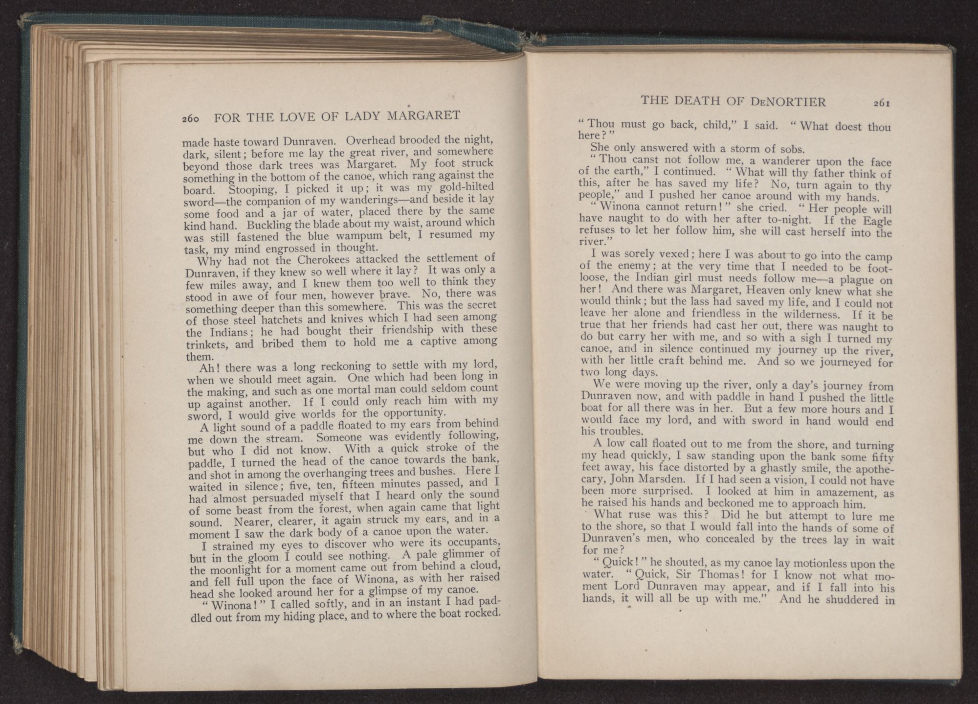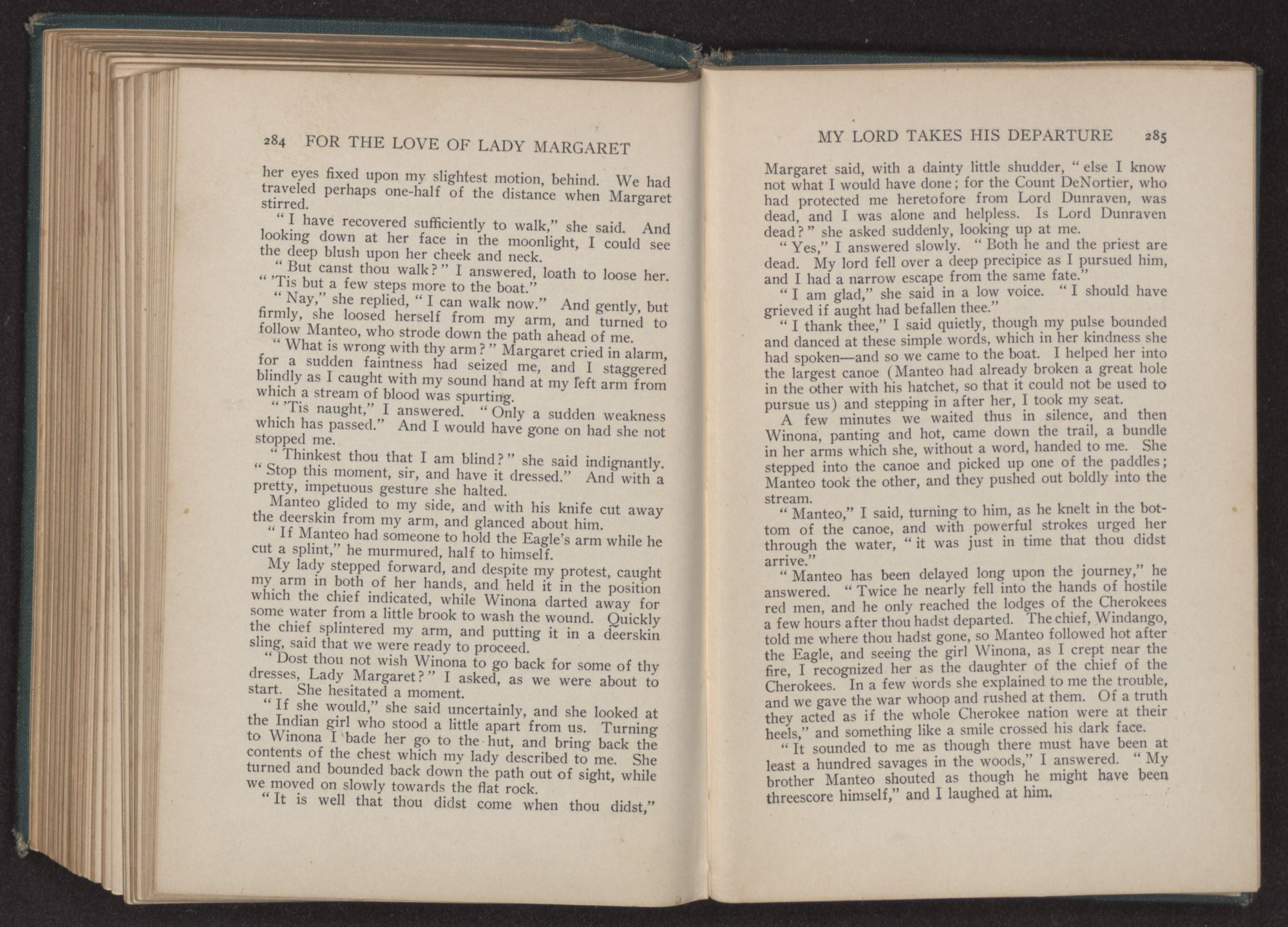 “But, Manteo,” cried Margaret, “’twill cloud our happiness to leave thee behind—thou who hast done so much for us,” and she cast a coaxing look toward him.